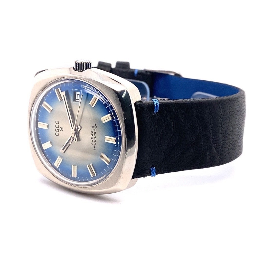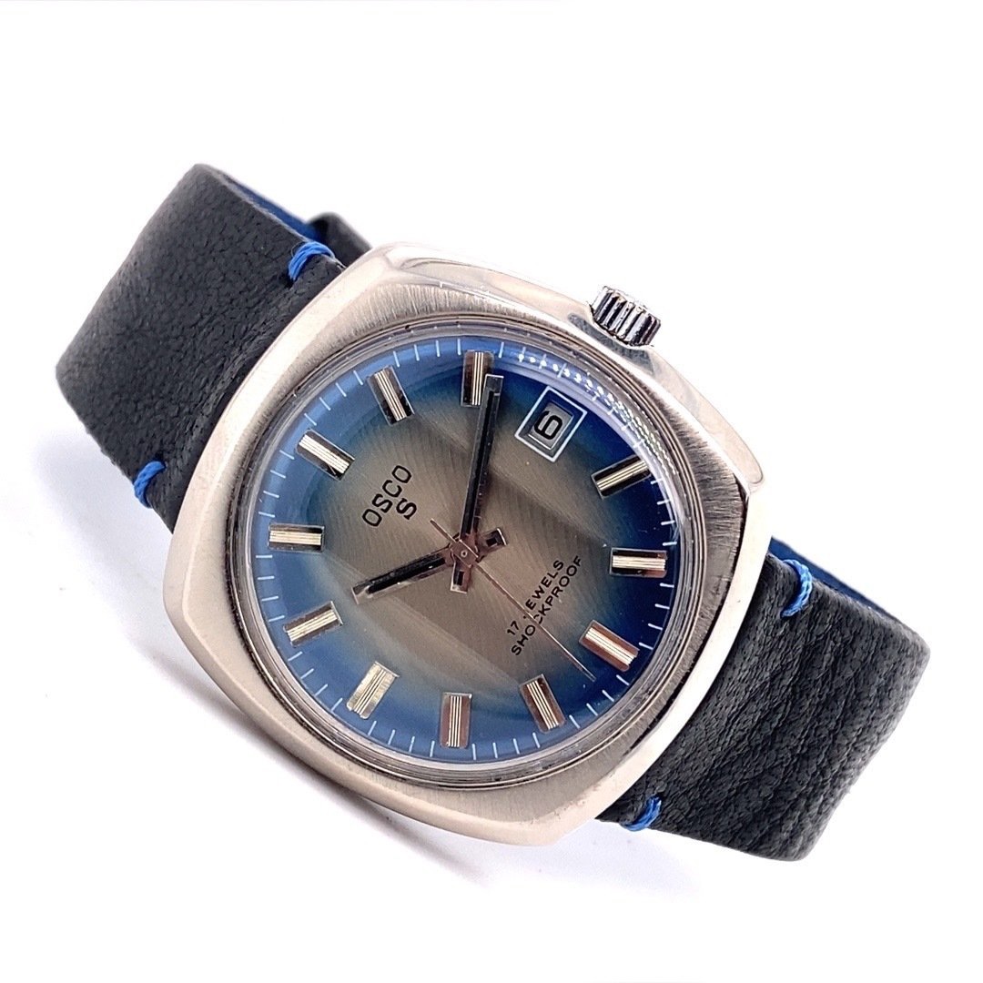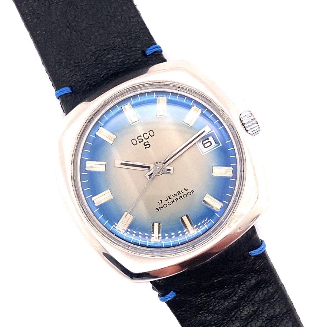Uit mijn vintage collectie mogen ook een aantal horloges vertrekken. Zoals deze met een waanzinnige blauwe wijzerplaat (blauw schaduw gestreept) en die charmante vierkante kast. Gekocht toen ik mooie vierkante vintage horloges aan het verzamelen was. Aangeschaft op een veiling.