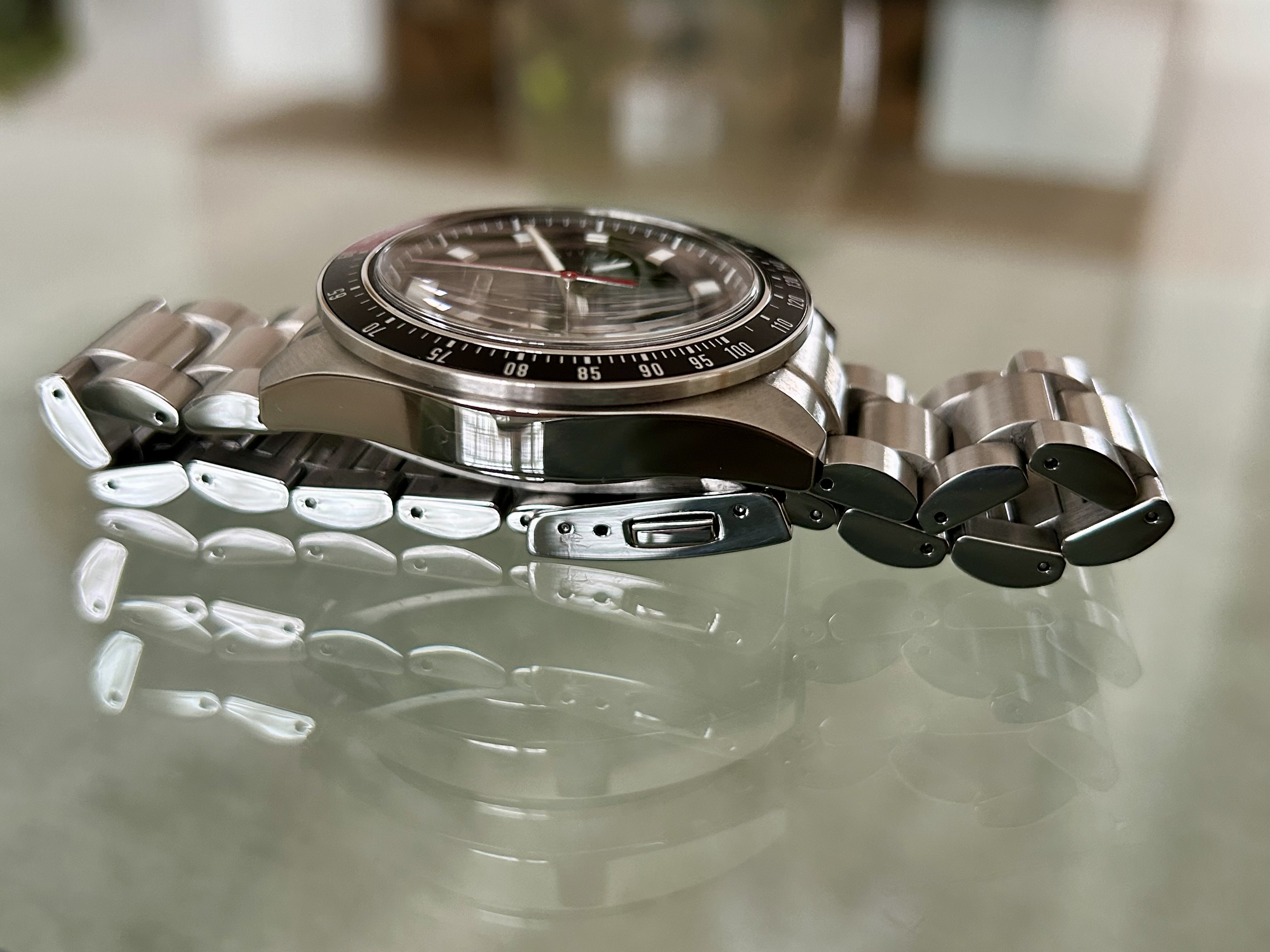 Inruilert, mag door want ik heb de Speedtimer al twee keer gehad. Heel fijn horloge, mooie maat, grab-and-go techniek, heel goed afleesbaar.