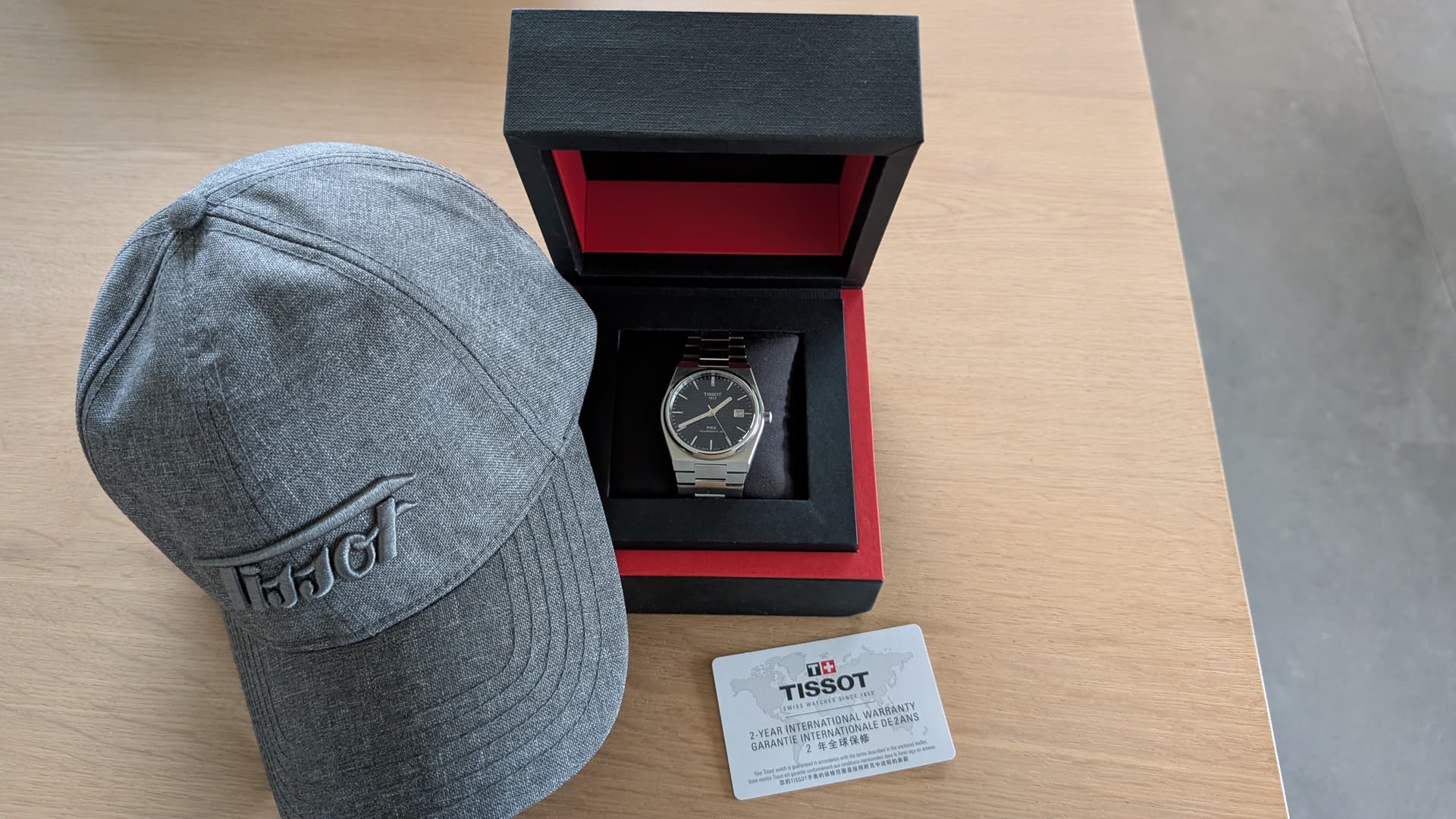 Originele doos en/of eventuele accessoires: Volledige set, doos en extra schakels – Inclusief ongedragen Tissot pet.