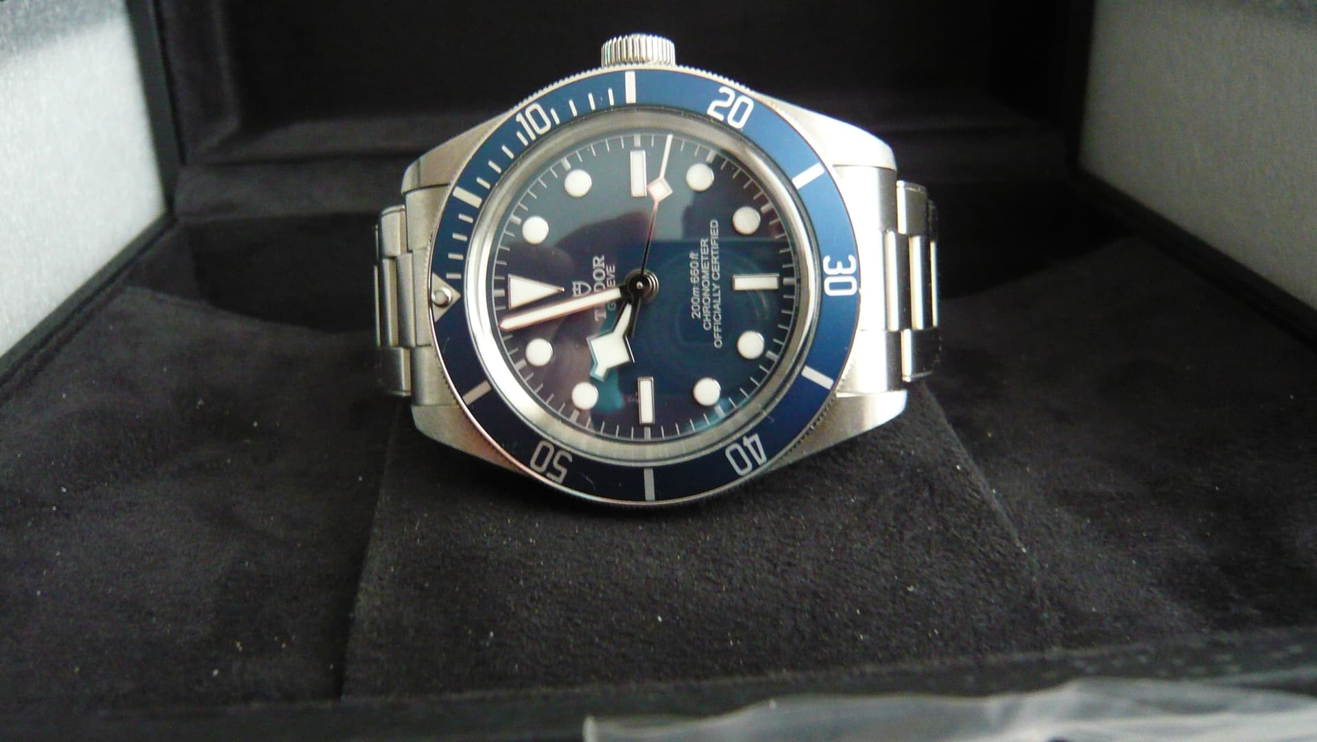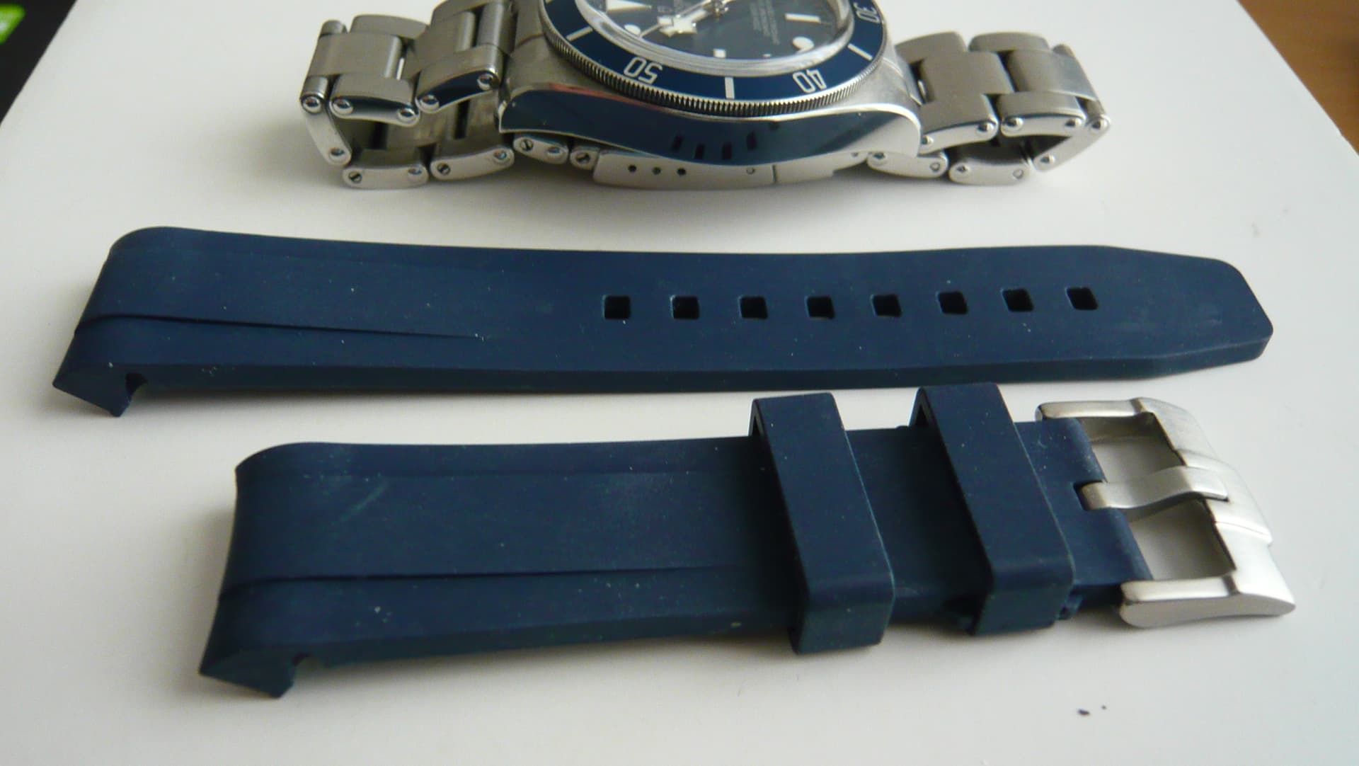 Horloge is in goede staat. Ik rouleerde heel veel in mijn collectie dus hij is niet dagelijks 24/7 gedragen. De foto’s spreken voor zich. Ook zit er een halve schakel die gekocht is bij Uncle straps bij zodat je de perfecte fit kunt maken. Ook zit er een hoogwaardige FKM rubberen band bij die mooi aansluit op de kast.