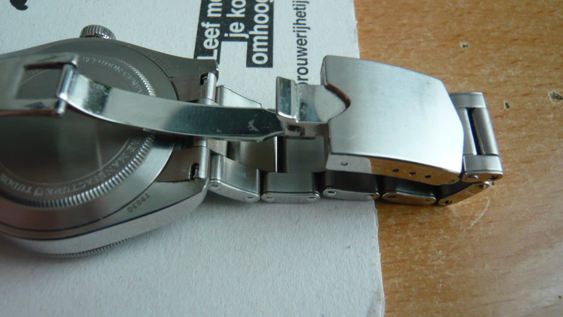 Conditie (krassen, werking etc): Goede staat. Horloge is gedragen maar geen butsen of krassen op glas zie foto’s. Krasjes achter op de lugs door bandenwissels maar dat zie je niet wanneer je hem draagt.