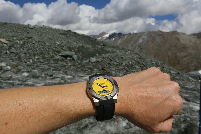 Voor de wat sportievere activiteiten met iets meer risico op schade heb ik een Tissot T-Touch trekking. Ding heb ik gebruikt gekocht en zat al vol krassen, dus een krasje meer of minder maakt niet echt uit. Verder een lekkere toolwatch met kompas en hoogtemeter die soms handig zijn.