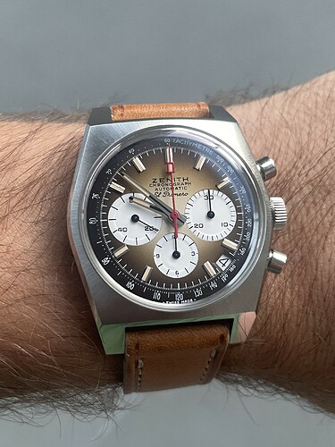 Mijn favoriet is de 806 Breitling van @Rolopalooza, en deze zenith A386 in de nieuwe ‘oude’ kast met saffier. Brilliant. Alsof je een vintage om hebt.