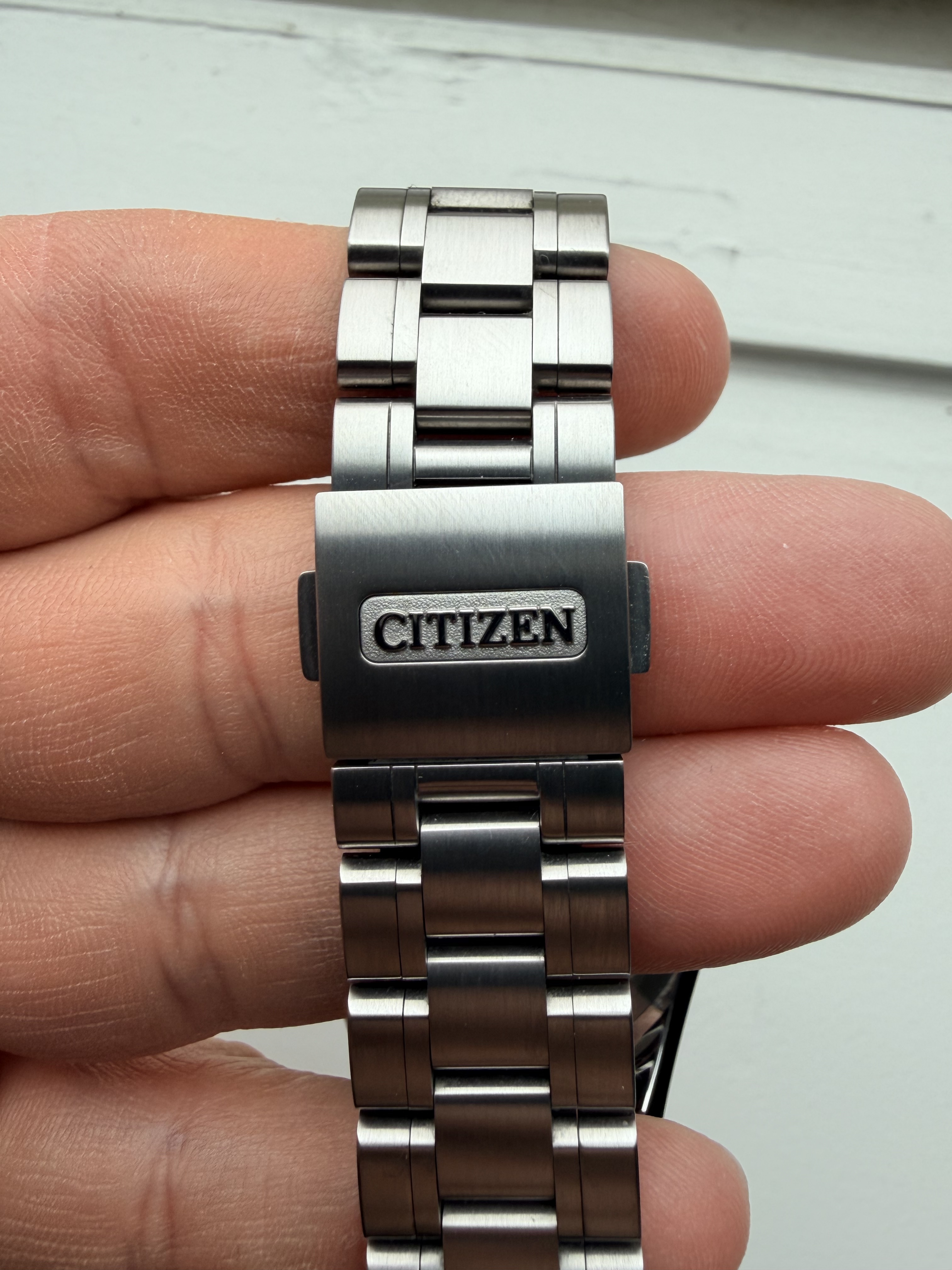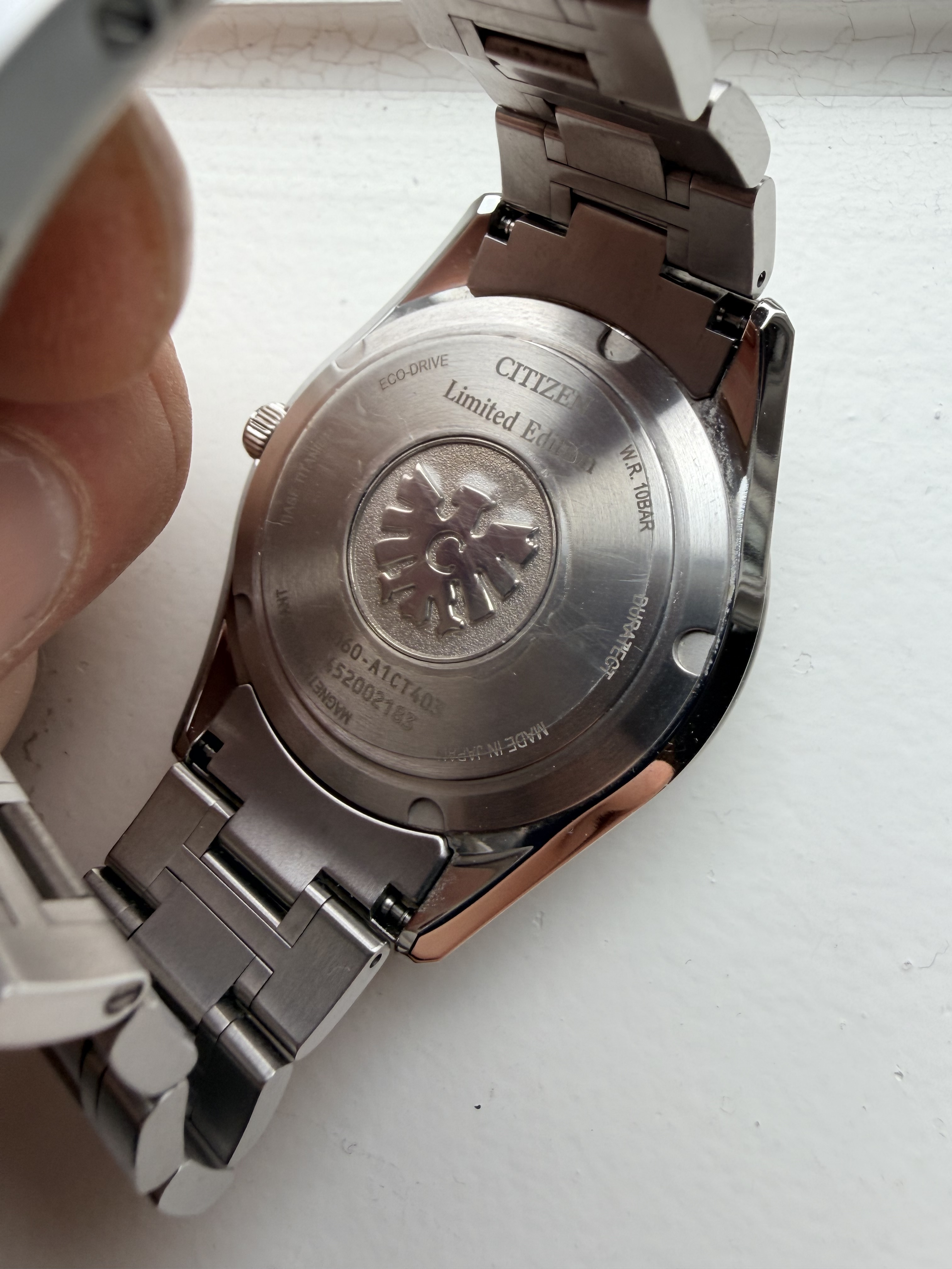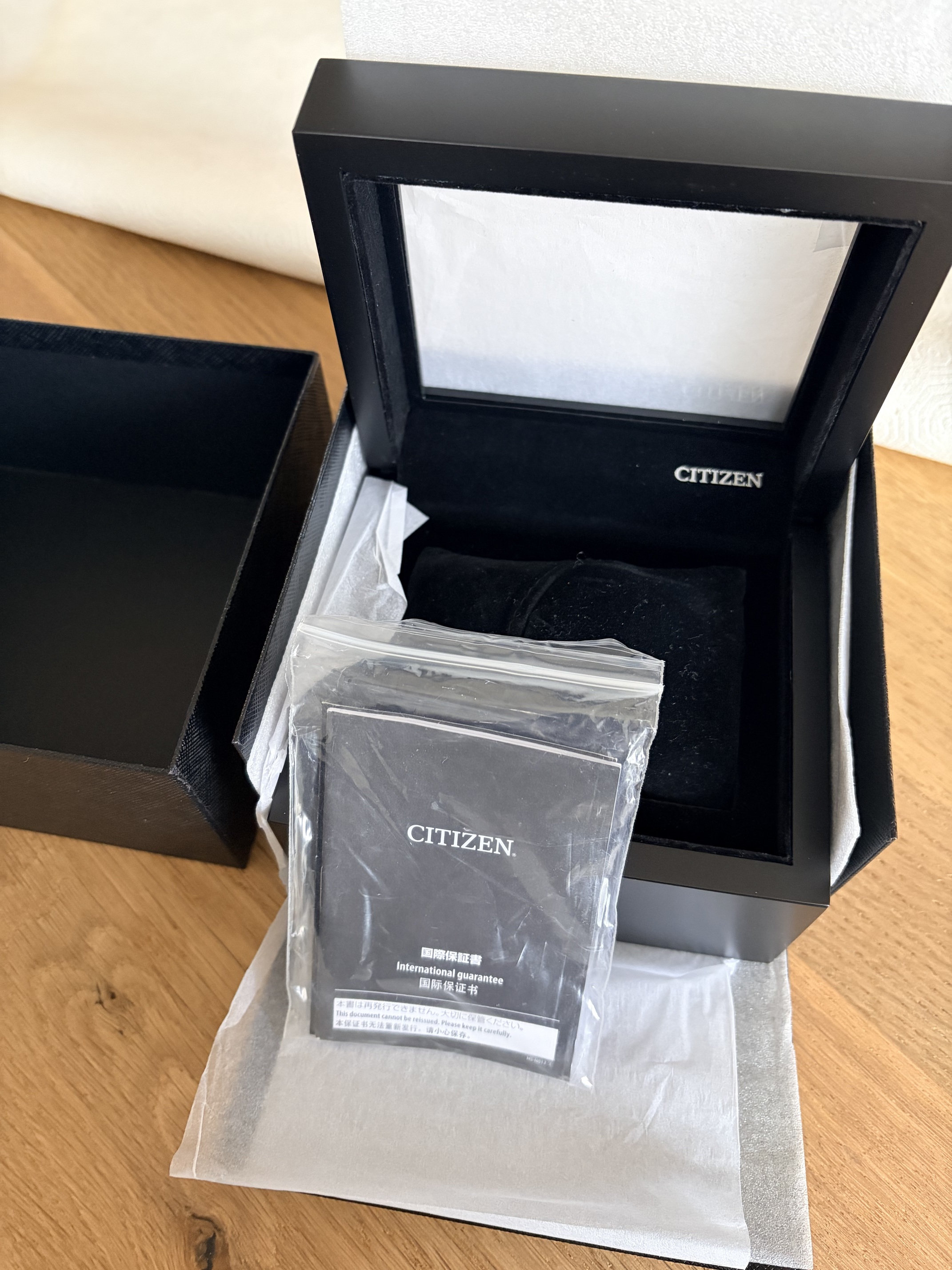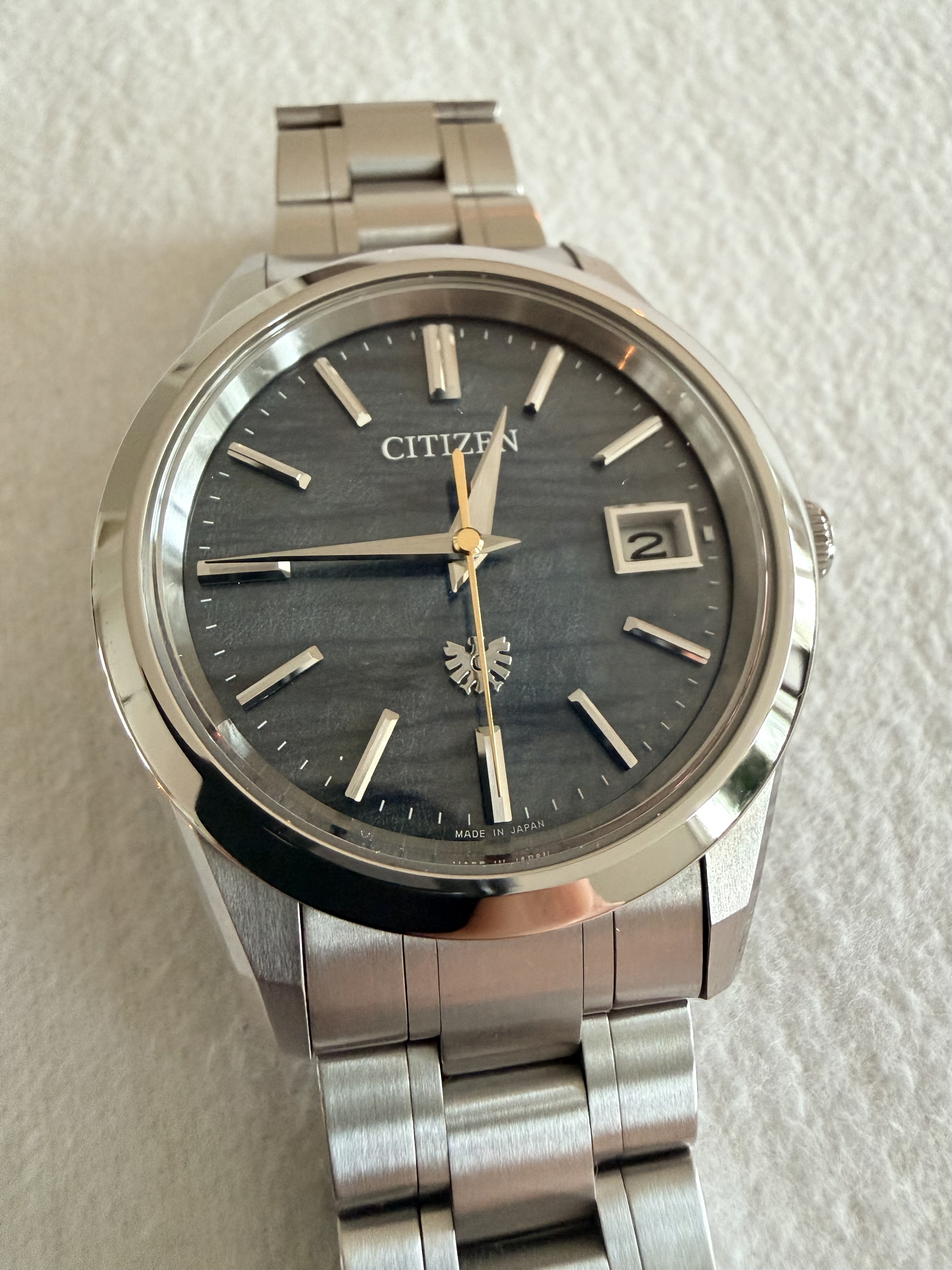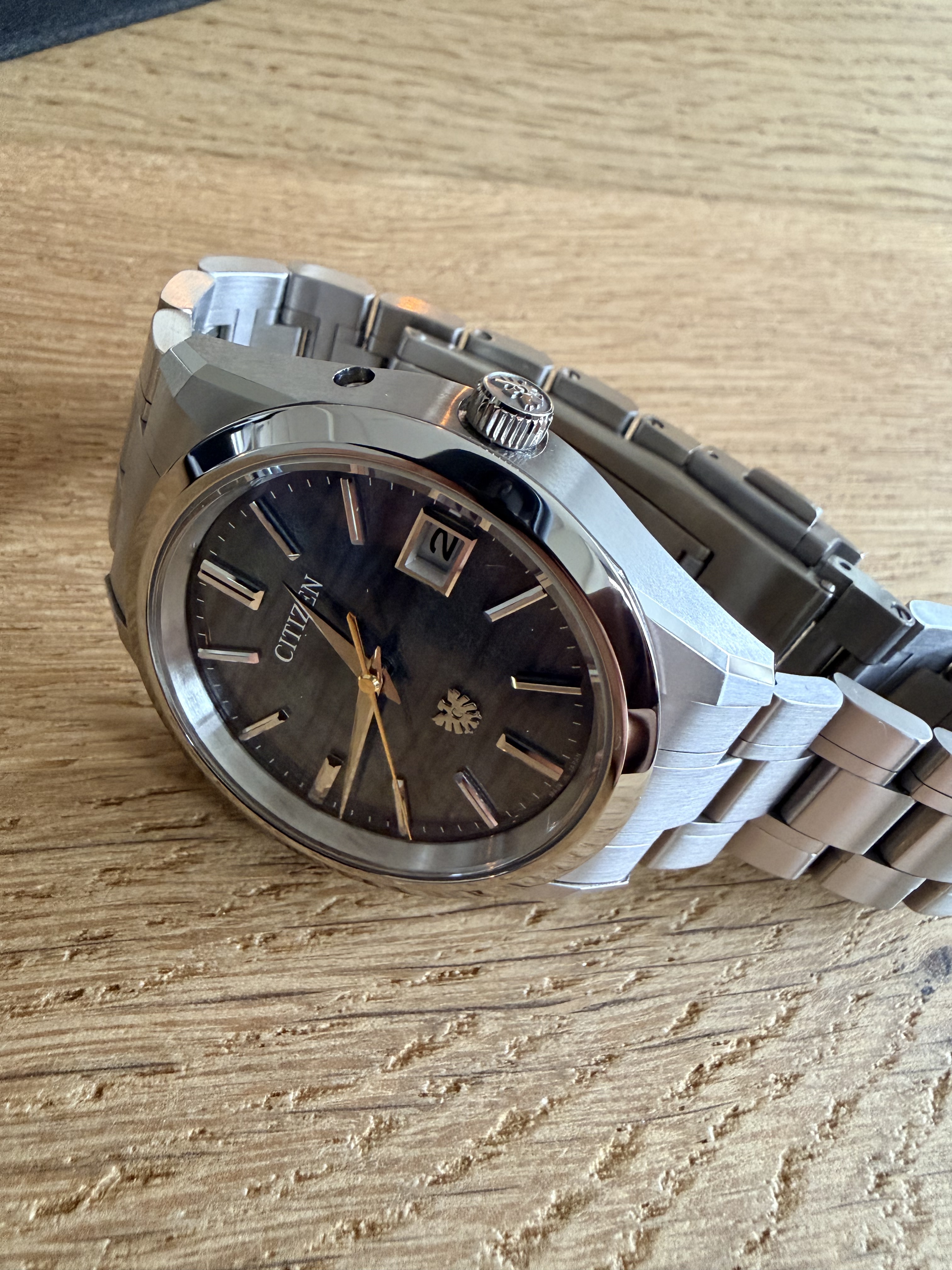 Tsja, met pijn in het hart - maar budgetten zijn begrensd en bij een +1 hoort ook een -1. En in dit geval is het deze fantastische THE Citizen (zijn er maar 600 van), indigo plaat (is het nu blauw, donkergrijs), subtiele gouden secondenwijzer en van titanium. Zit heerlijk (licht) om de pols.