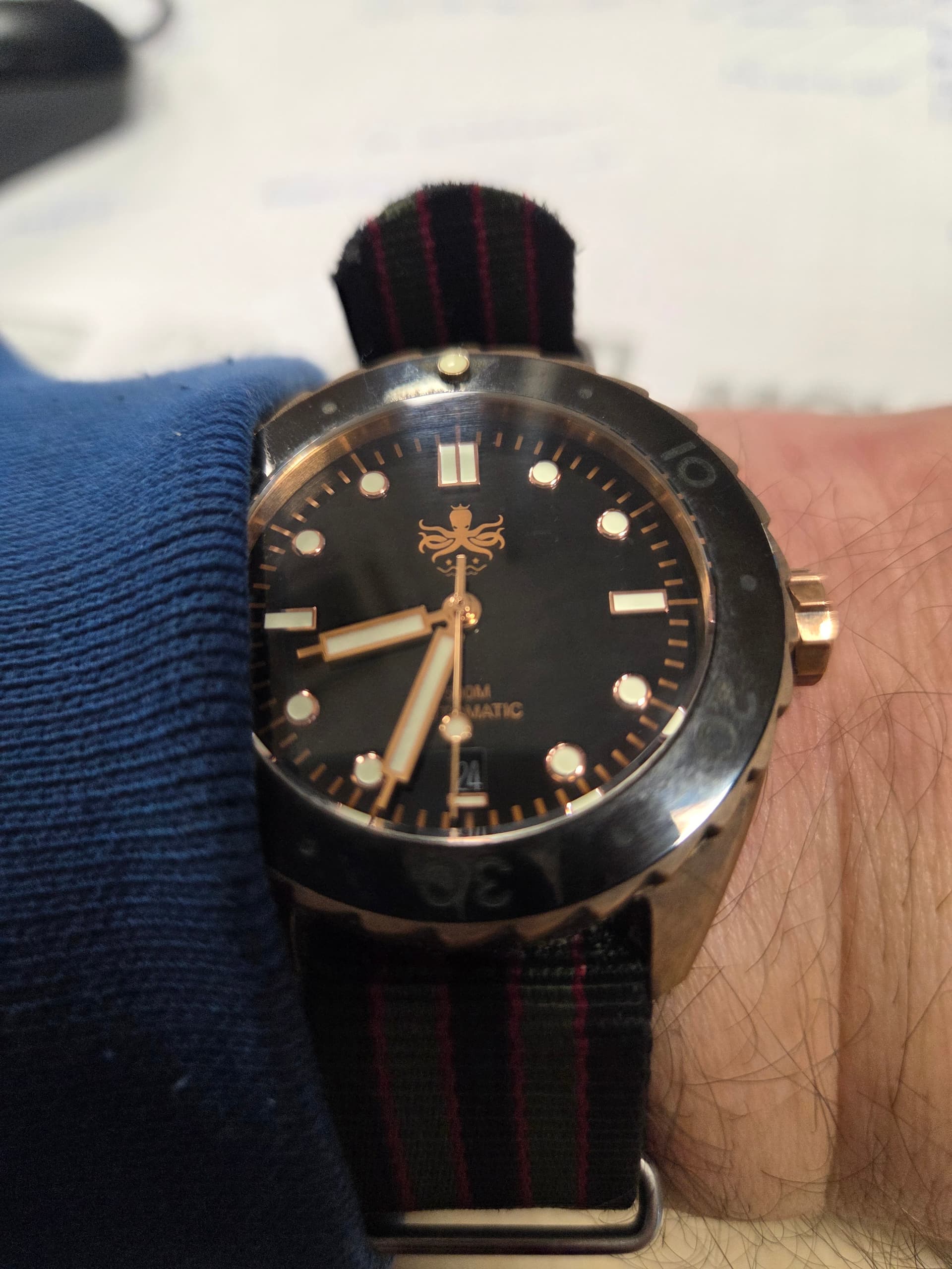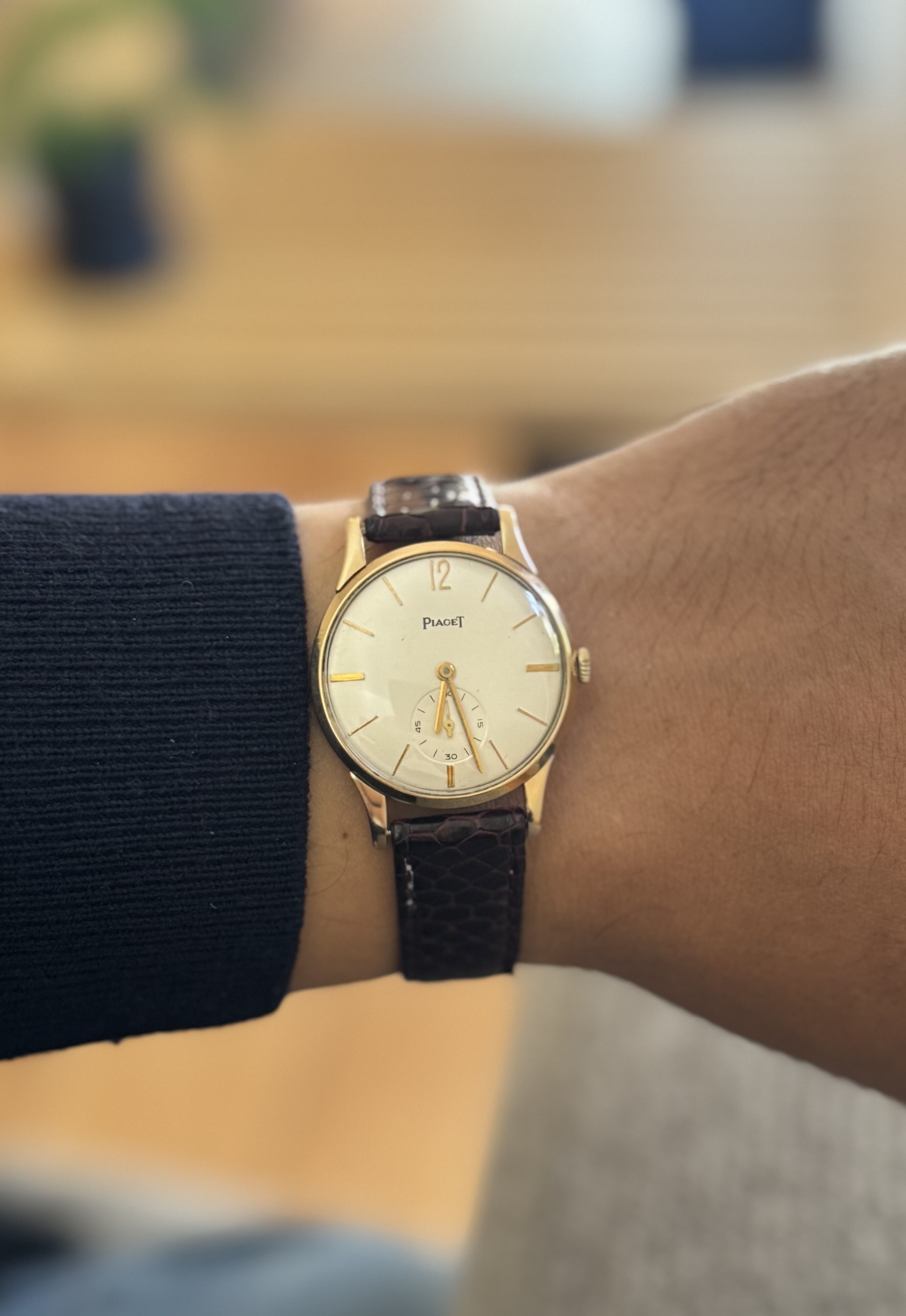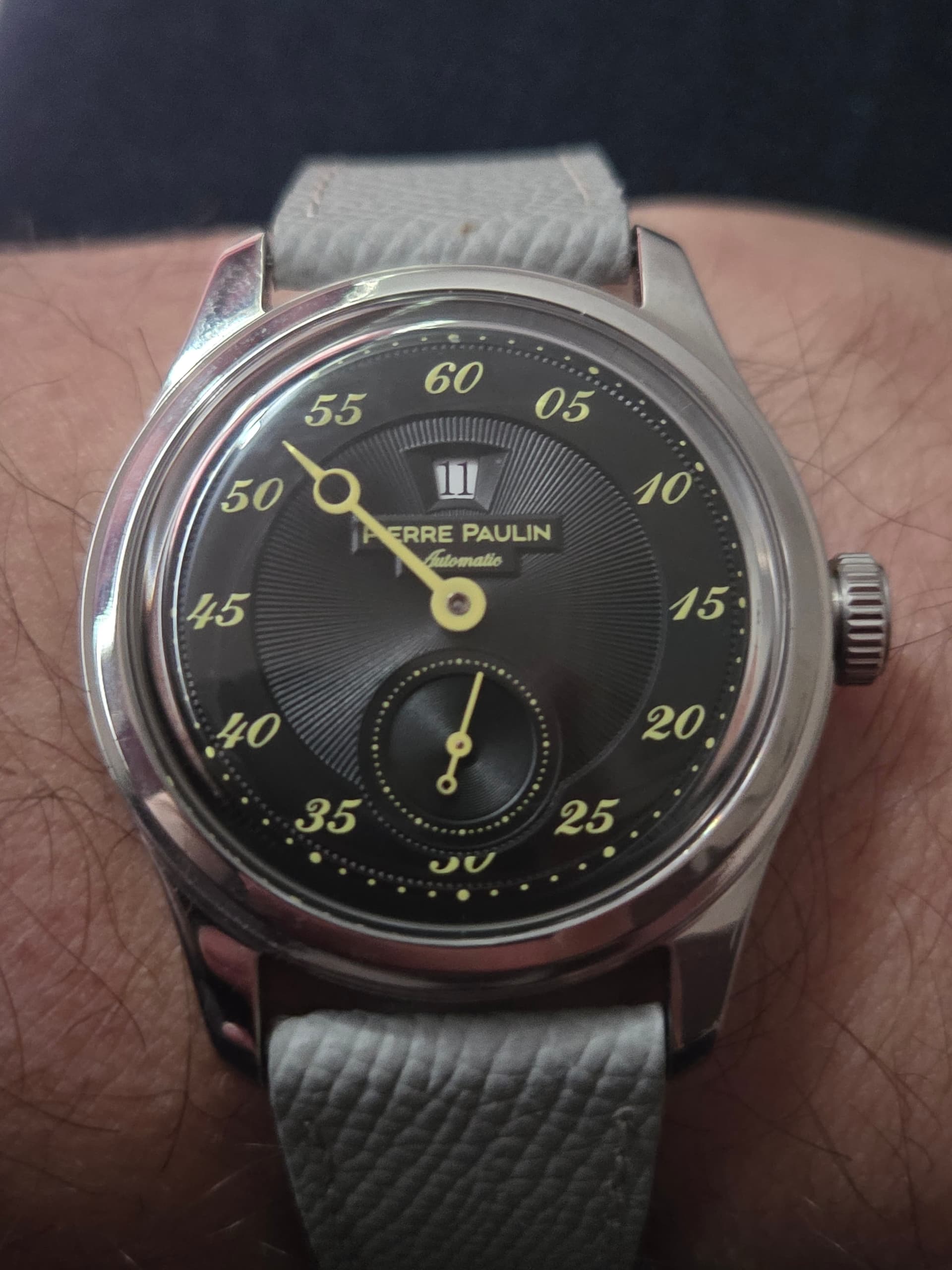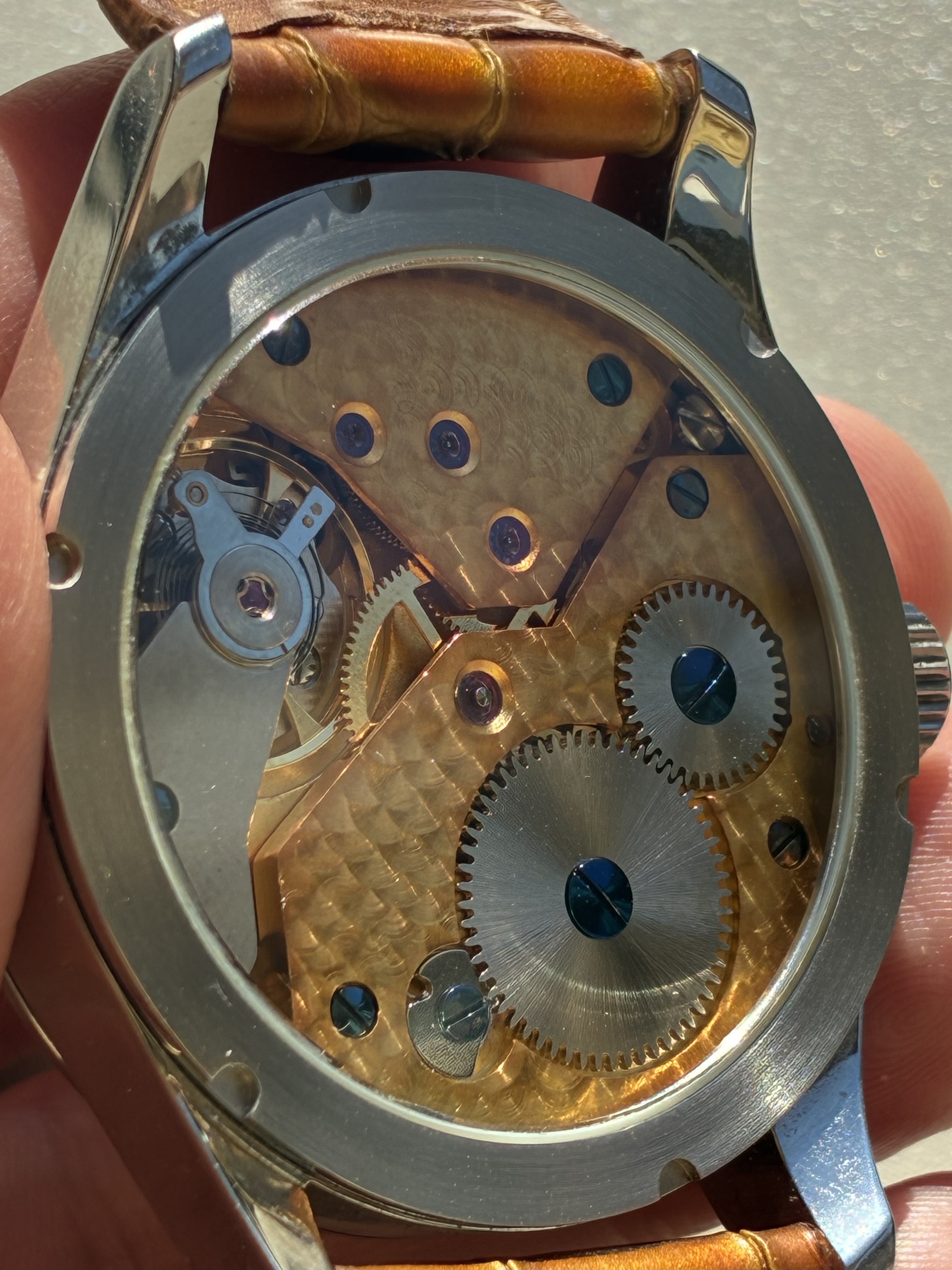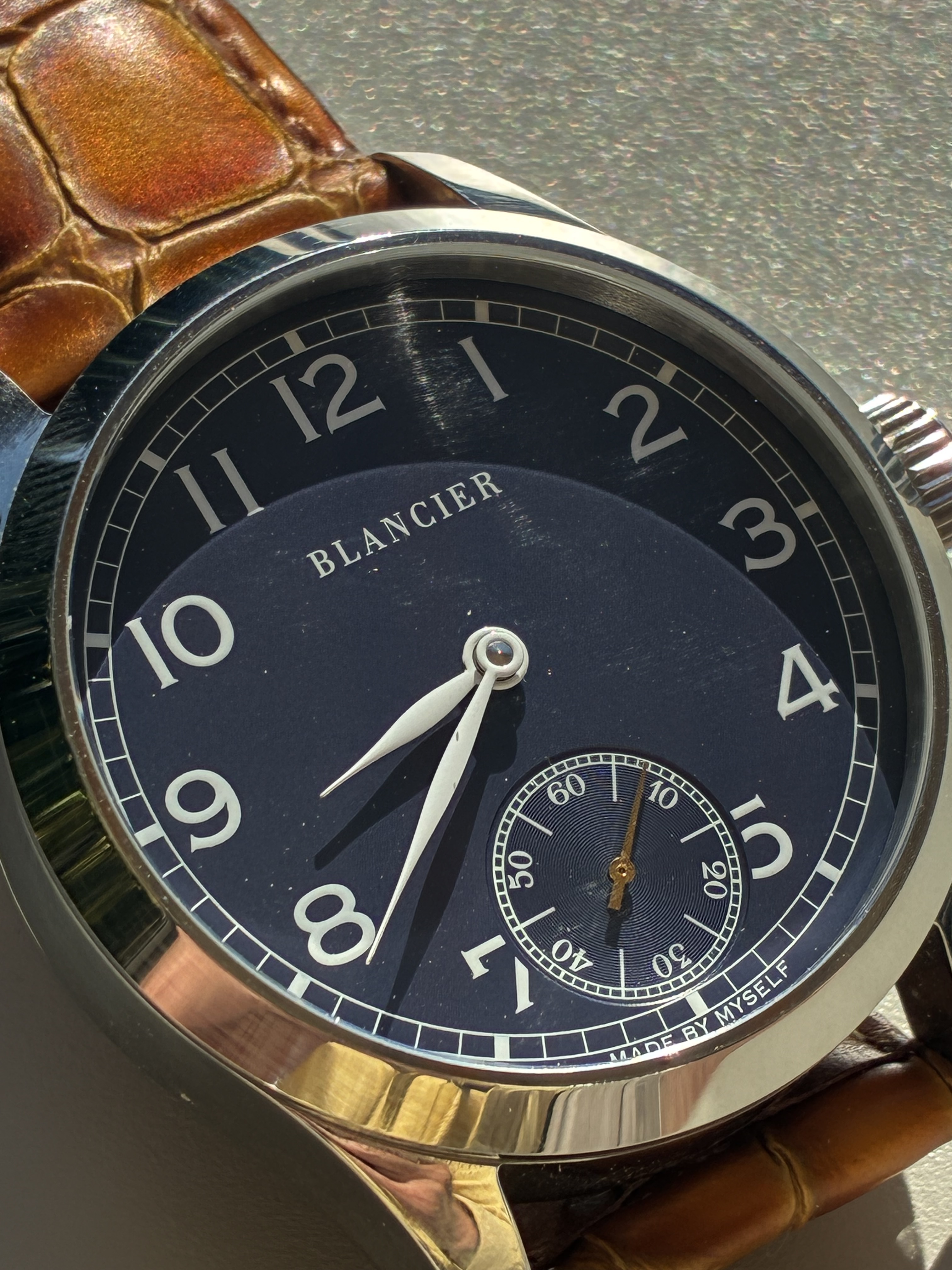 Mijn zelf-geassembleerde handwinder van de Blancier workshop met subtiele goudkleurige secondenwijzer