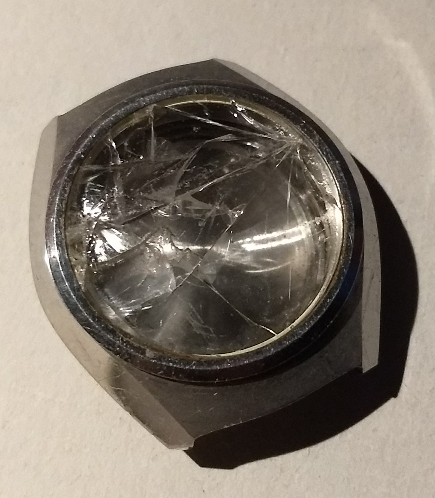 Vrijwel alle glazen hadden (voordat ze kapot werden geslagen) ook alleen een horizontaal vlakje. Probleem van Enicar blijft die grote variabelen die het assortiment toen had, vaak past iets (dial of werkje) nét niet.