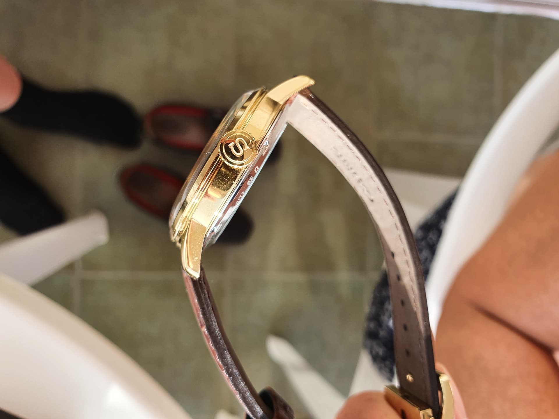 Ha! Die ken ik: Mondaine, goudkleurig.