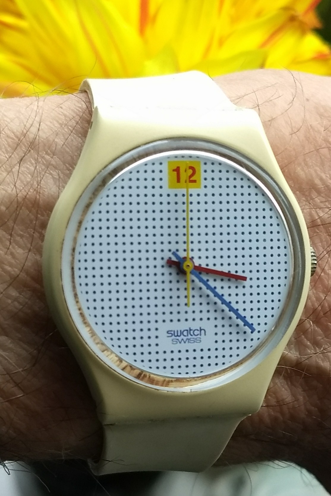 Je thema was klip en klaar “Toon je horloge met gele wijzers!” Dus geen gele wijzer(s) zijn 2 strafpunten.