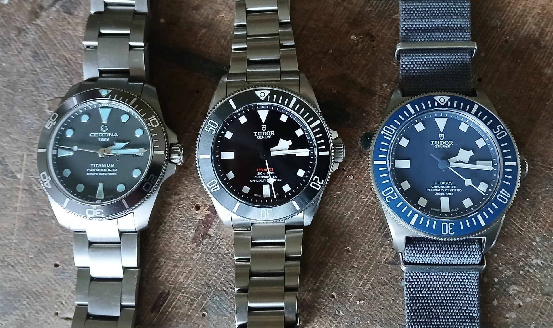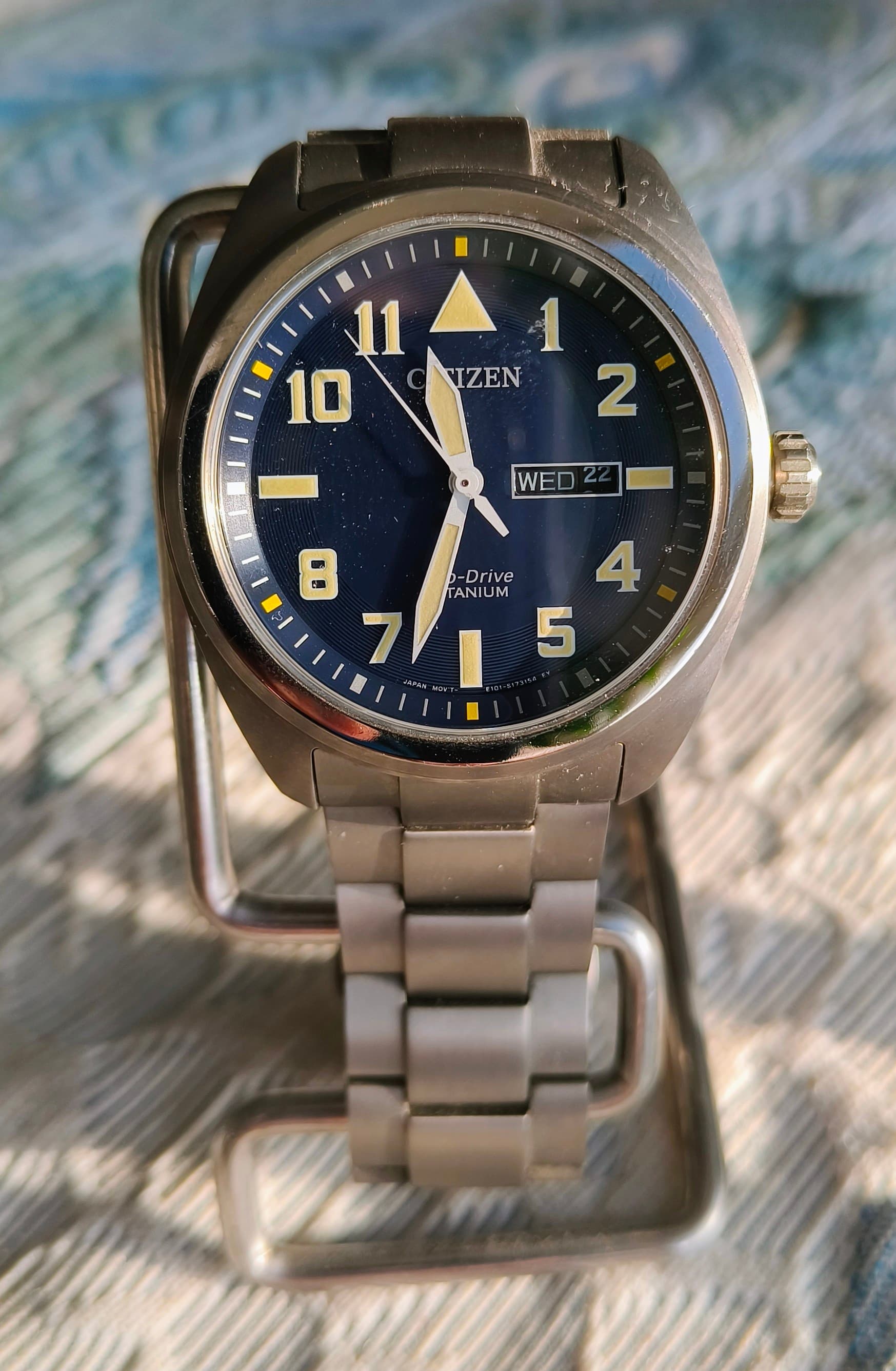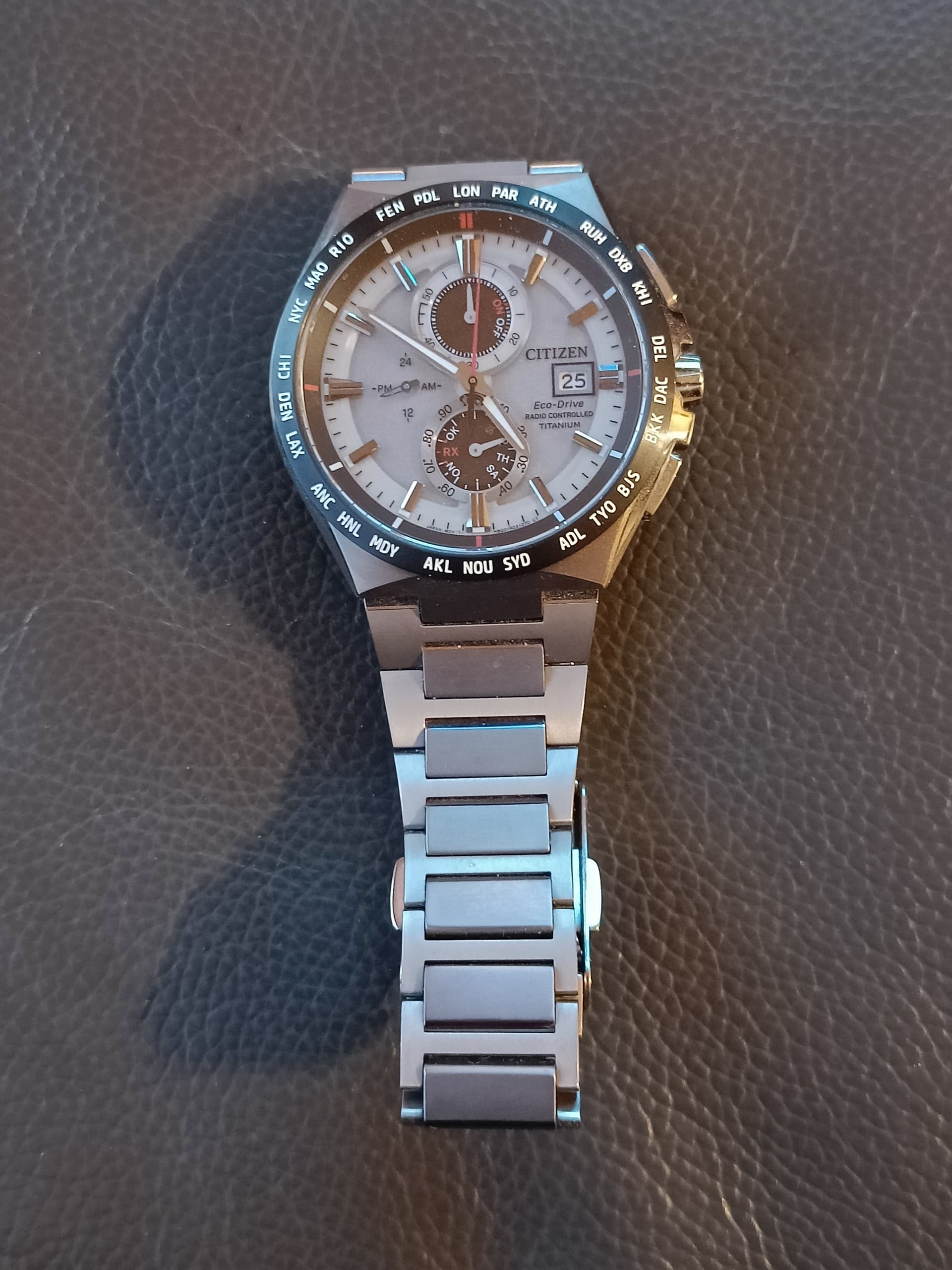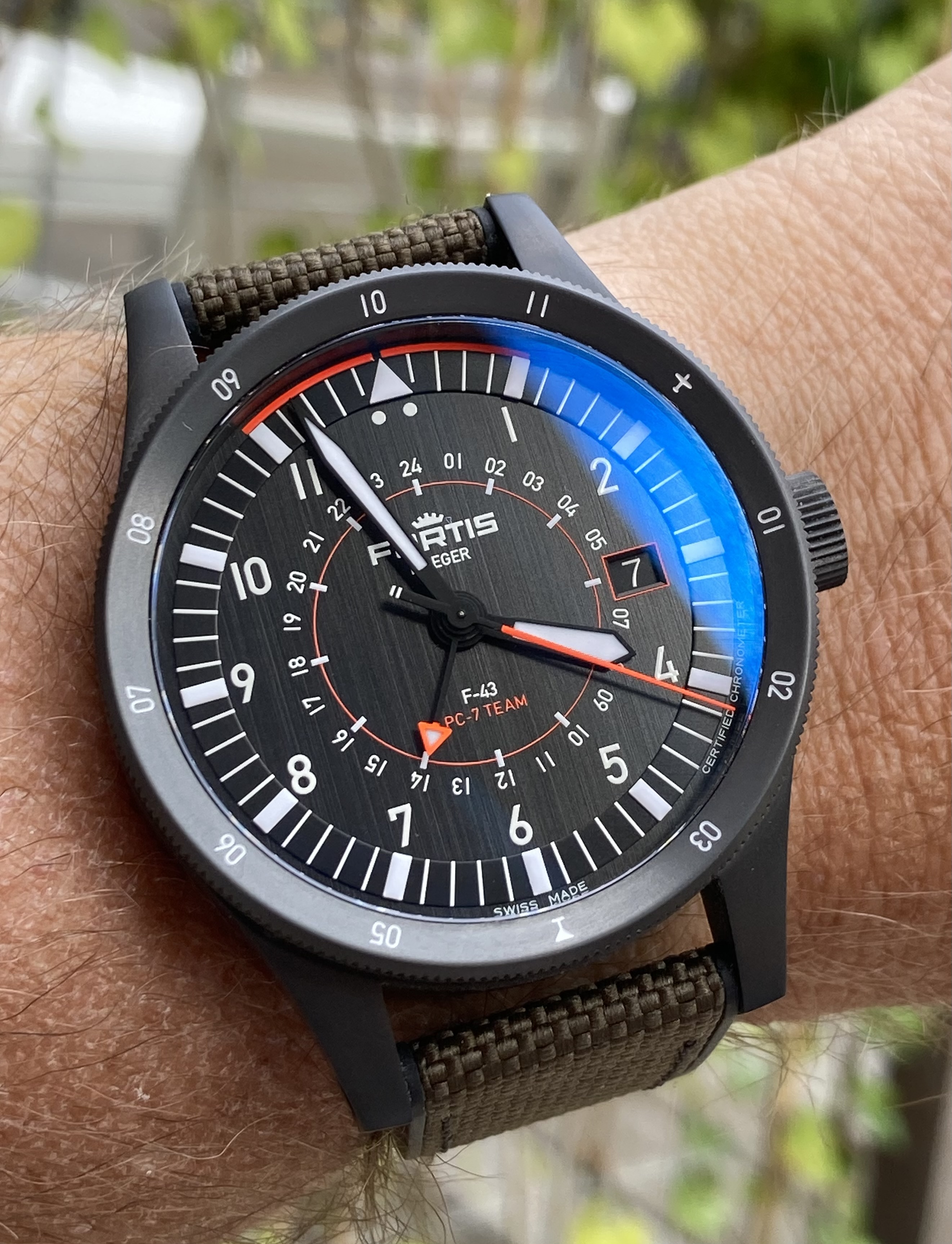 En eigenlijk valt ie door de korte lugs strak op de pols. Het is een bijzonder horloge, kwa materiaal en design