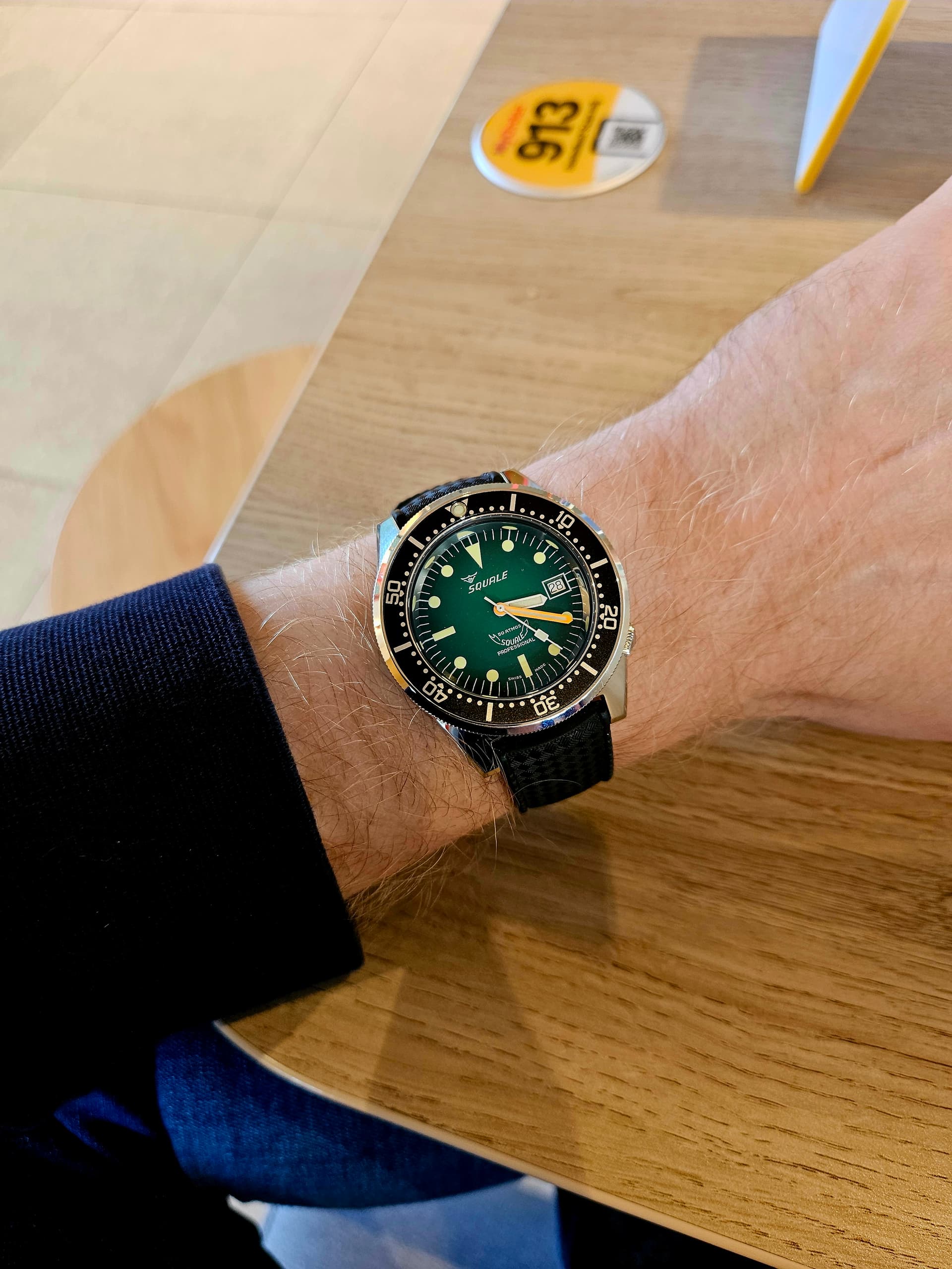 Ik trap af met mijn eerste Squale, de Atmos 1521 die door @Royke netjes een nieuwe bezel en een service heeft gehad. Dus voor en na de service, zie het verschil