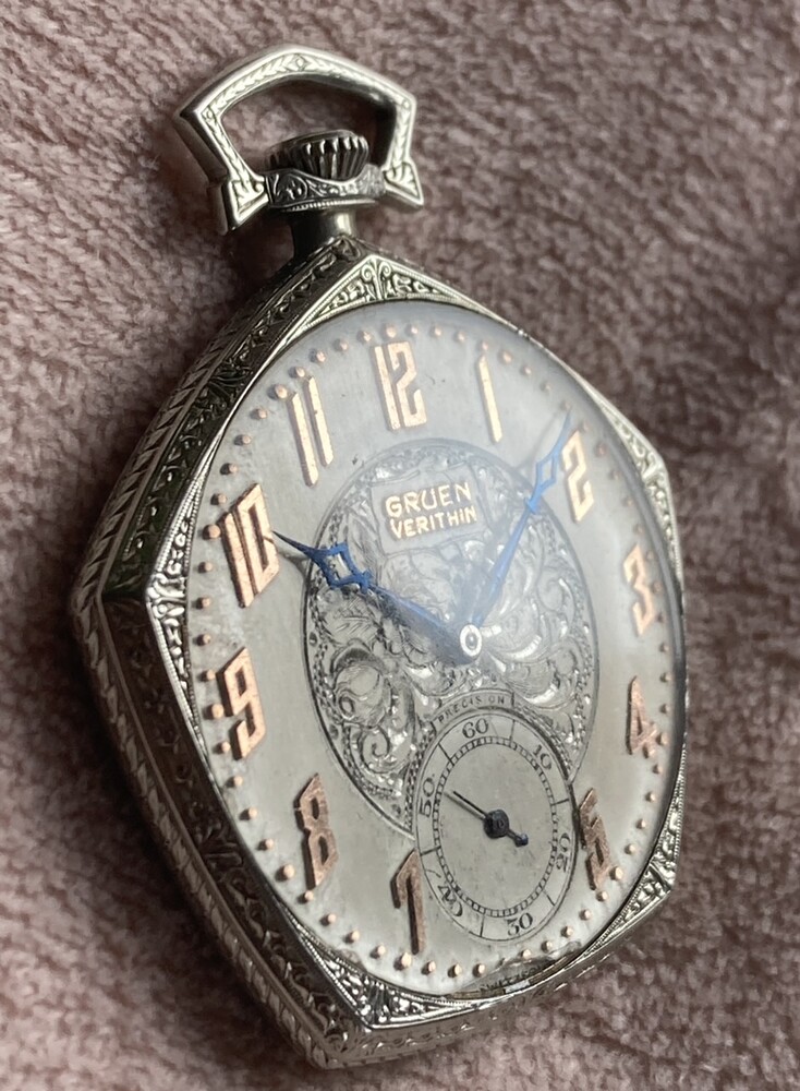 En nog wat ouder, uit 1924 een zakhorloge. Gruen Pentagon