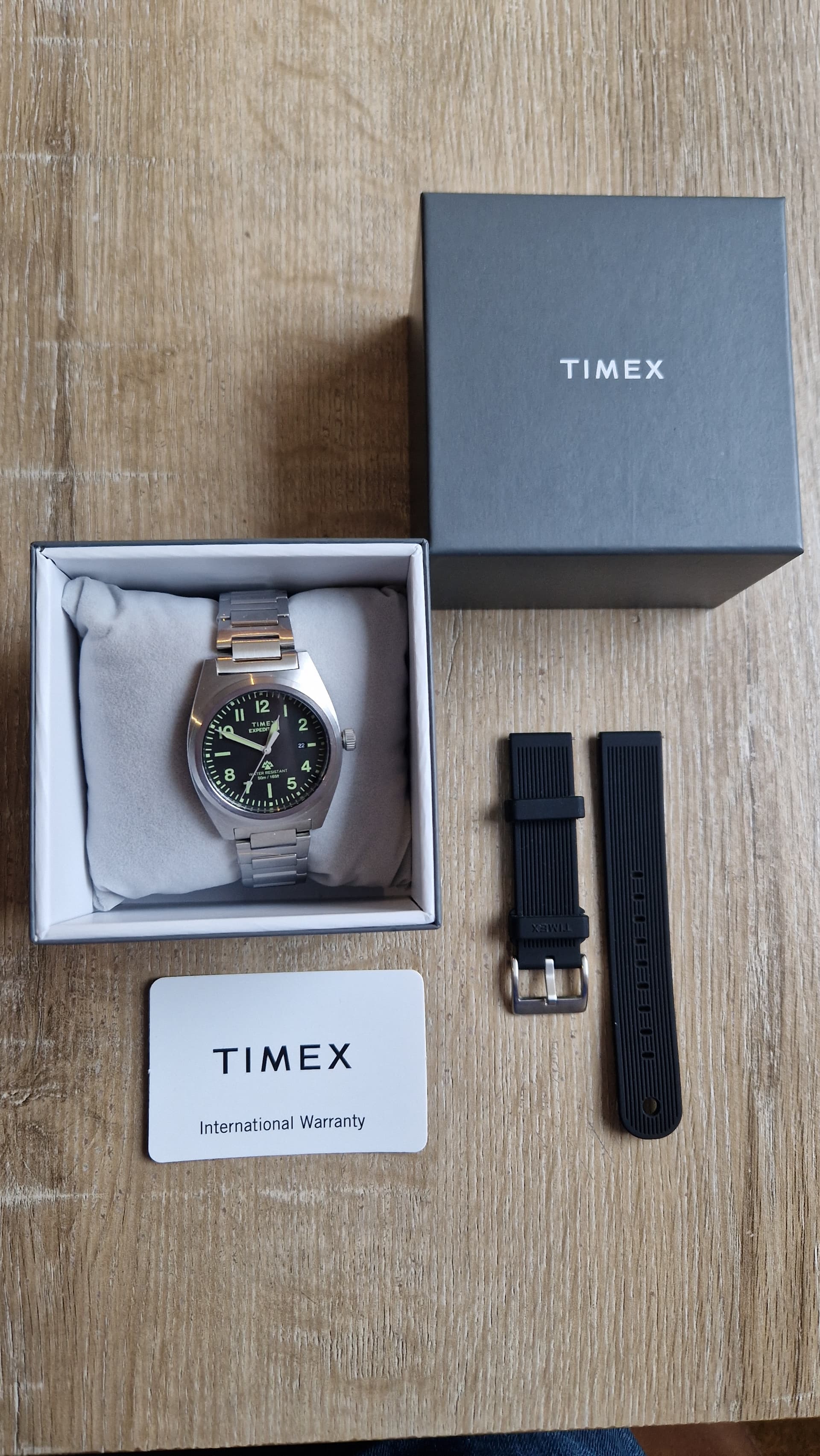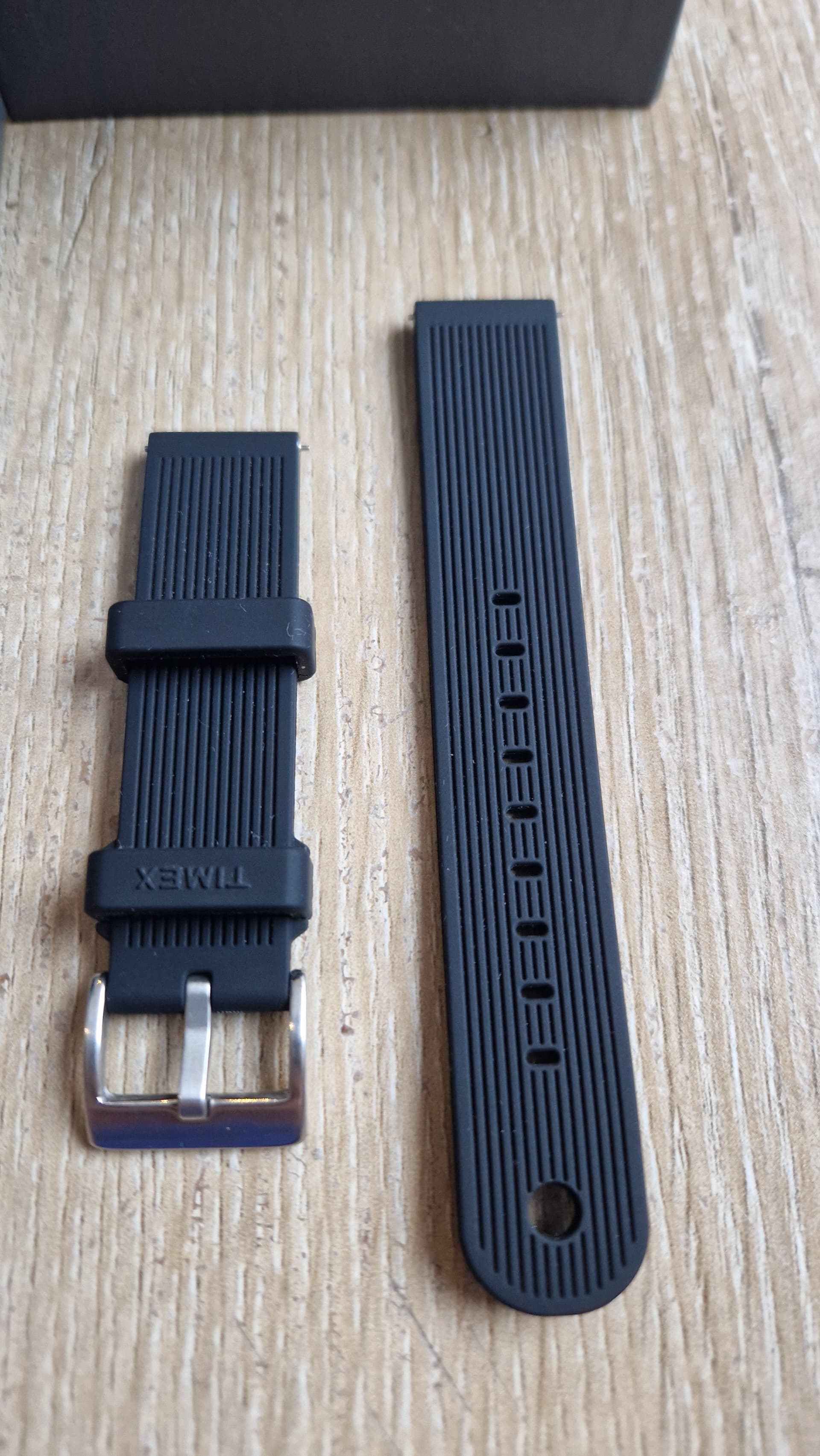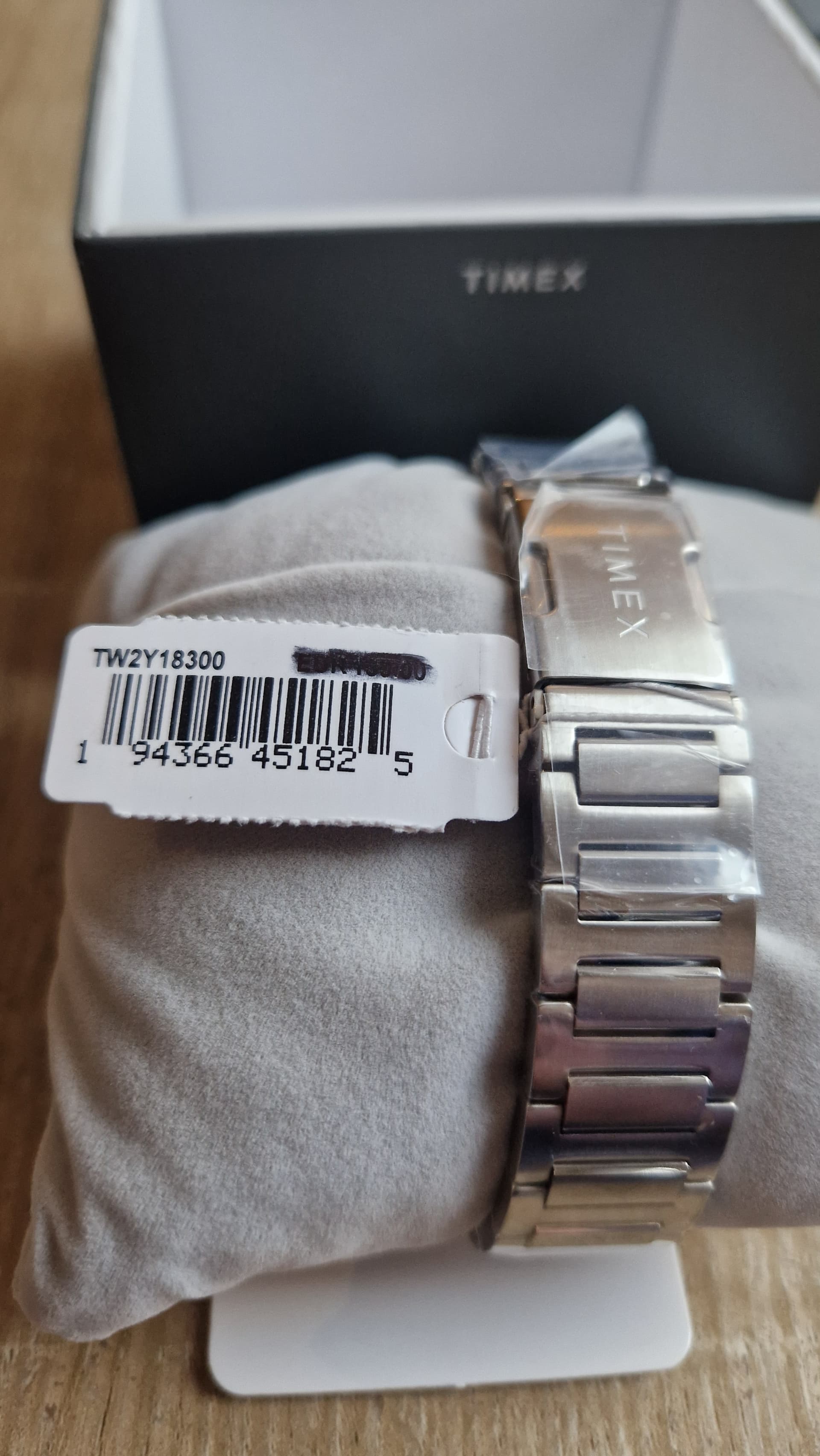 Originele doos en/of eventuele accessoires: Doos, tag, origineel zwart rubber bandje van de TW 2Y18100 ter waarde van 35eu, originele stalen band is opgedragen en nog in de plastic