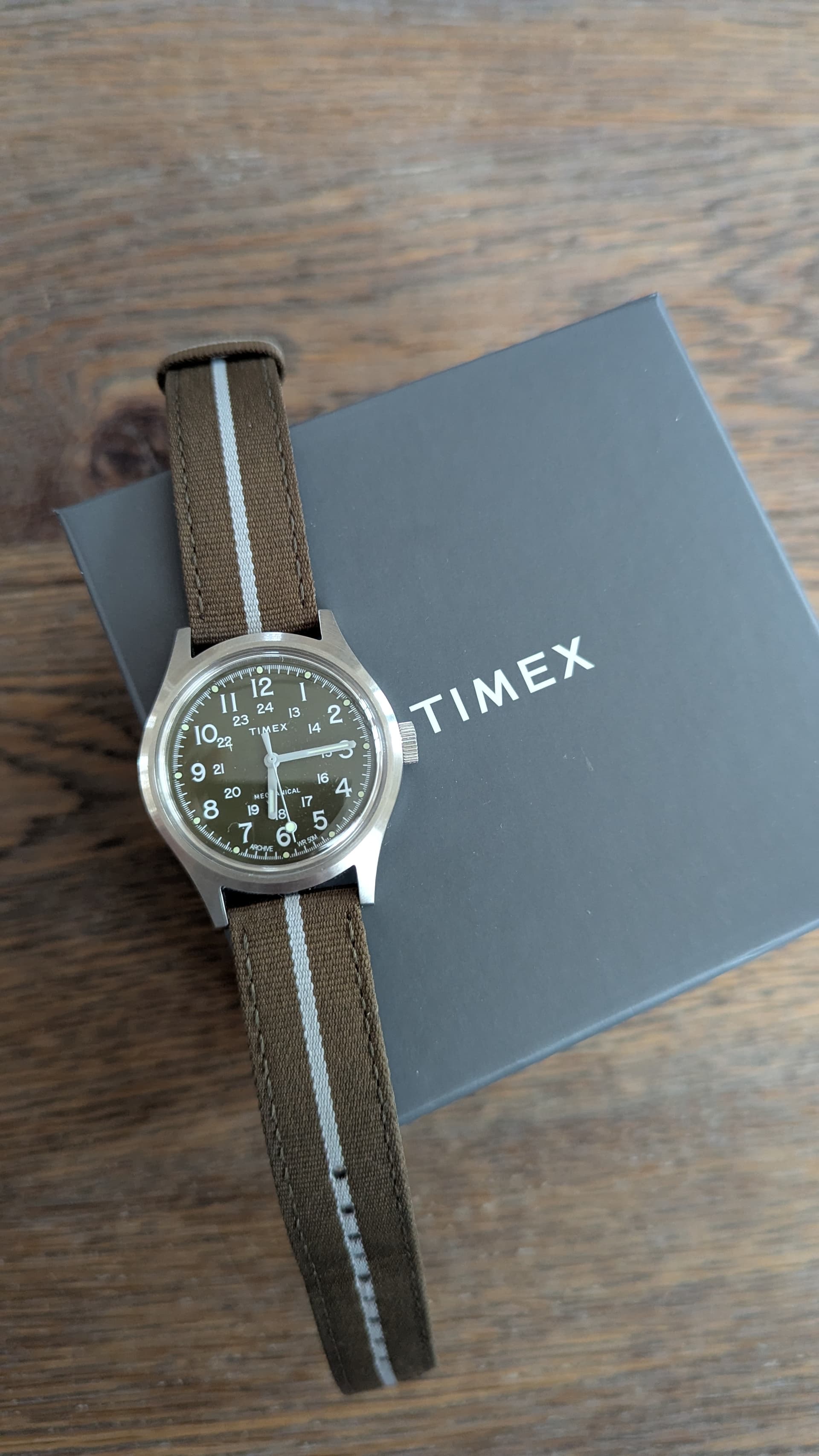 Merk en model: Timex MK1 Mechanical 36mm Green Dial
