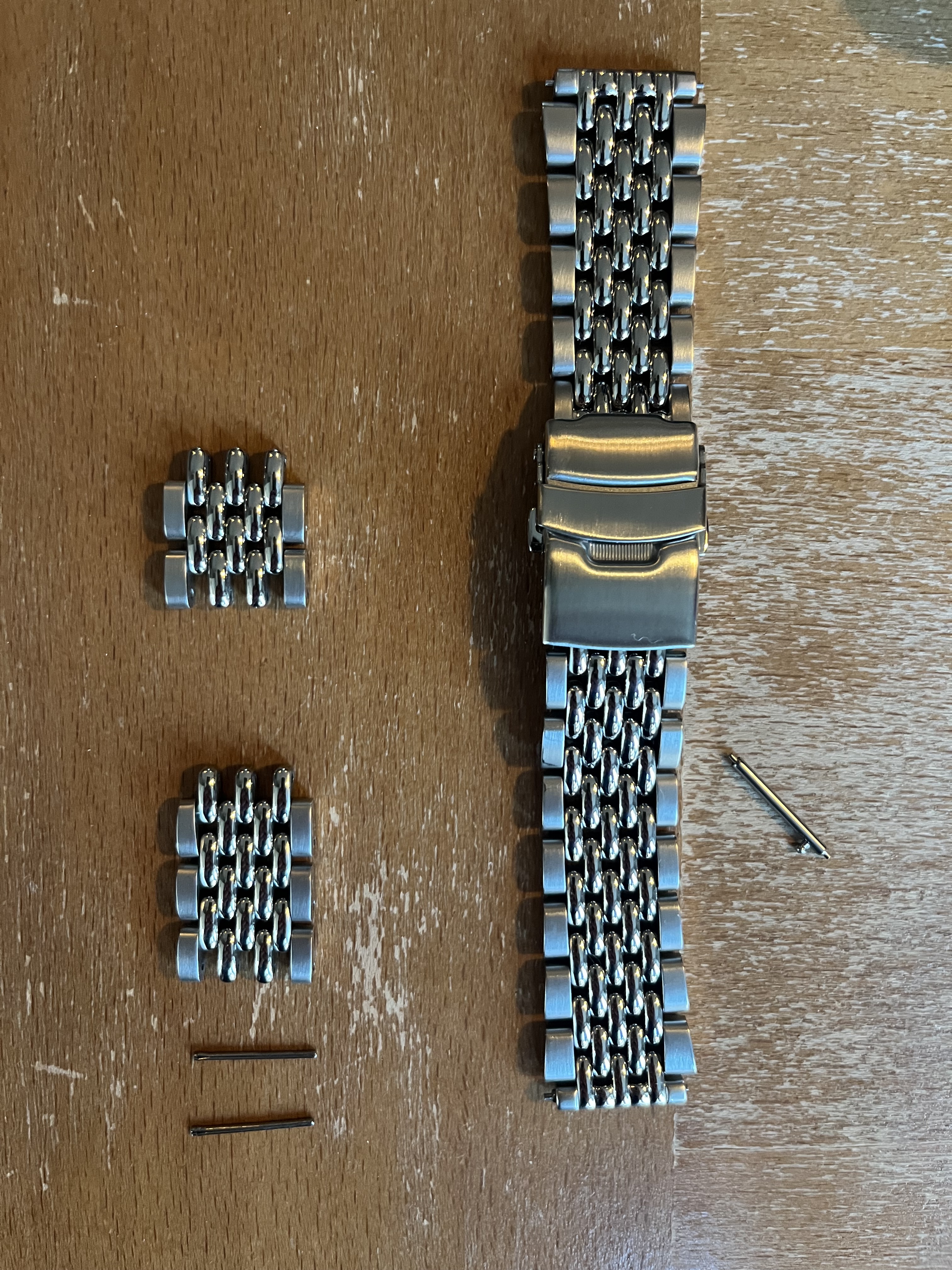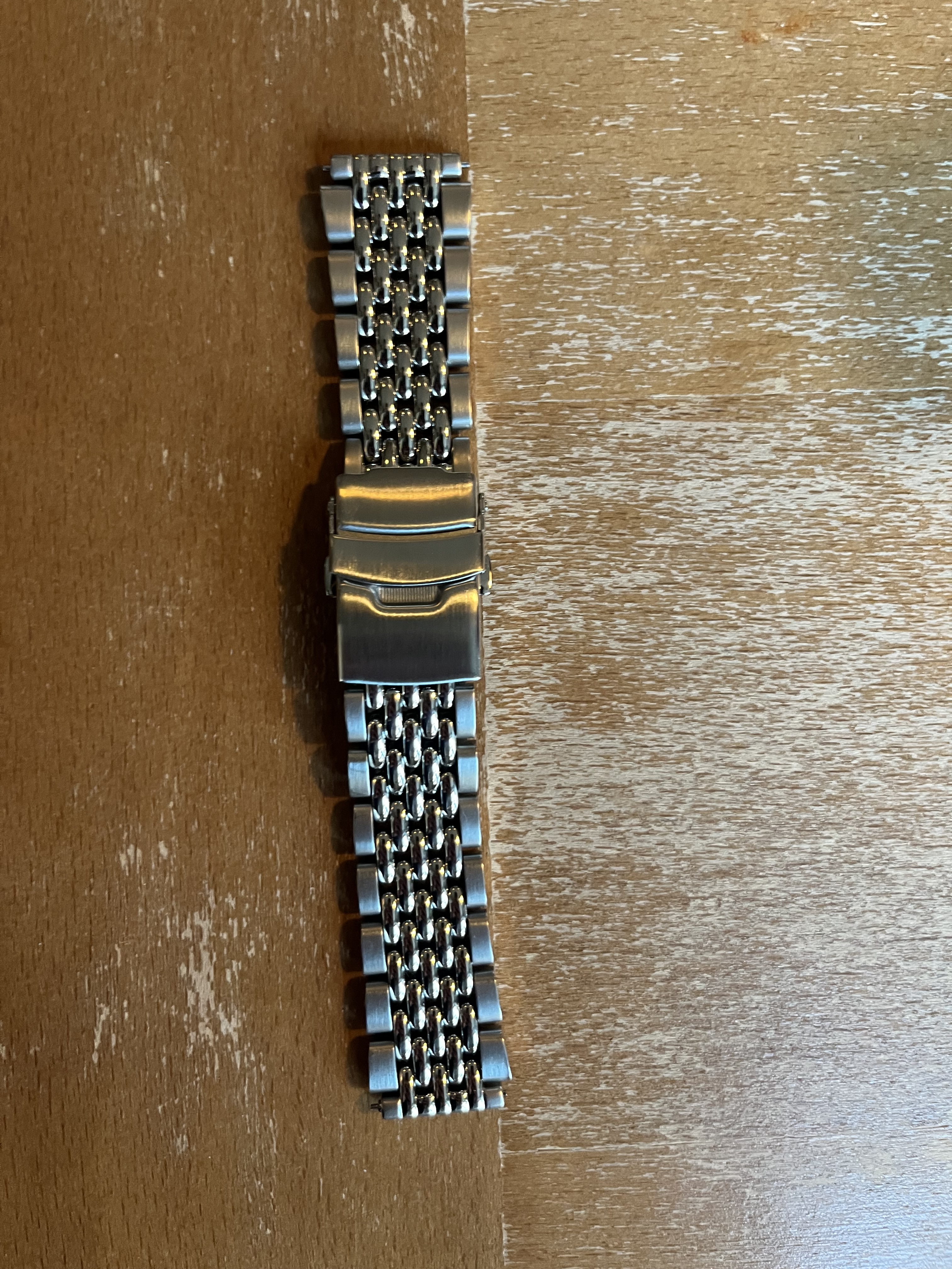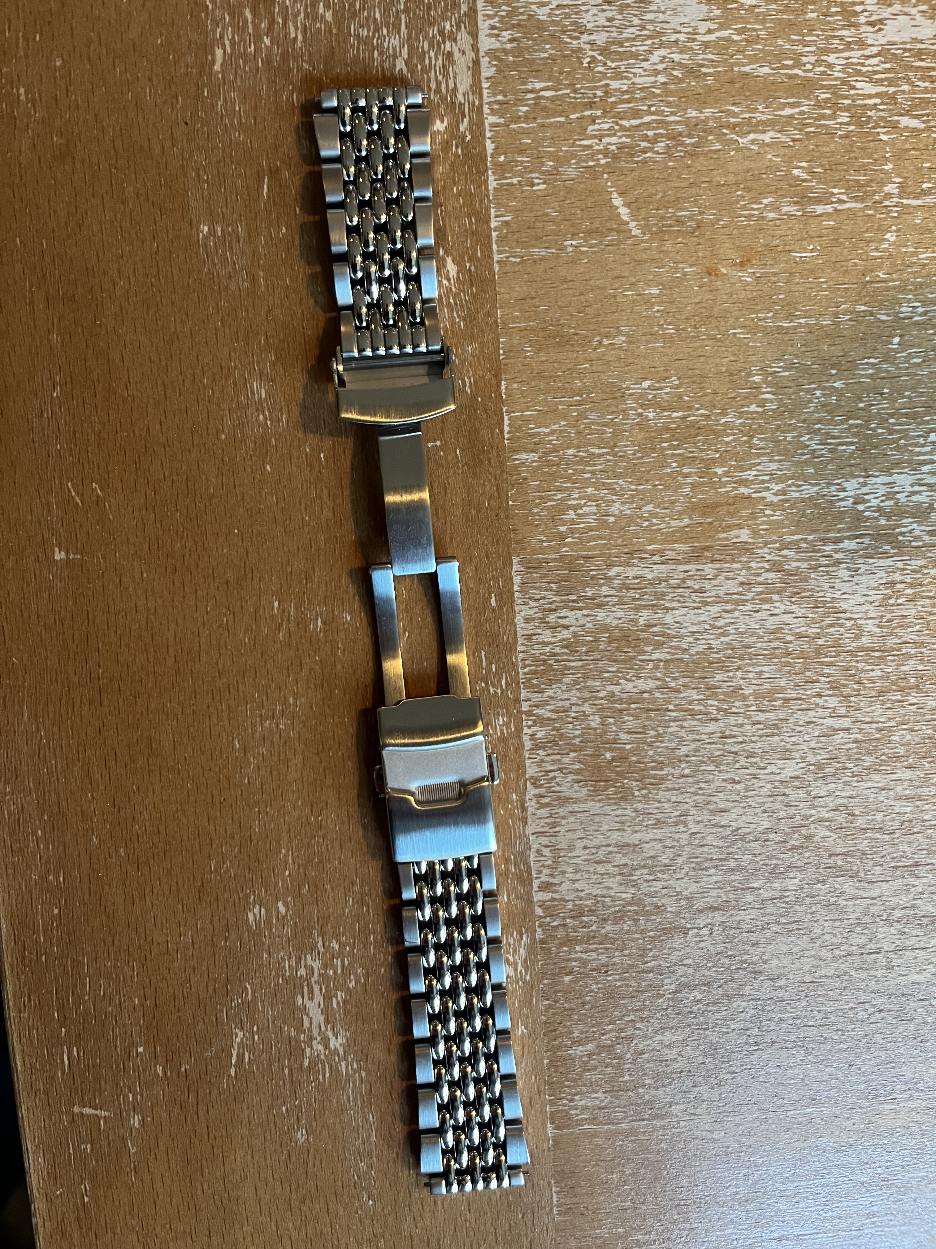Ik verkoop mijn beads of rice van Straphabit. Zit enorm lekker en is echt een gamechanger op mijn Timex Q Reissue. Ik heb zelf inclusief inklaringskosten 66 eu betaald. Voor 45,- incl verzenden is ‘ie van jou! - leuk om te weten: hij past op de gehele Timex Q range. Hij heeft 18mm lugs maar gaat direct over naar 20/21mm waarbij het perfect aansluit op de kast. Het is echt een super sterke solid horloge band. De band is een week oud en staat dus 98/100.