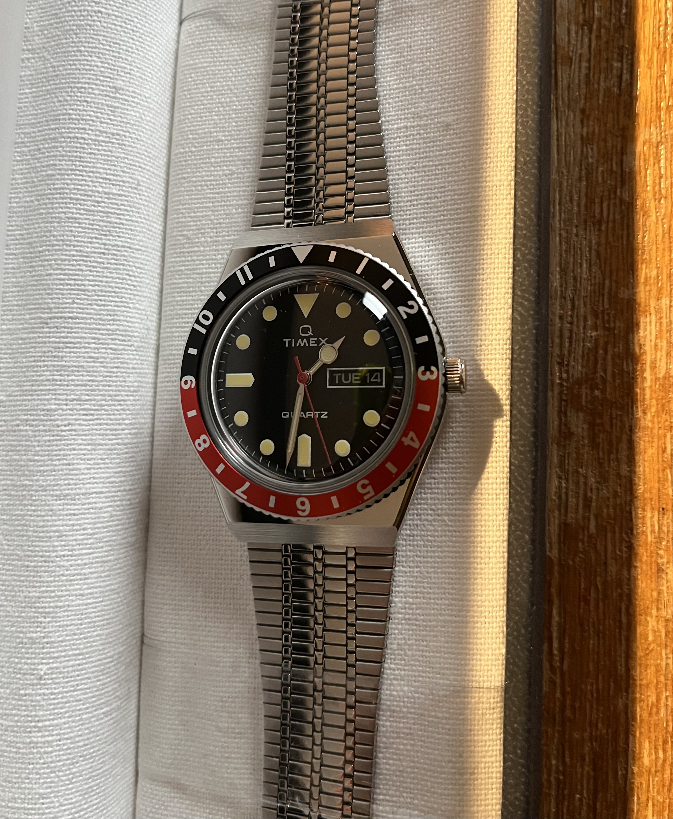 Te koop Timex Q Reissue Coke. Zwarte plaat en rood/zwarte bezel. Beperkt geleverd. Zo goed als nieuw, 1 keer gedragen.