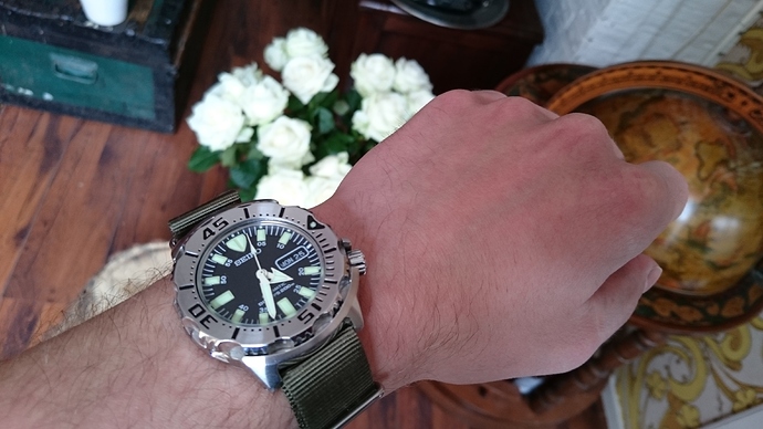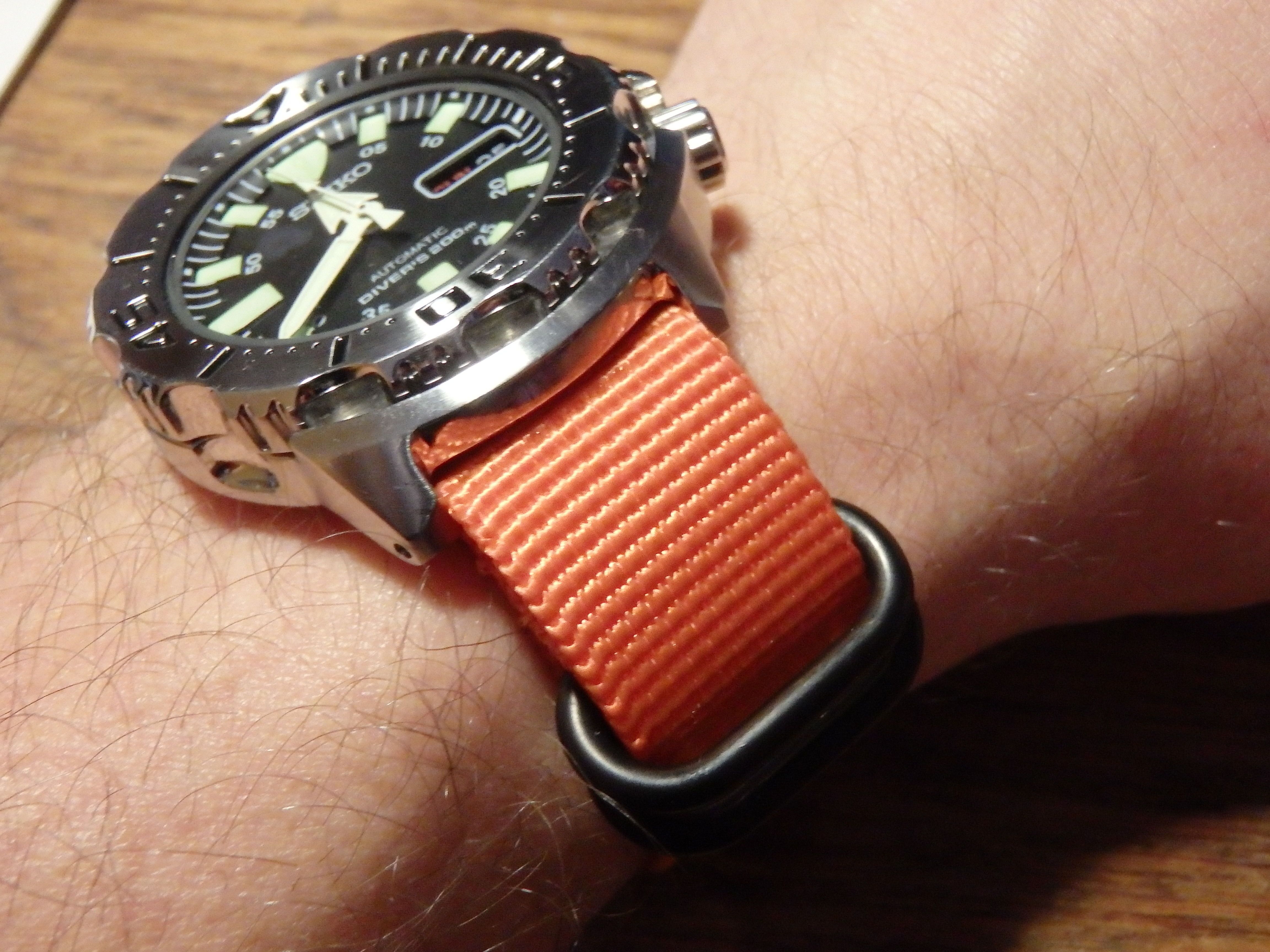 Zoals al eerder gezegd erg blij met de nieuwe Monster. De rubber band is al een stuk comfortabeler als die van de SKX, maar toch denk ik dat ik hier iets anders op wil. De bandaanzet is 20mm en deze loopt terug naar 18mm aan de gesp. En dat vind ik net wat te ‘iel’