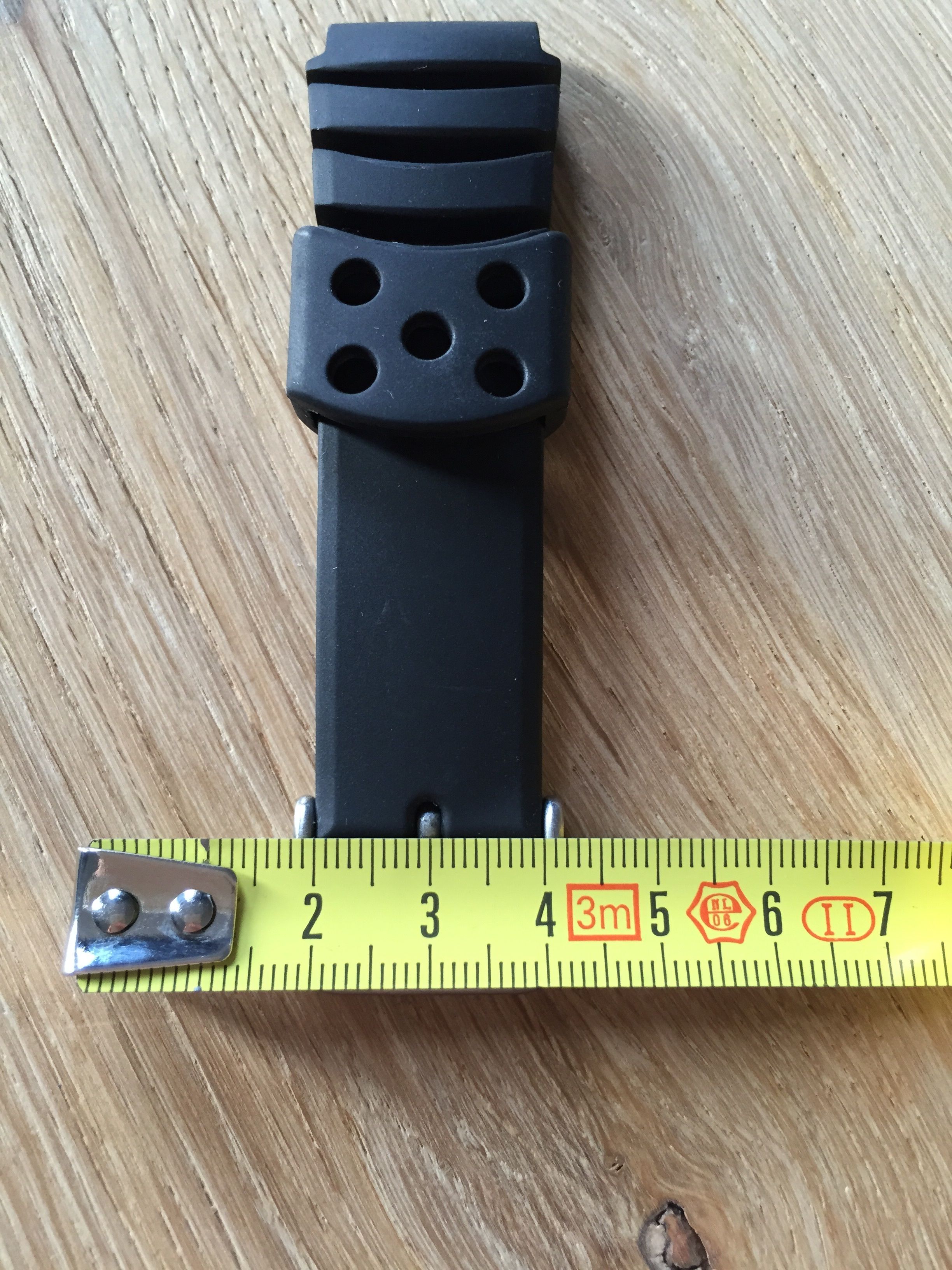Heeft iemand een goede tip voor een zwarte rubber band, aanzet 20mm die net als de originele band direct wat breder uitloopt naar ca. 22mm maar vervolgens óf recht doorloopt in 22mm óf afloopt naar 20mm. Een andere optie is een rechte band van 20mm en deze bij de aanzet 2mm bijsnijden maar dit vind ik een wat mindere optie.