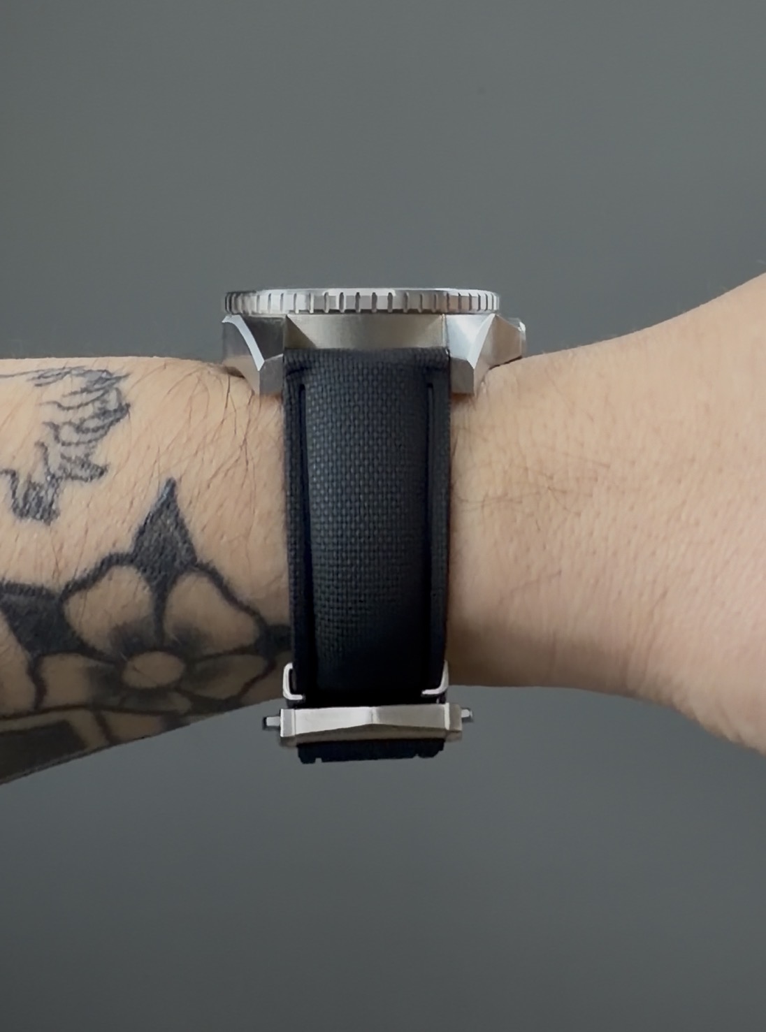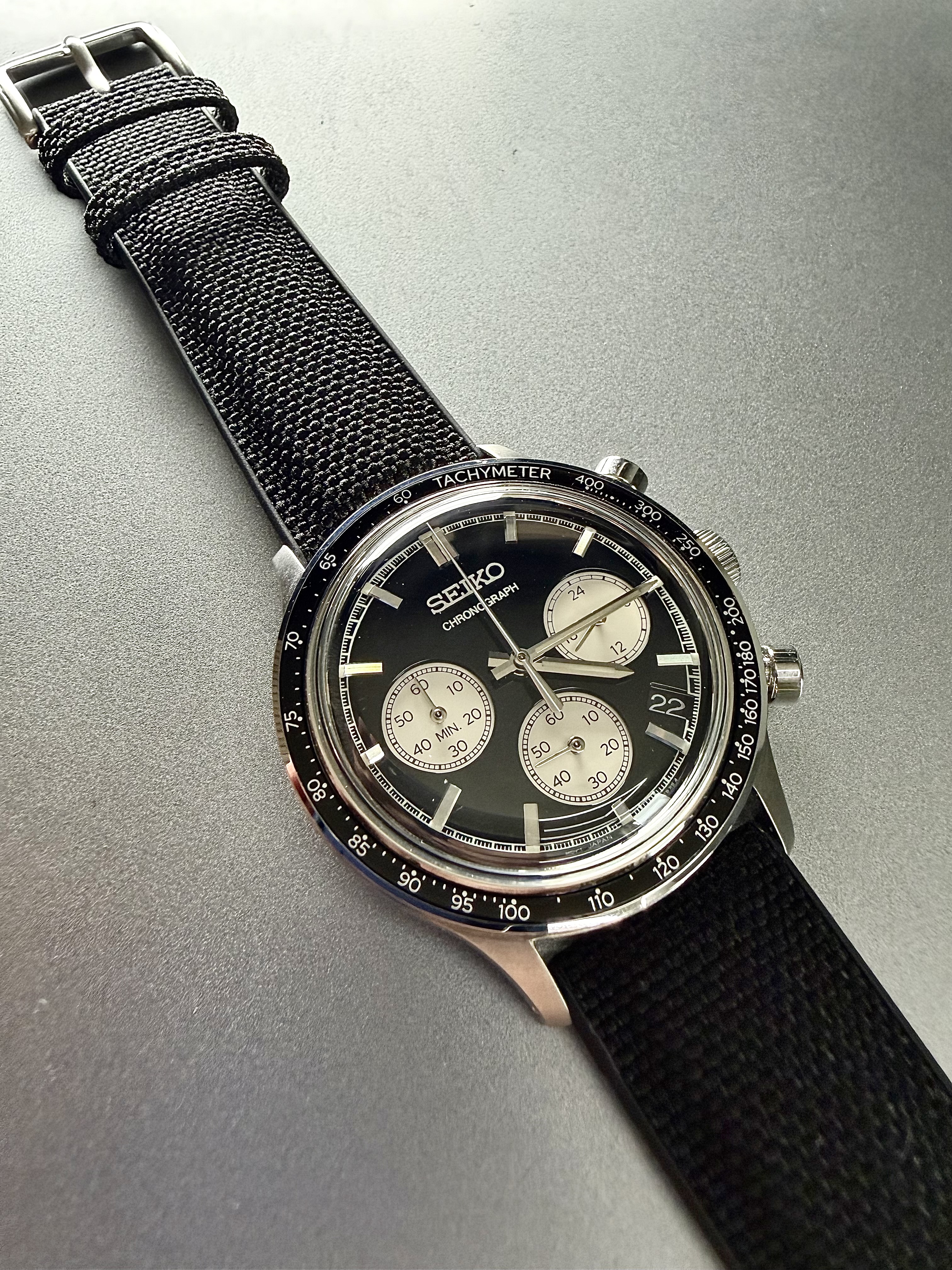Had hem oorspronkelijk besteld voor mijn Seiko SSB479P1 chronograaf maar daar vond ik het bandje toch te sportief voor. Gelukkig had ik dit vermoeden voor het bestellen al en had ik nog een extra bandje mee besteld (nou ja, eigenlijk was het andersom). Dat bandje is een mooie fit en heeft een wat andere stoffen bovenlaag waardoor die mooi met de Seiko gaat.