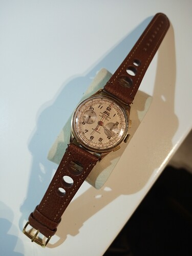 Ha mooie egona hoor, chronograph suisse met een landeron naar alle waarschijnlijkheid. Wel een kwetsbaar caliber. Even openmaken en kijken of je een service kan achterhalen.