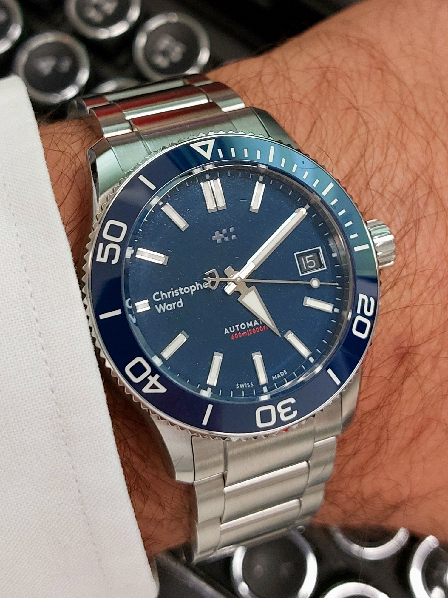 Een Christopher Ward C60 van 38mm (45mm lug-to-lug) vind ik net iets te iel op mijn pols. Durf daarom ook niet meer kleiner te gaan.