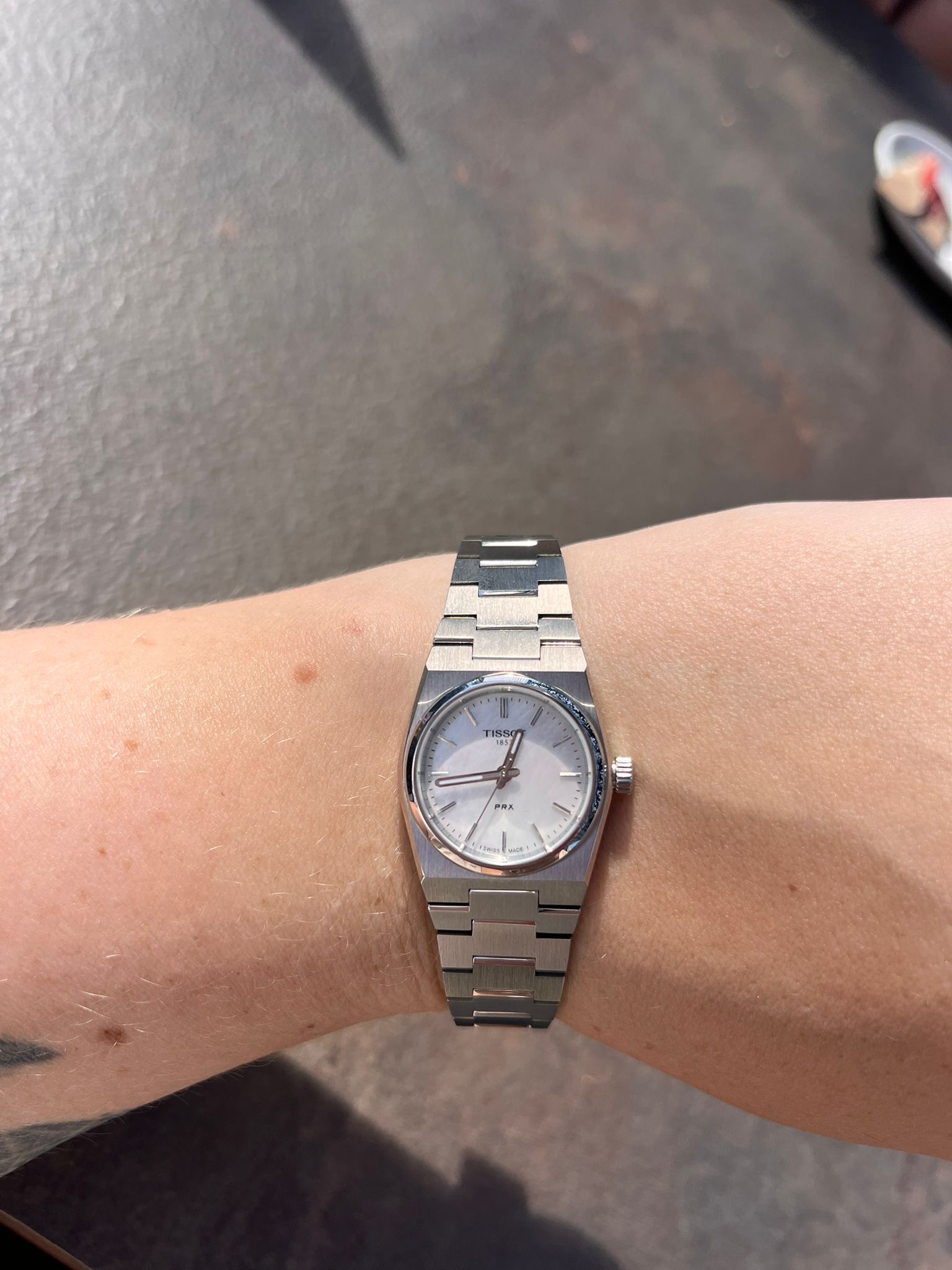 Vandaag een klein tussendoorcadeautje voor de vriendin gekocht. De Quartz versie mother of Pearl 25 mm. Overigens zeer vriendelijk geholpen bij Watches of Genève in de Mogán Mall in Puerto Rico.