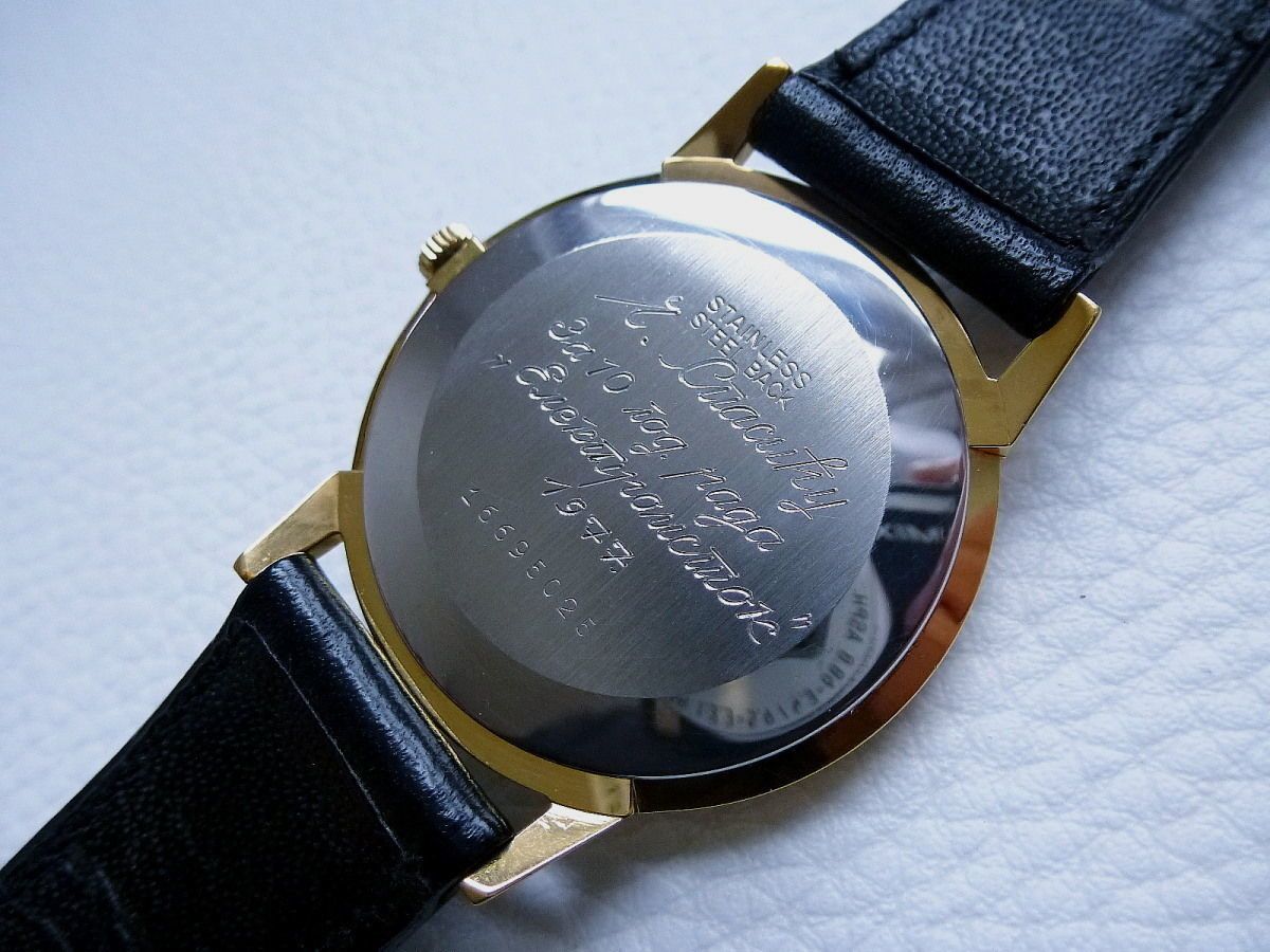 In dit geval vind ik de gravering zeker niet storend. Bovendien heeft het horloge geen kapitalen gekost, dus zou ik niet moeilijk doen over waardevermindering. Zeker niet omdat het verder in prachtige staat is, zowel van binnen als van buiten. Wat mij betreft is het de aankoopprijs dubbel en dwars waard.