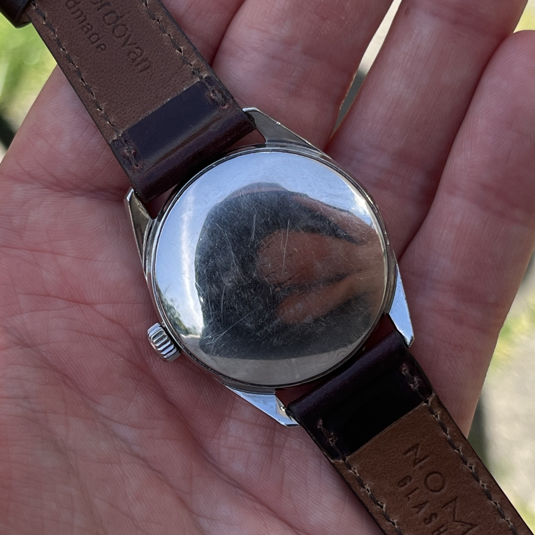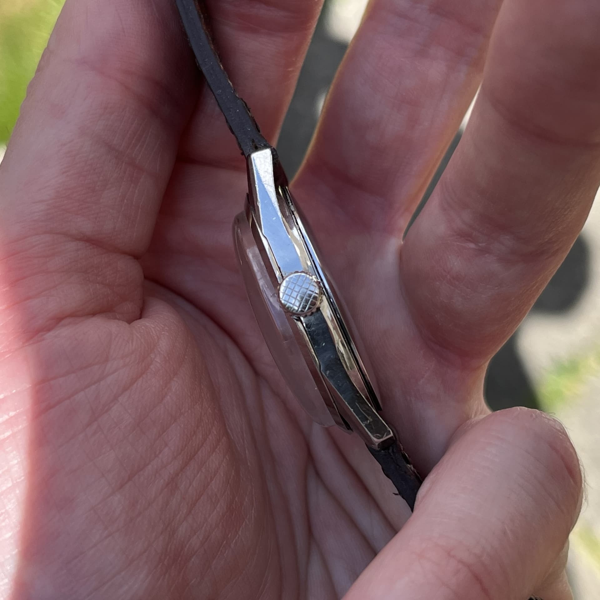 Leeftijd: 1960s. EPSA maakte indertijd topkwaliteit kasten met kenmerkende kroon. De kwaliteit is af te zien aan de mint wijzerplaat en tritium lume.