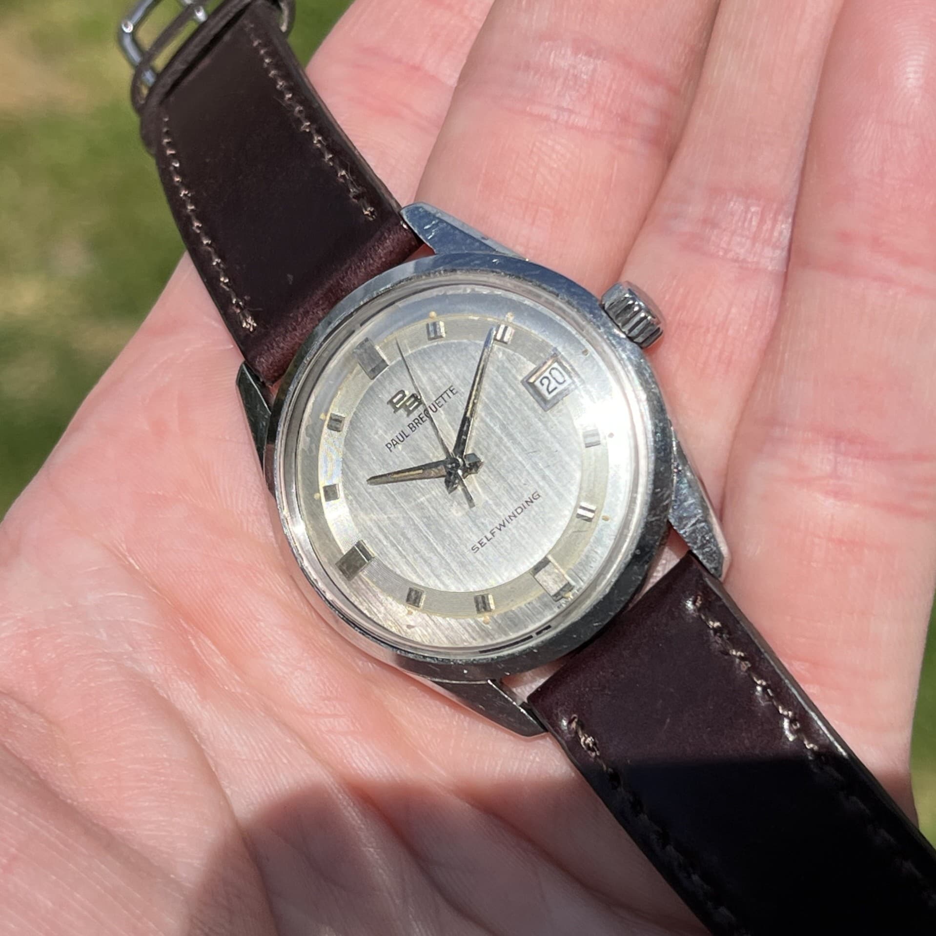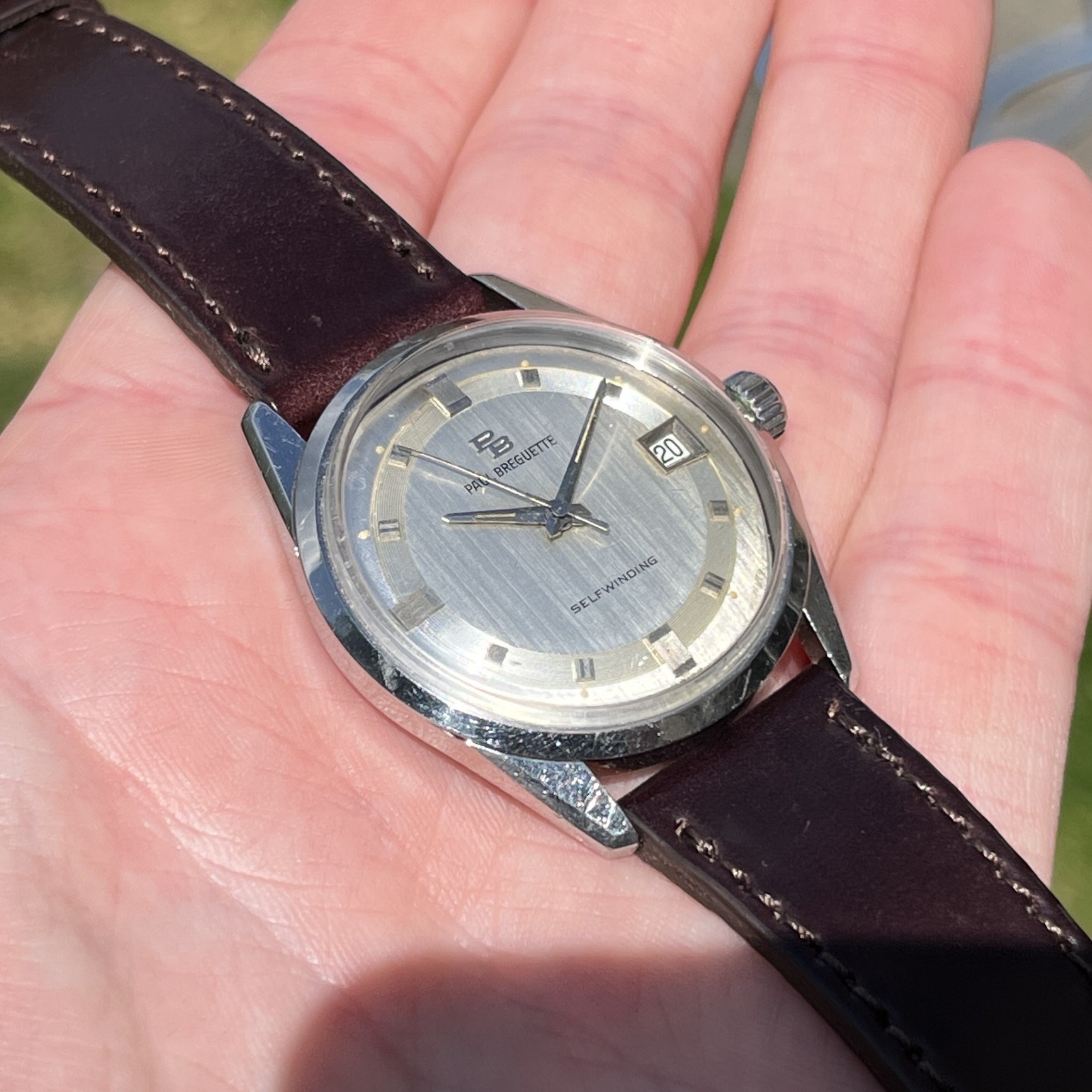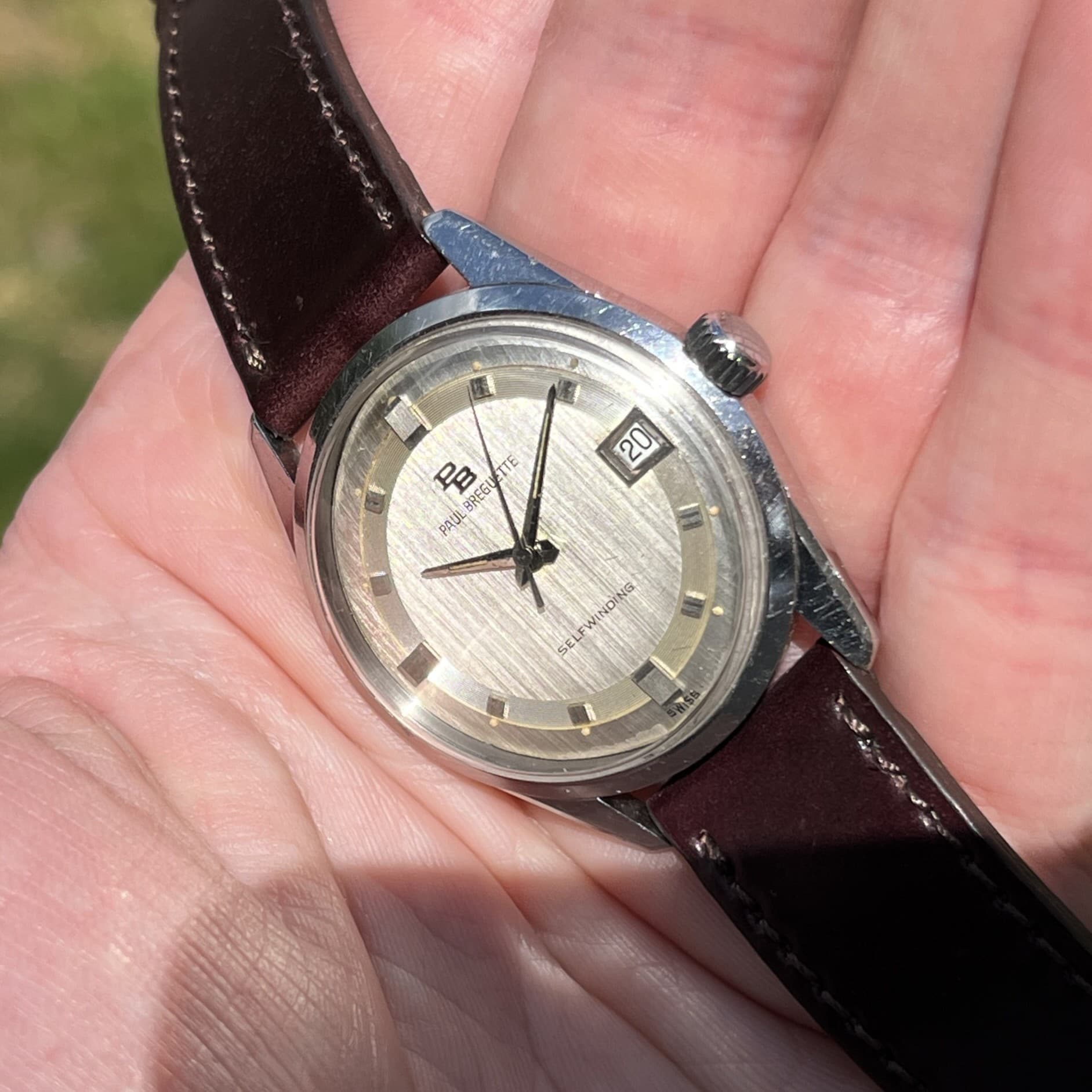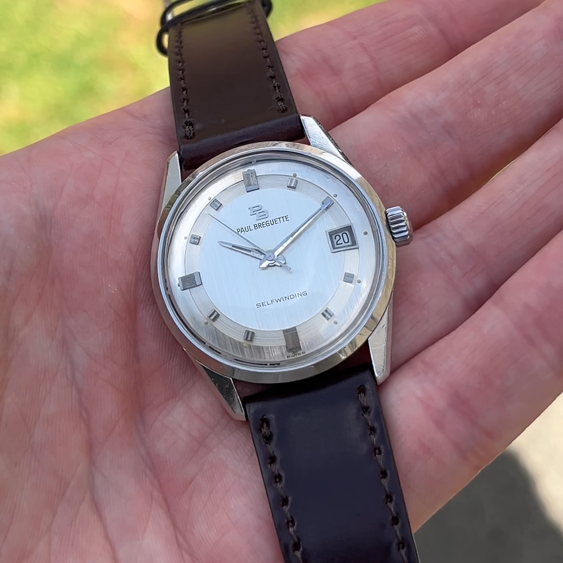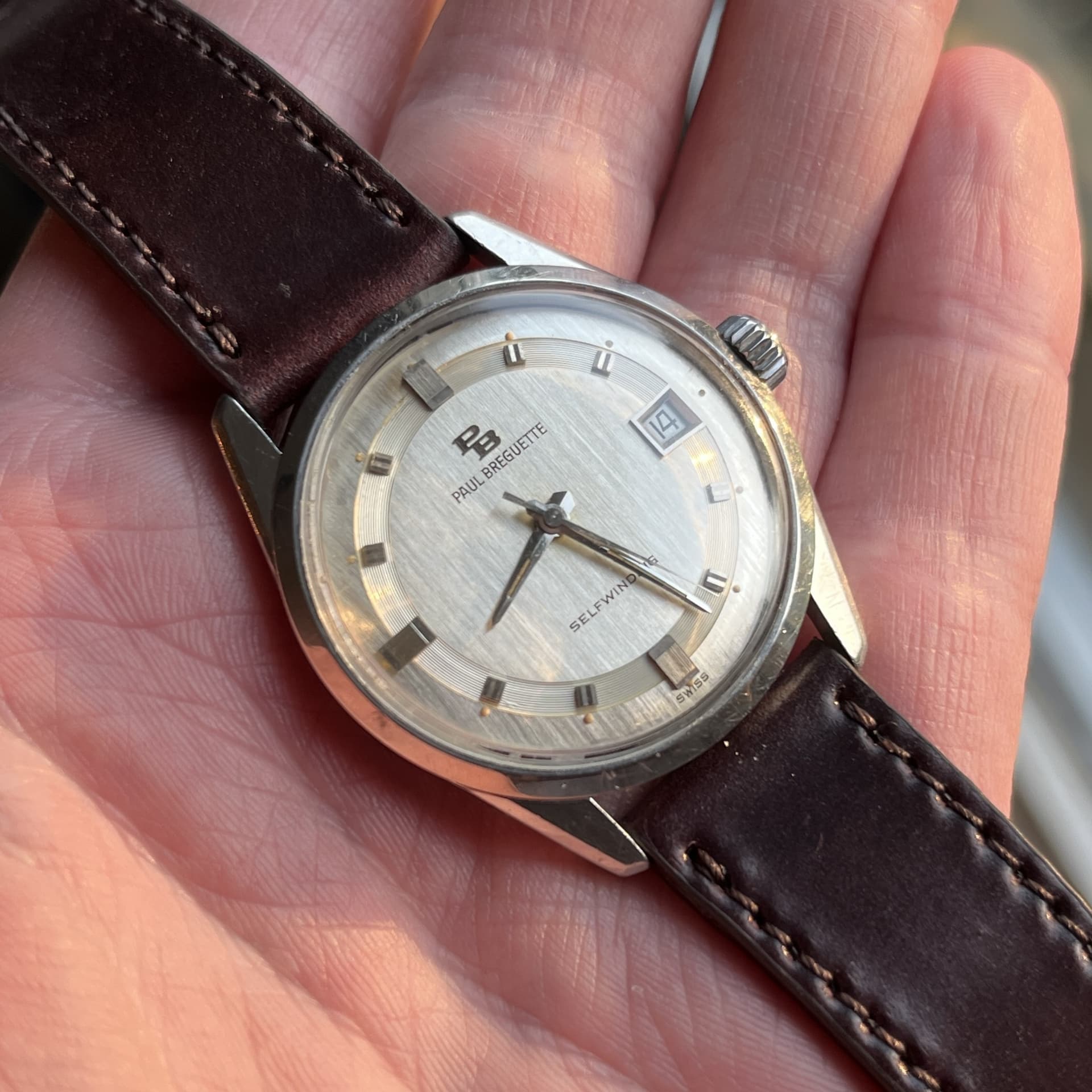Merk: Paul Breguette (US brand van Ebel) met EPSA compressor kast. Het horloge valt op door de prachtige sector dial met contrasterende afwerking.