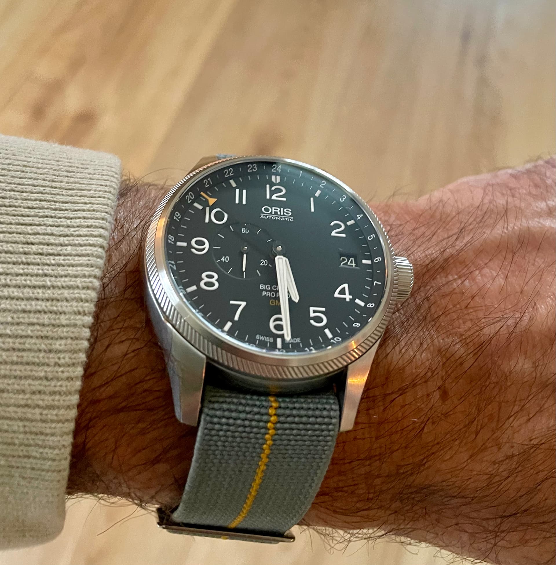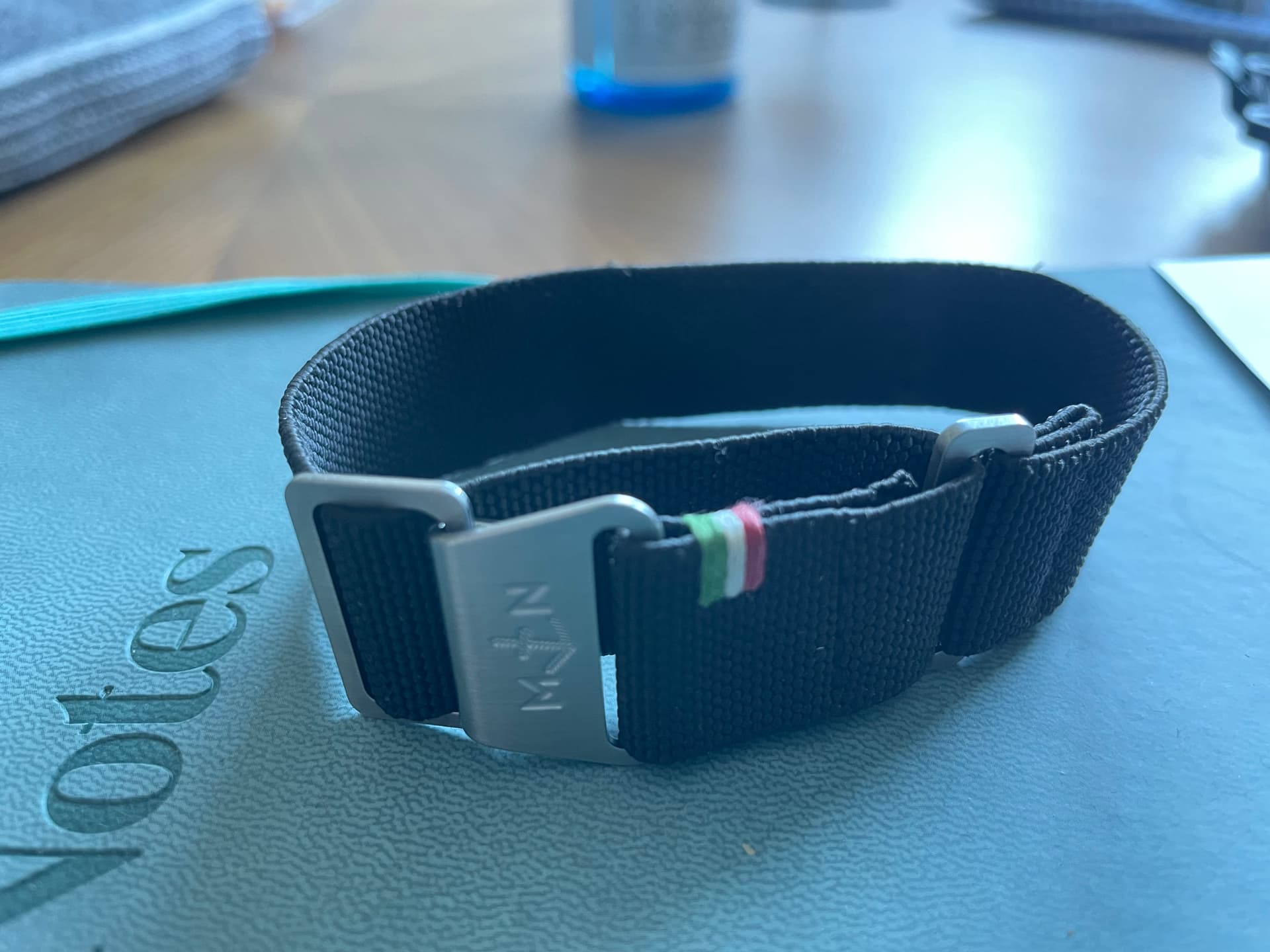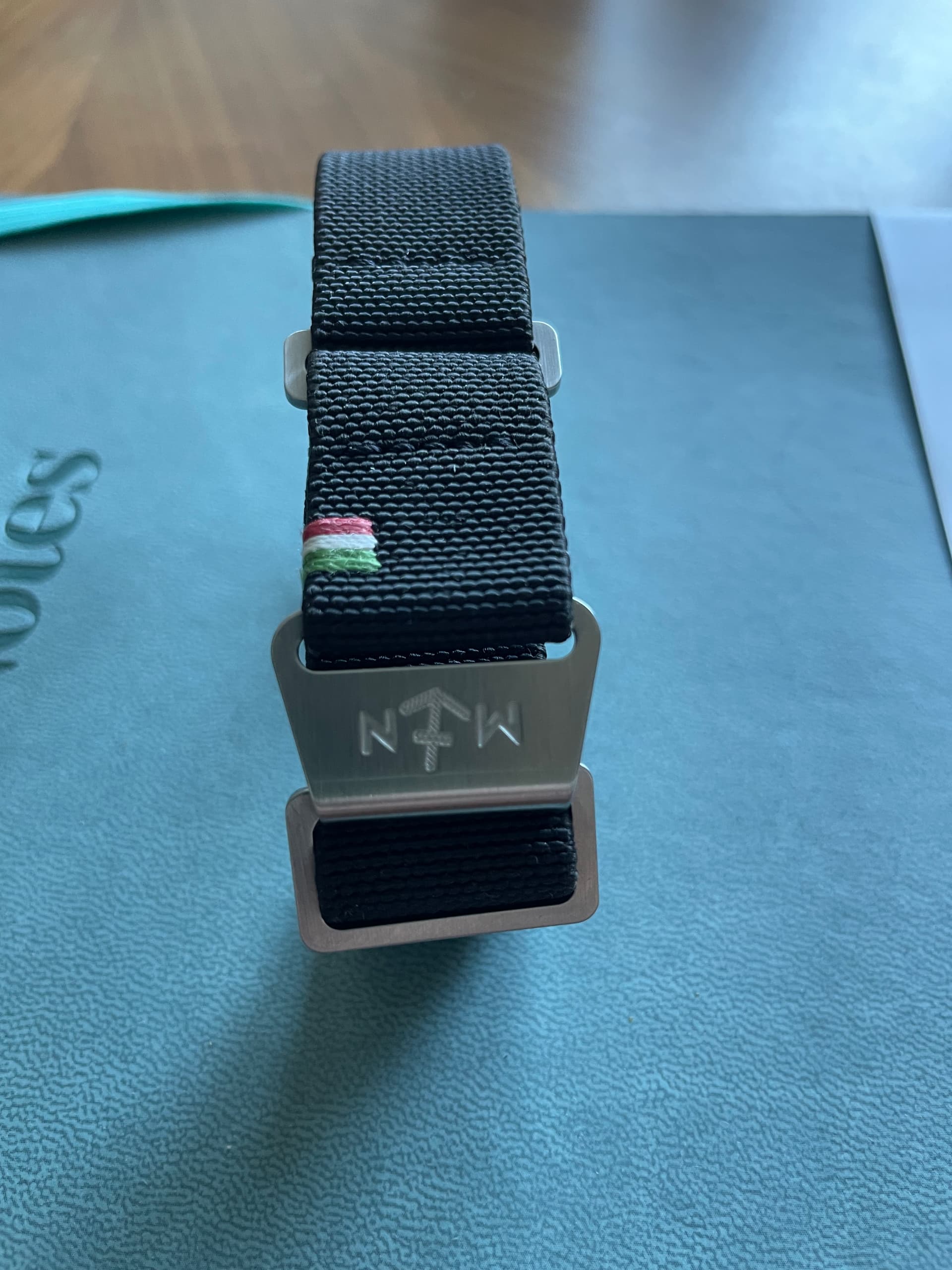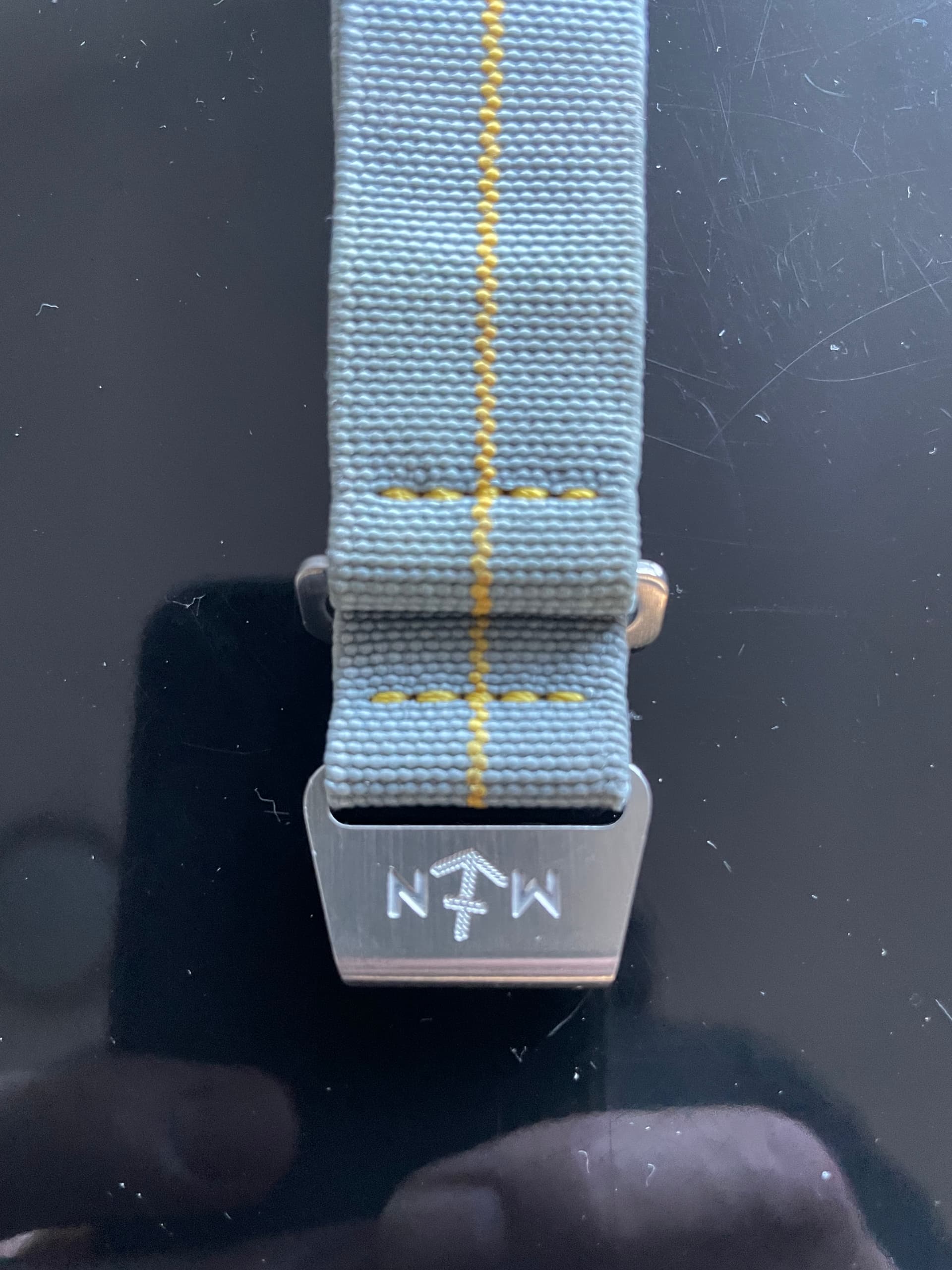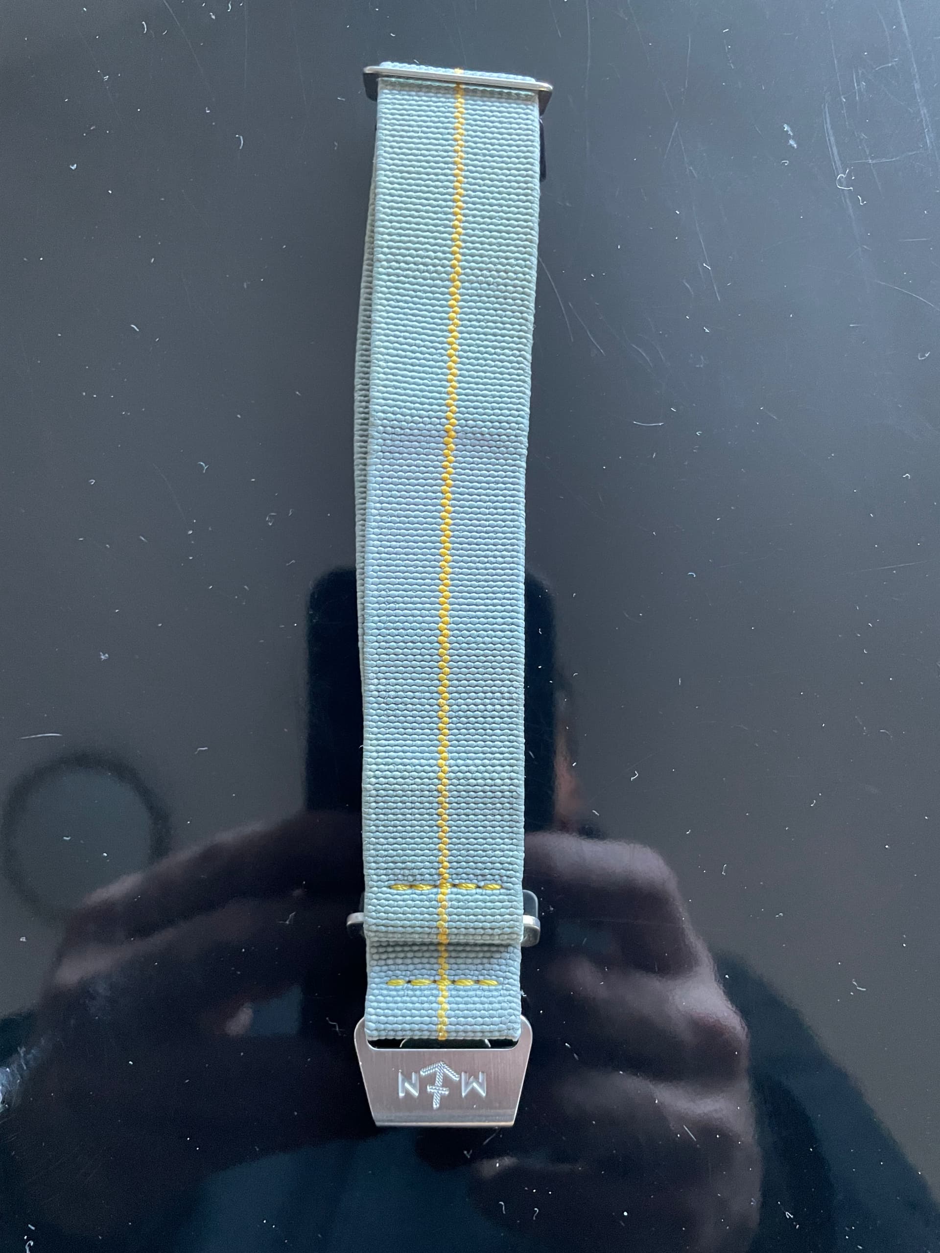 1 zwart met een Italiaans vlaggetje, mag weg voor 35 euro. 20 mm, pols 19 cm 1 grijs, met geel / mosterd baan, mag weg voor 45 euro. 22 mm, pols 19 cm