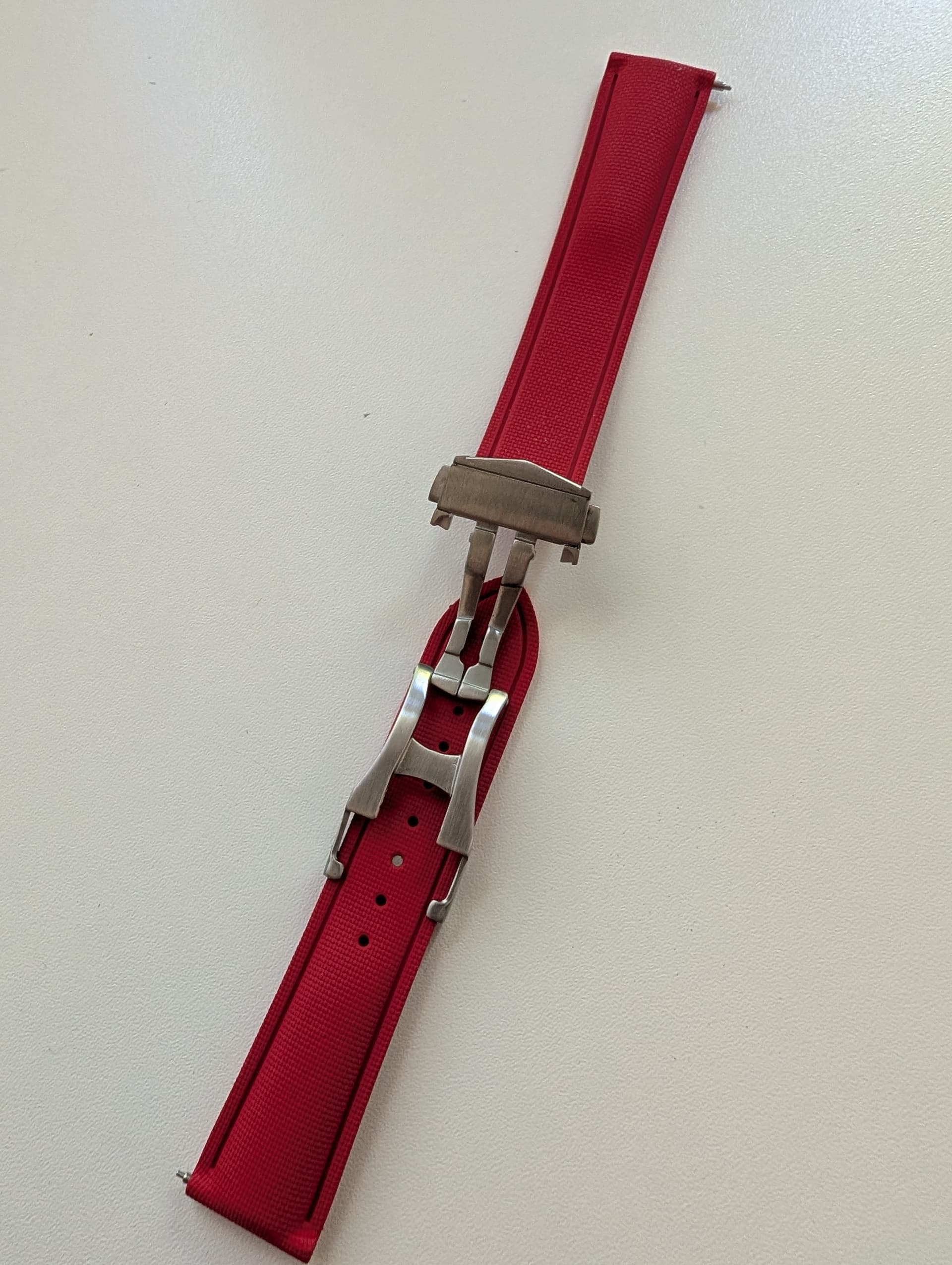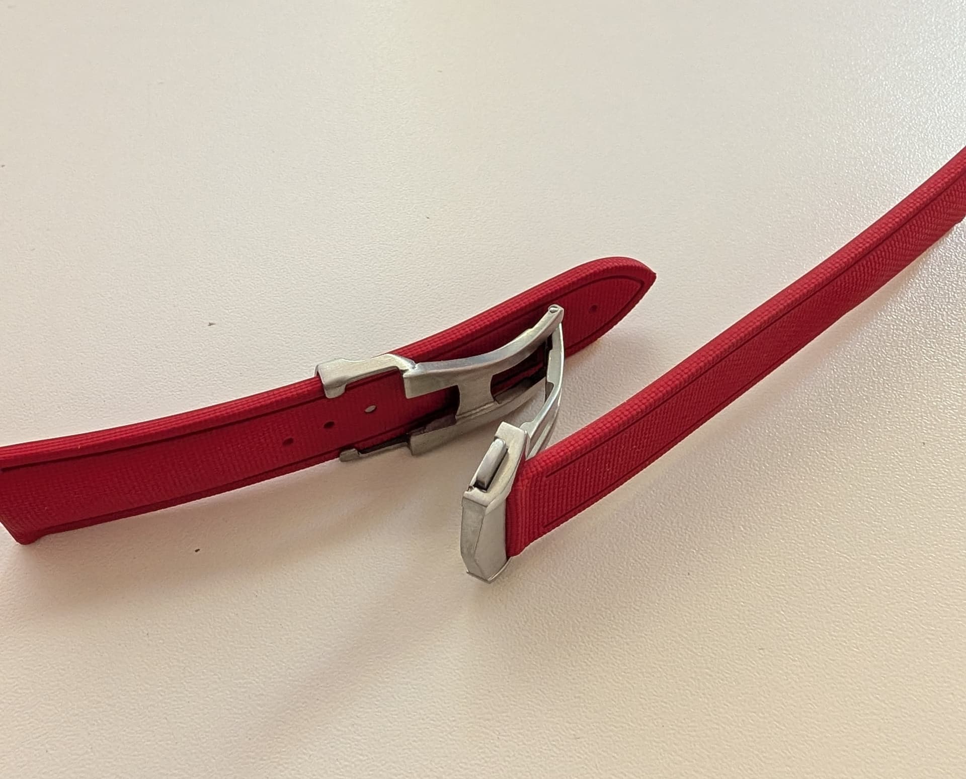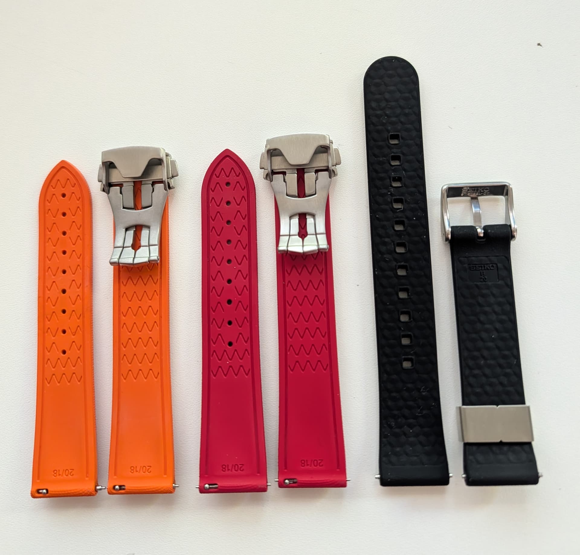 1x oranje en 1x rood FKM rubber met zeer degelijke vouwsluiting 1x zwart Seiko rubber