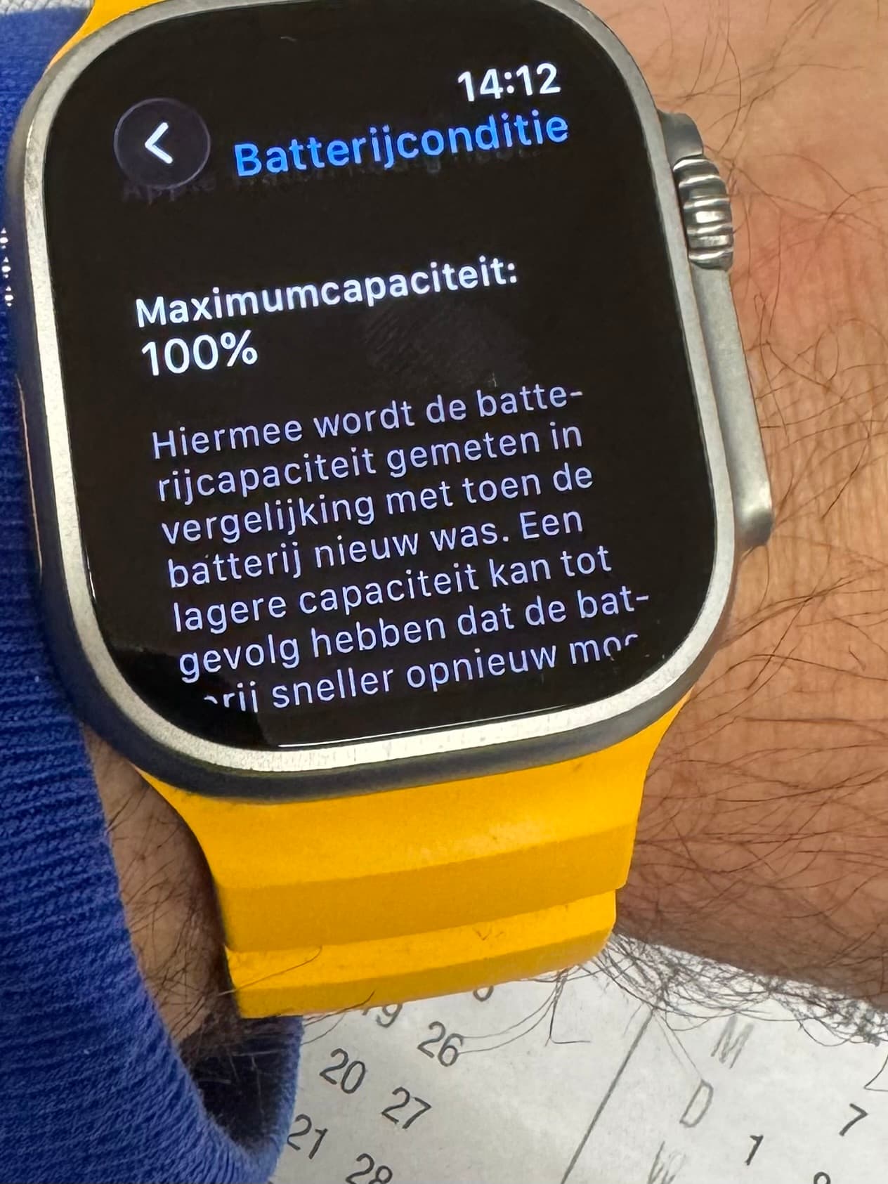 Originele doos en/of eventuele accessoires: doos, alpine band blauw, magnetische laadkabel, nomad band geel, titanium (after-market) milanaise band, en nog een stuk of 8 verschillende (niet-apple) banden in diverse kleuren en soorten. Ik heb ook een 22mm adapterset om reguliere banden te gebruiken.