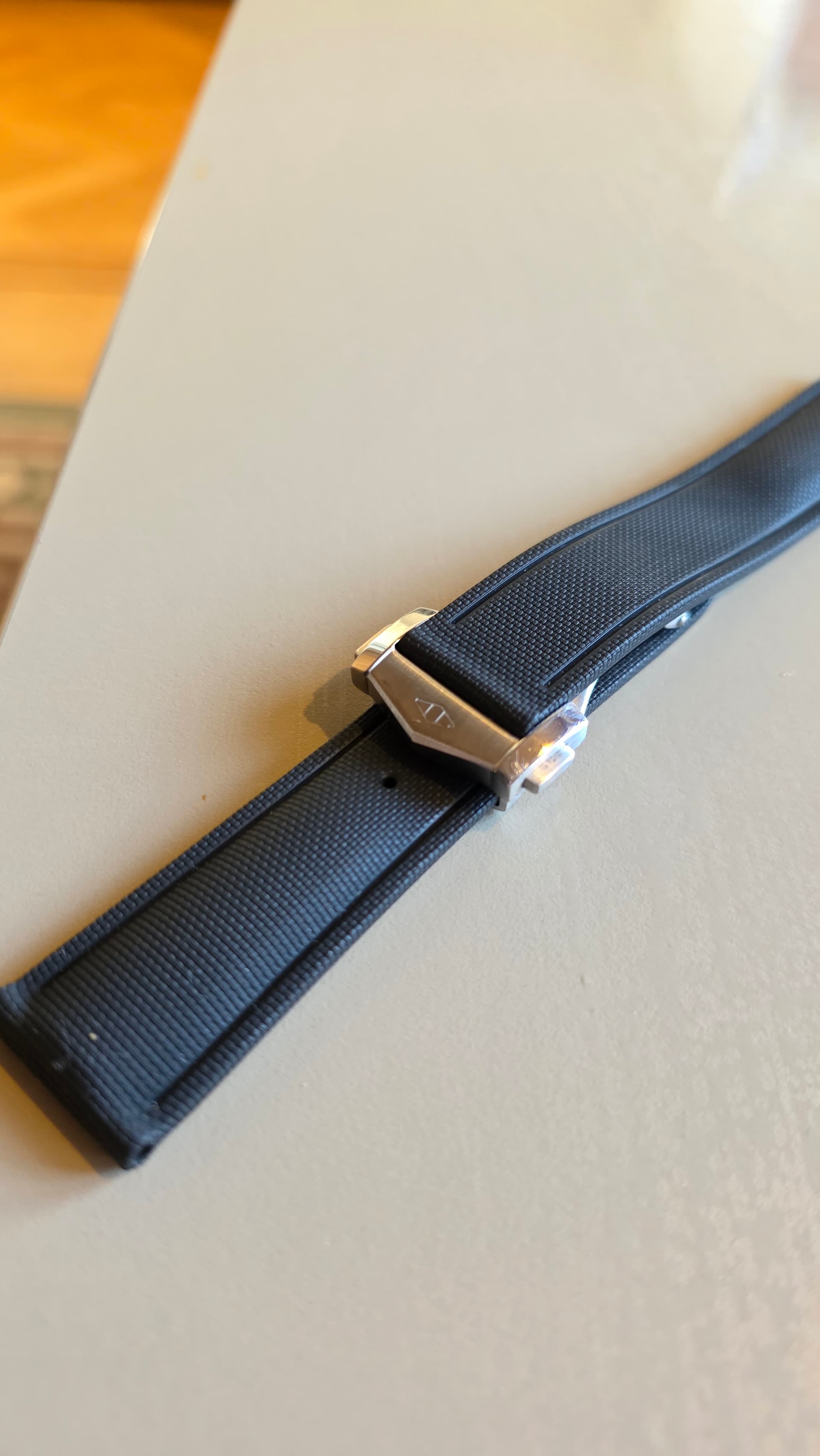 Zwarte rubberen (merkloos) band (20mm) in principe niet meegeleverd, maar is wel bespreekbaar.