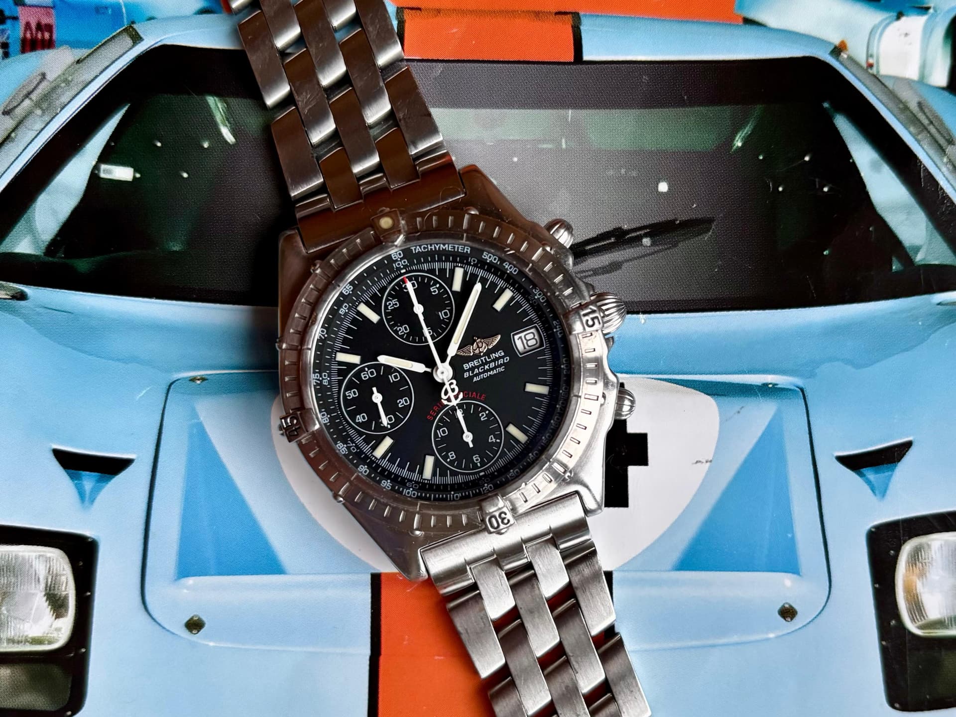 Te koop deze prachtige 100% originele Breitling Chronomat Serie Speciale Blackbird ref. A13050.1 uit begin 2000’s ik heb hem ergens sinds 2023 of begin 2024.