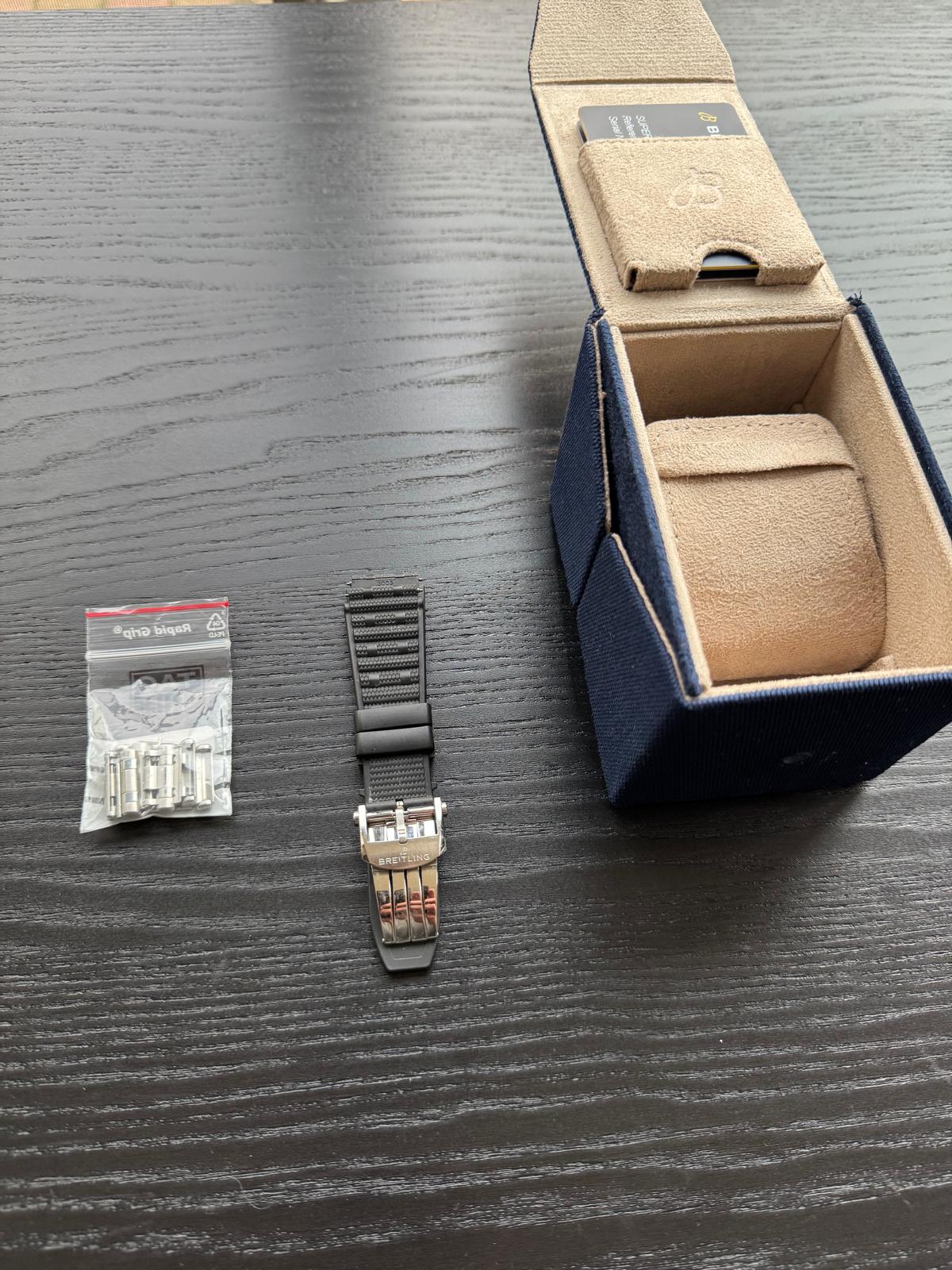 Het horloge is gekocht bij een bekende grijze dealer, volledig geregistreerd bij Breitling en daarmee ook onder officiële Breitling garantie tot april 2027. Je koopt dus met volledige zekerheid en garantieondersteuning via Breitling zelf.