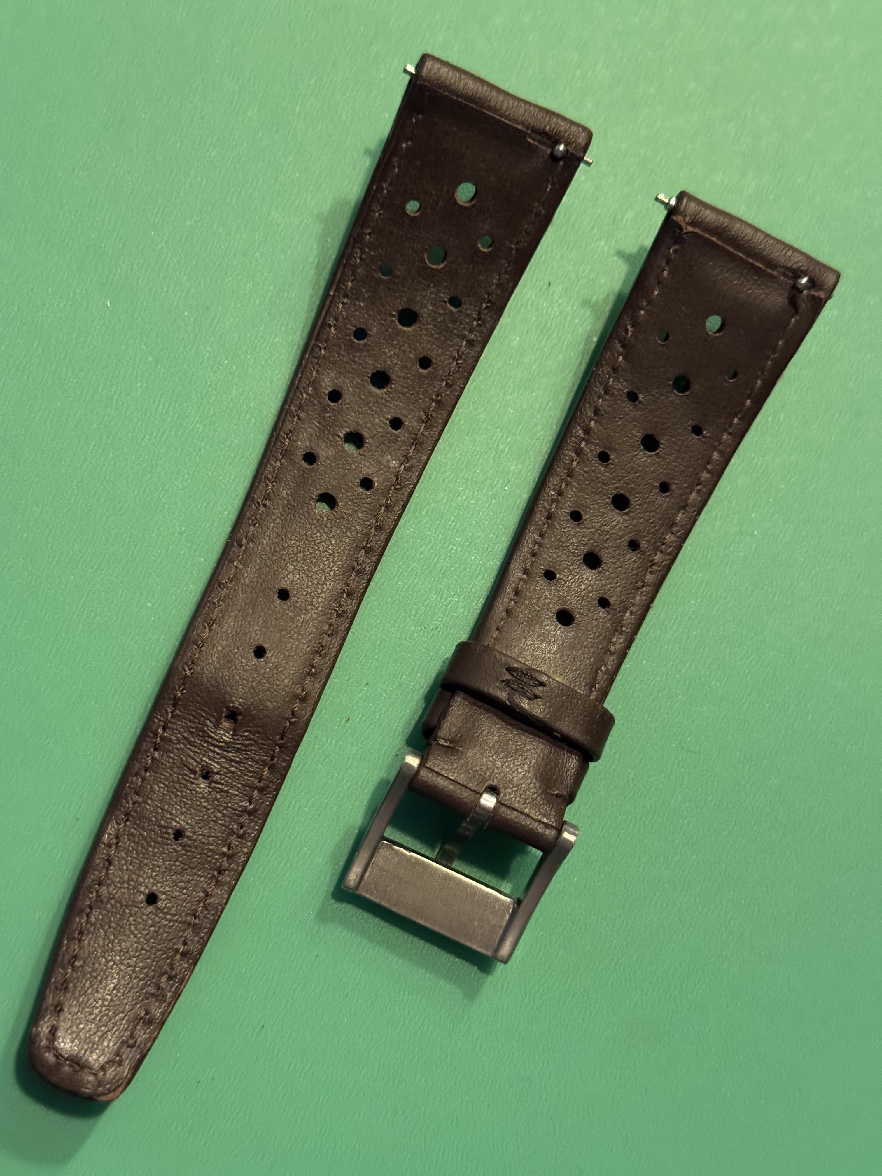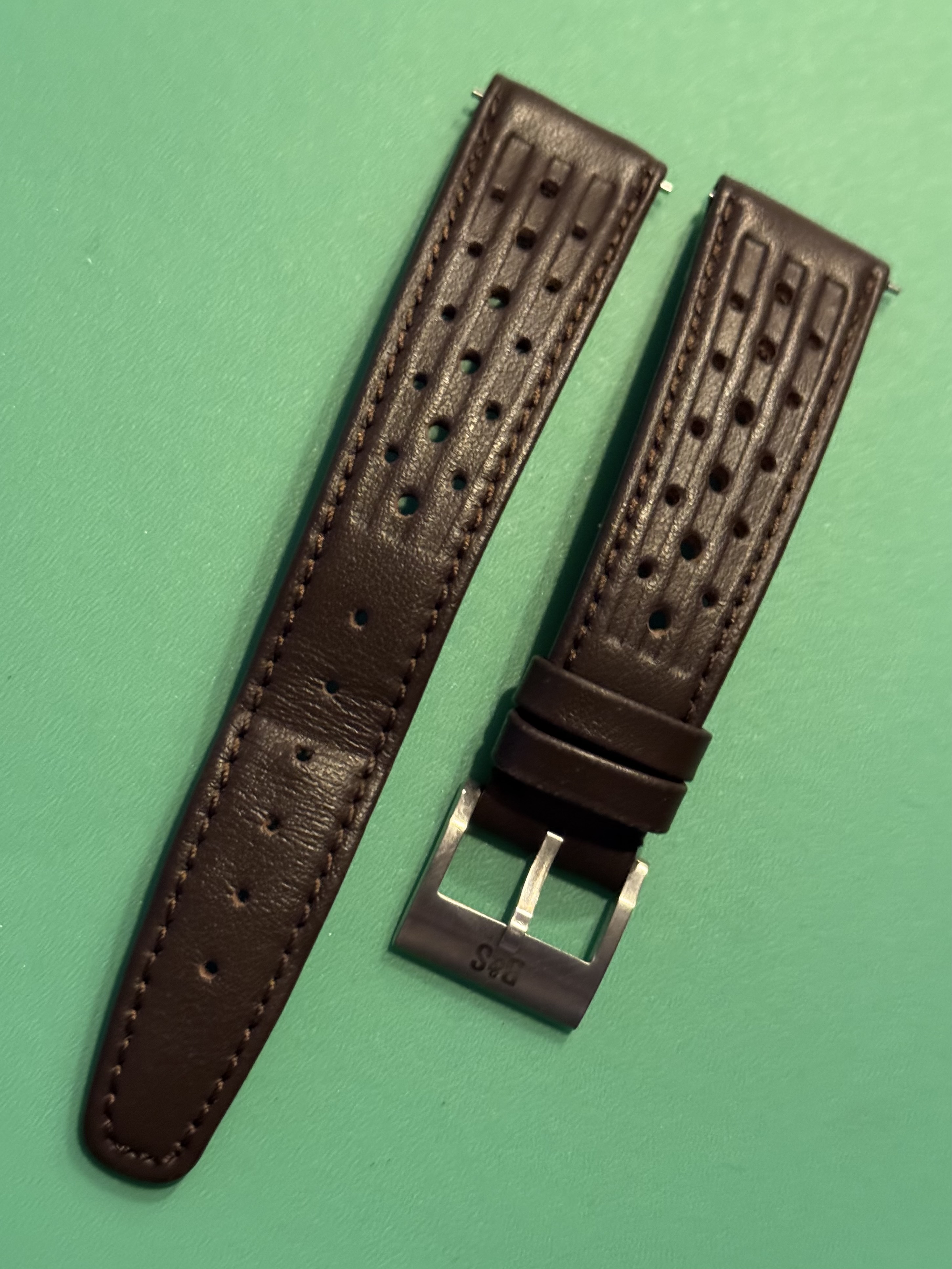 Racing Dark Brown Speedy Leather Watch Strap voor de Speedmaster Professional van Bulang & Sons te koop. 20mm bandaanzet, 115/75mm lengte, quick release springbars. Vraagprijs €80.