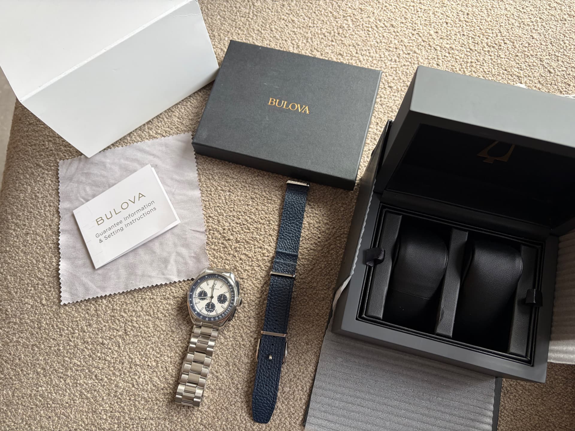 Merk en model: Bulova Lunar Pilot 98K112 zilver/blauw