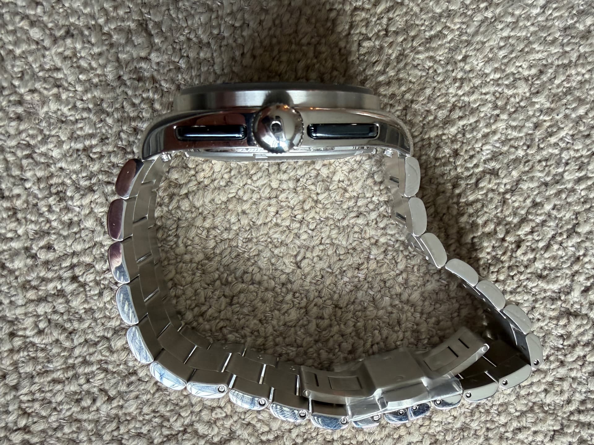 Conditie (krassen, werking etc): Nieuw, 2 dagen gedragen op leer. Stalen band in de folie op volle lengte