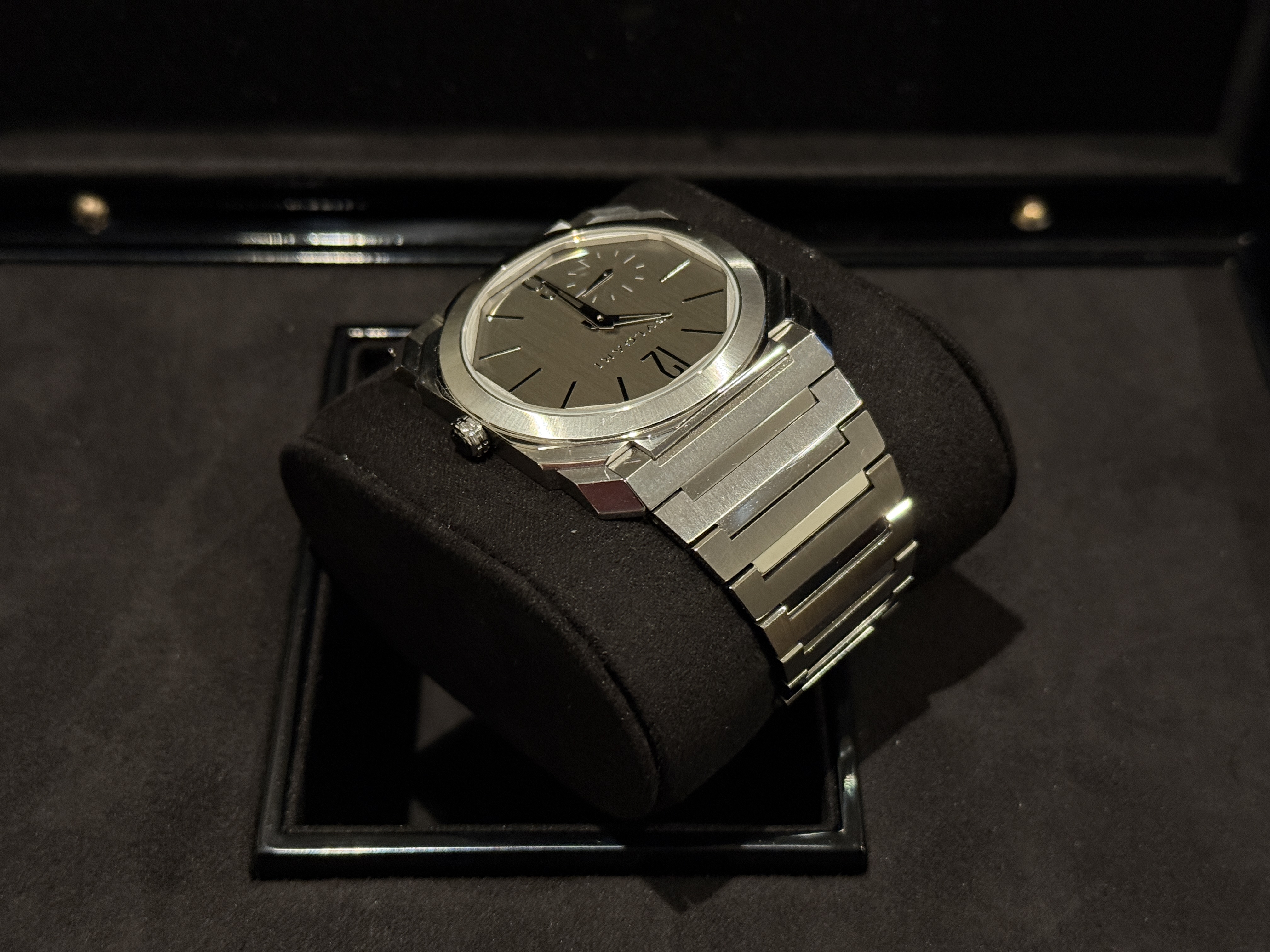 Ik ben de eerste eigenaar en heb de Octo Finissimo zelf bij Ace in Amsterdam gekocht, eind 2023. Draagsporen zijn er nauwelijks, hij is echt mint. Vanzelfsprekend is alles compleet.