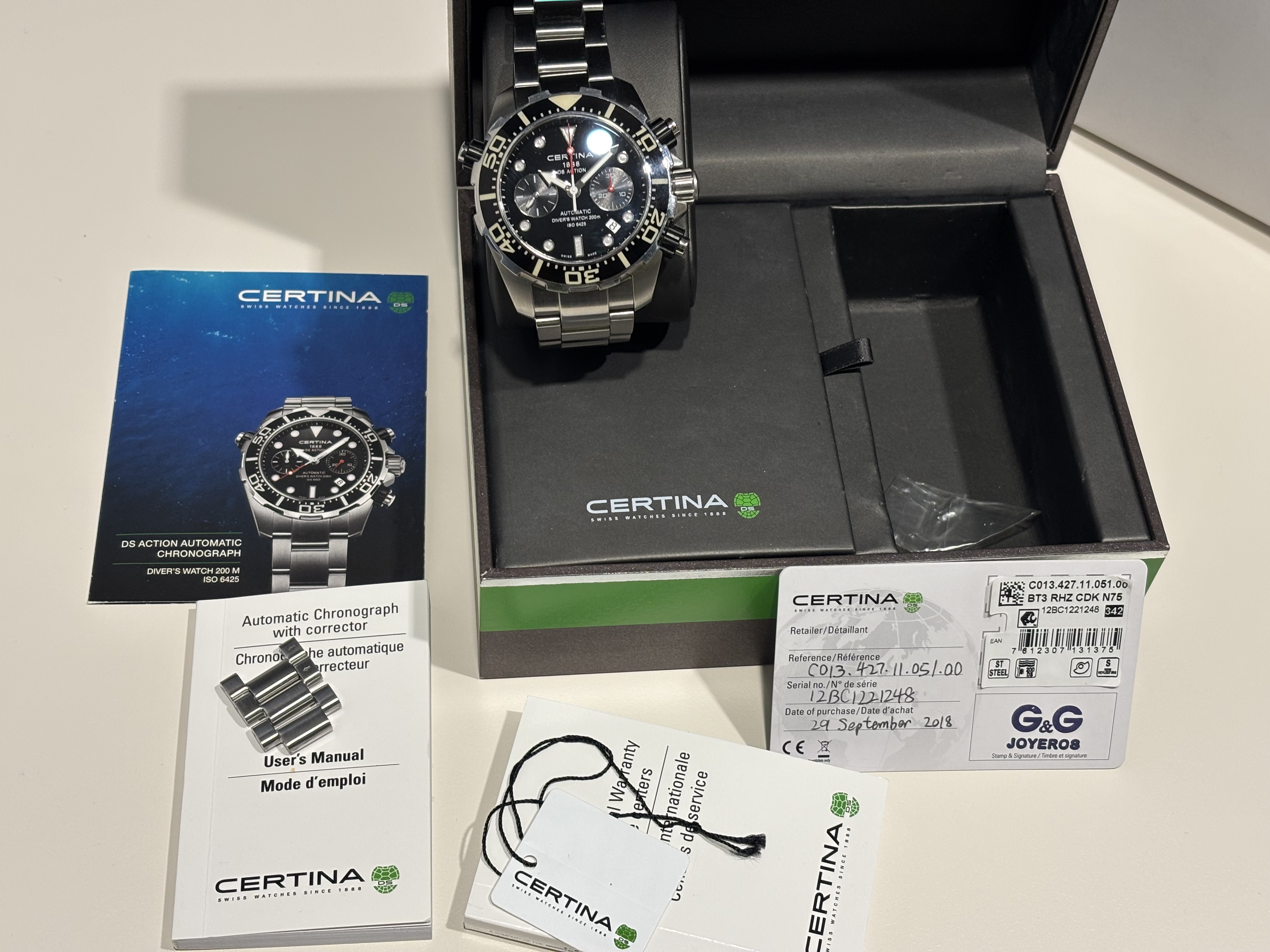 Merk en model: Certina DS Action diver. Typenummer:C013.427.11.051.00