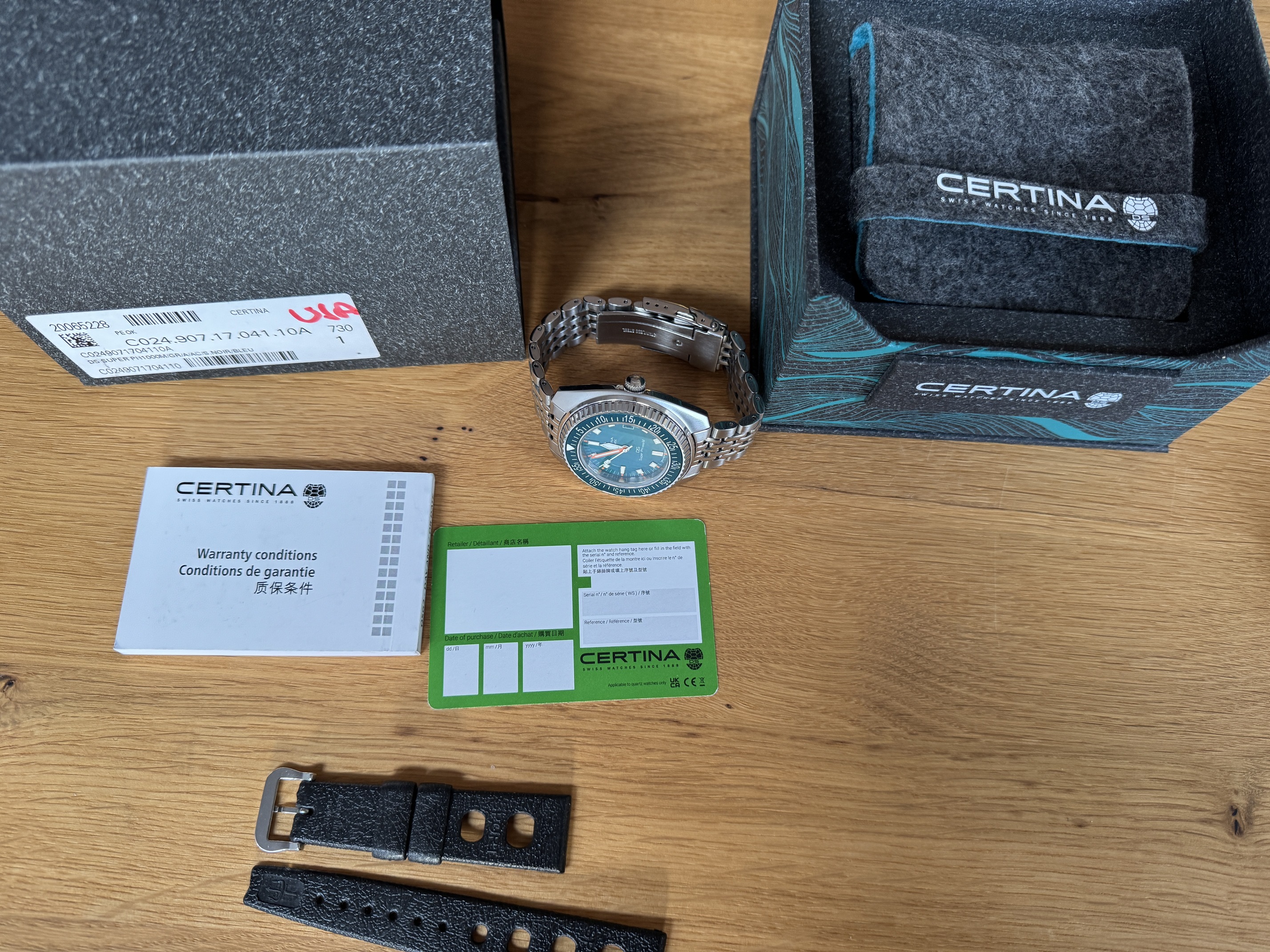 Originele doos en/of eventuele accessoires: ja, met extra BoR band van Uncle (is eigenlijk voor een SMP300 maar past perfect) en een vintage stijl duiker rubberband. De originele rubberband zit er niet meer bij (die is zo ie zo erg slecht)
