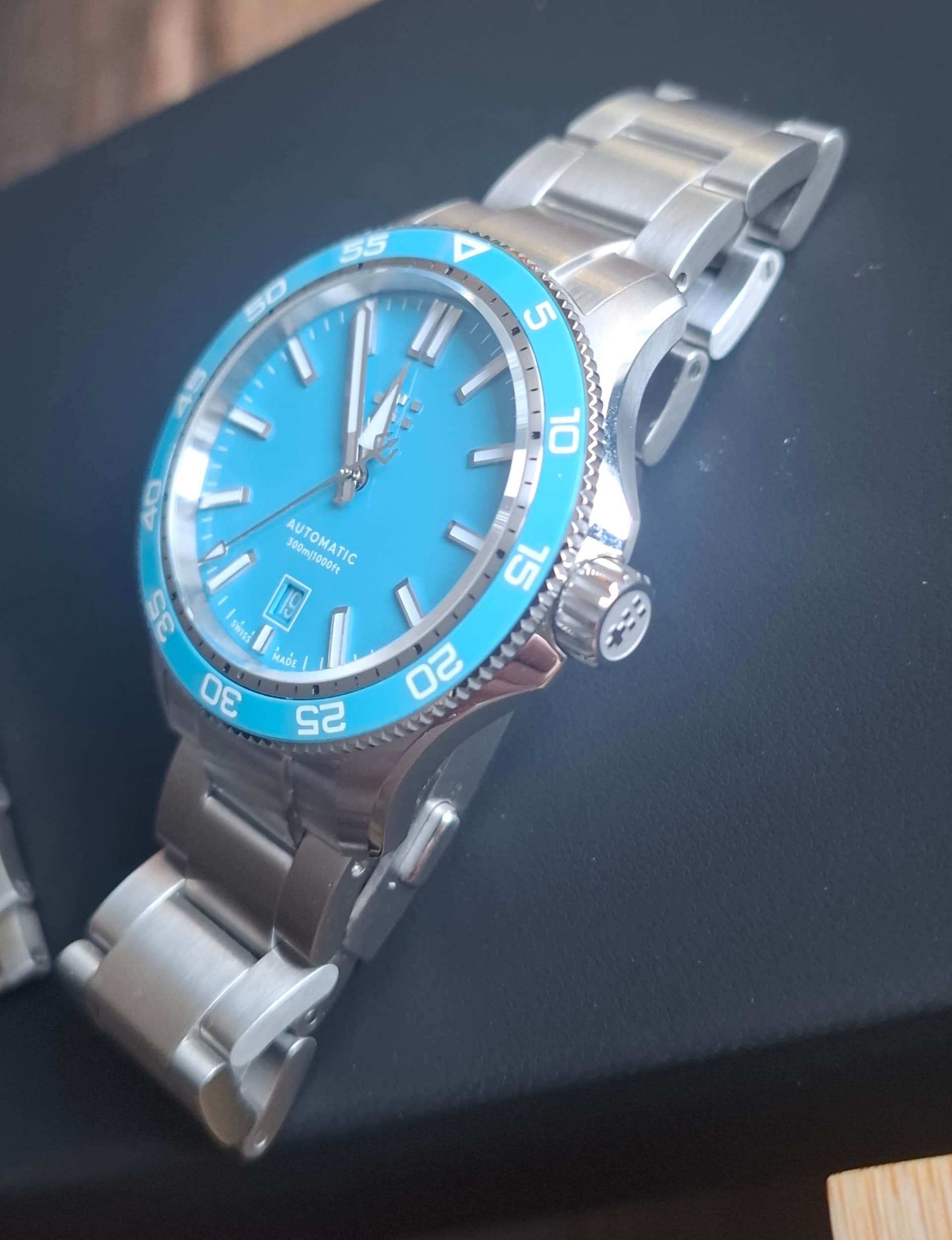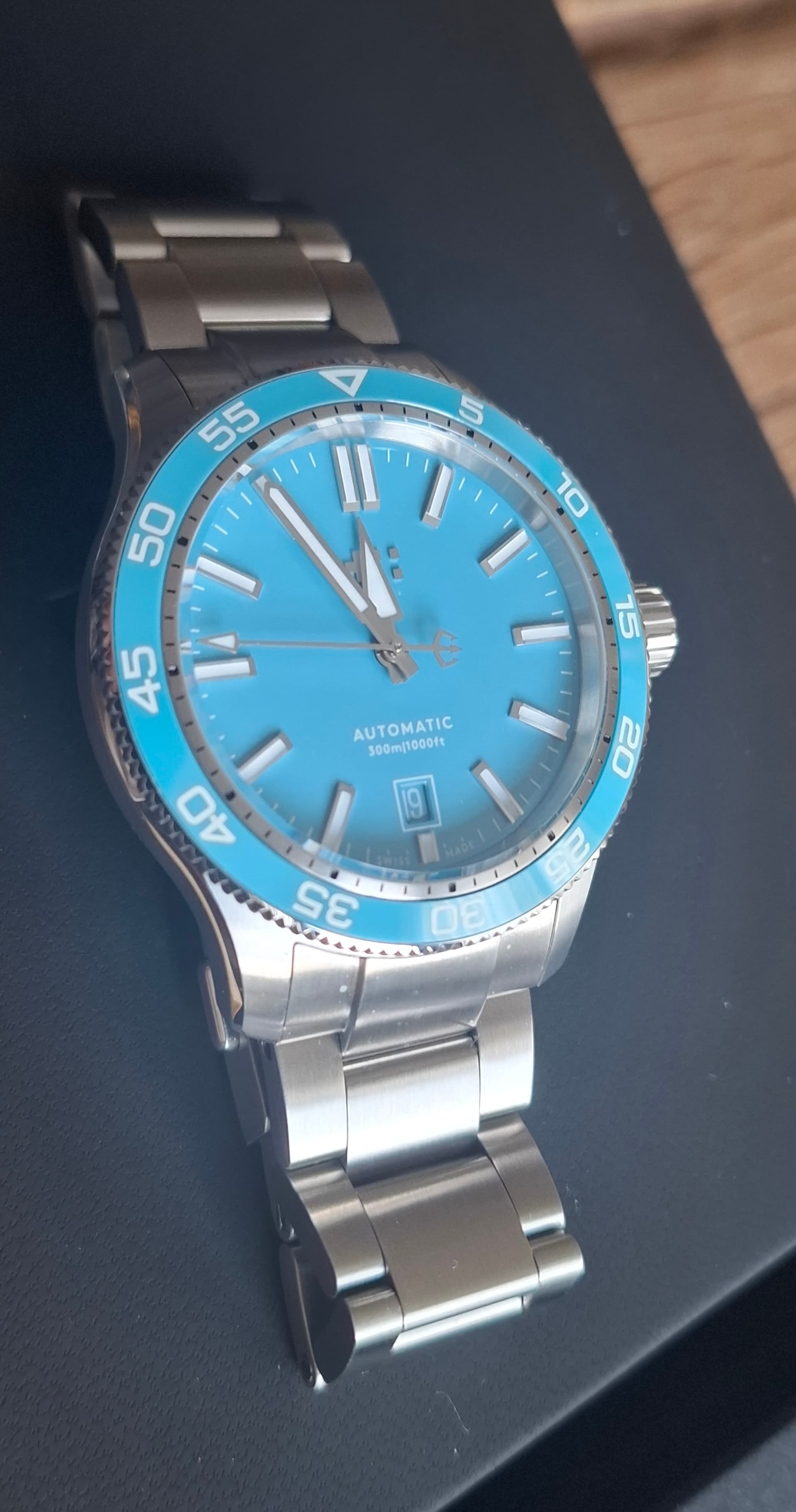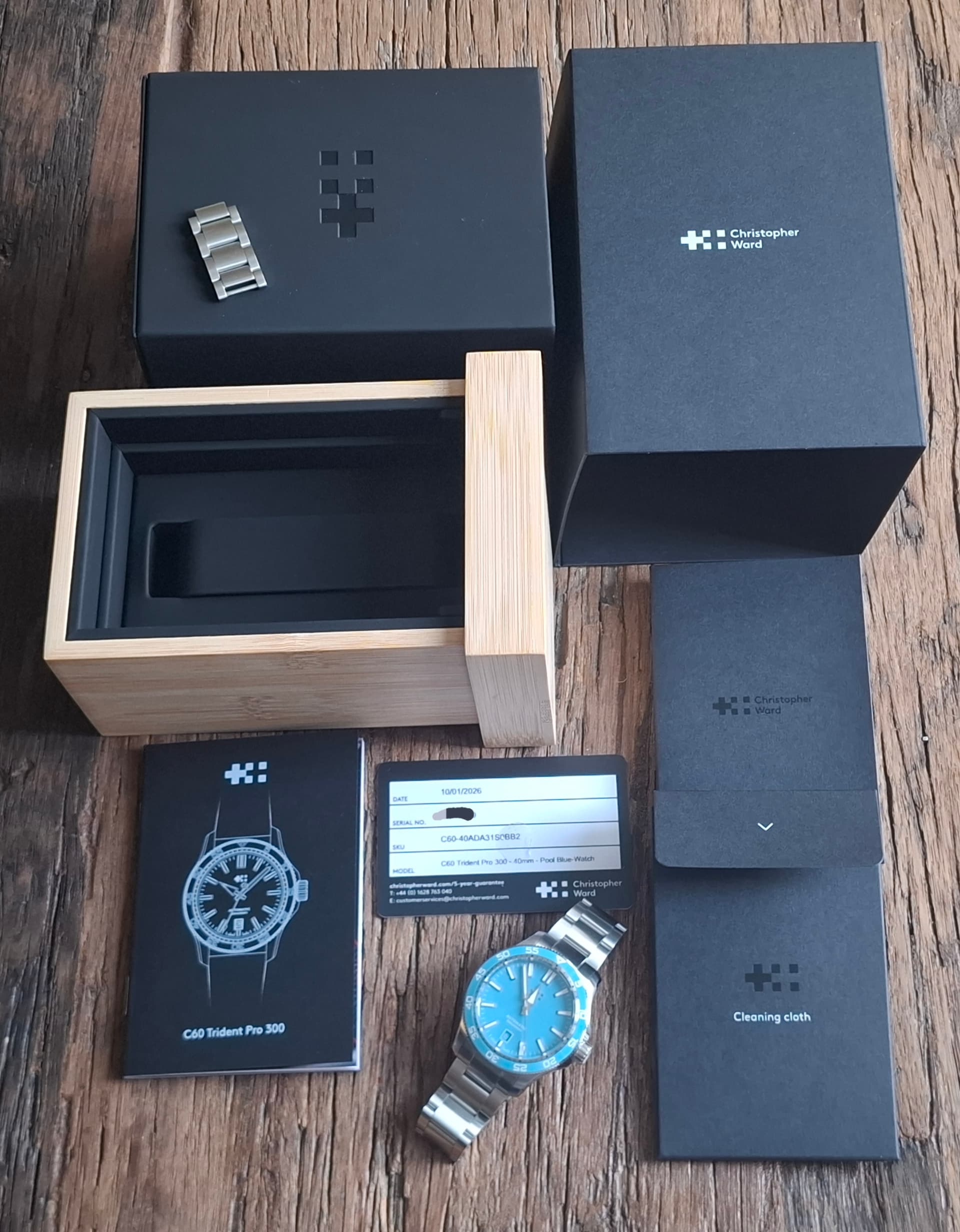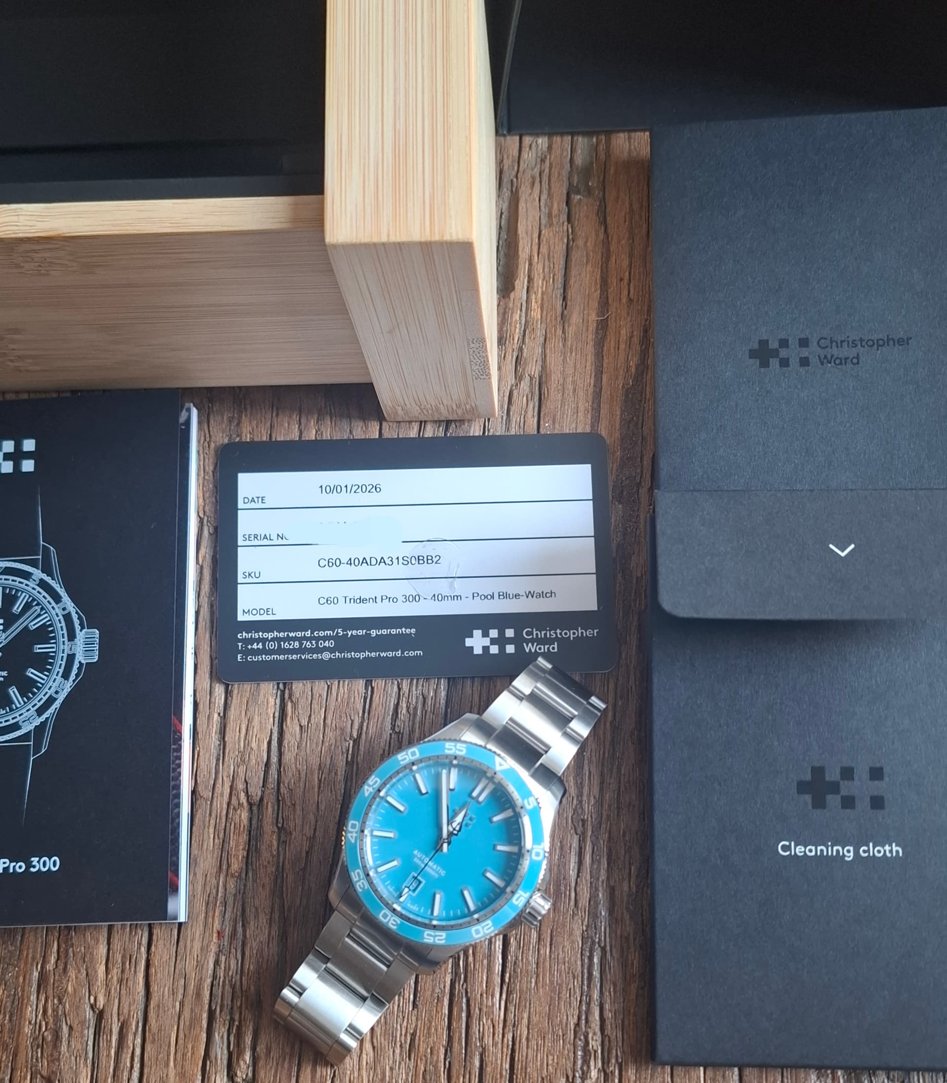 Merk en model:Christopher Ward C60 Trident Pro 300 Pool Blue.
