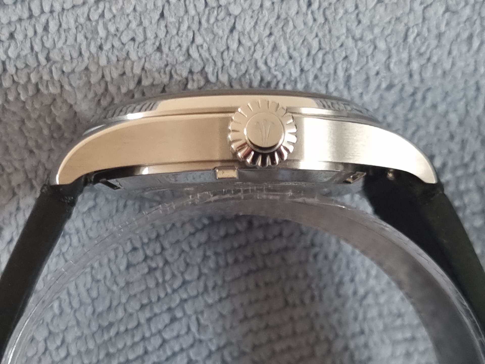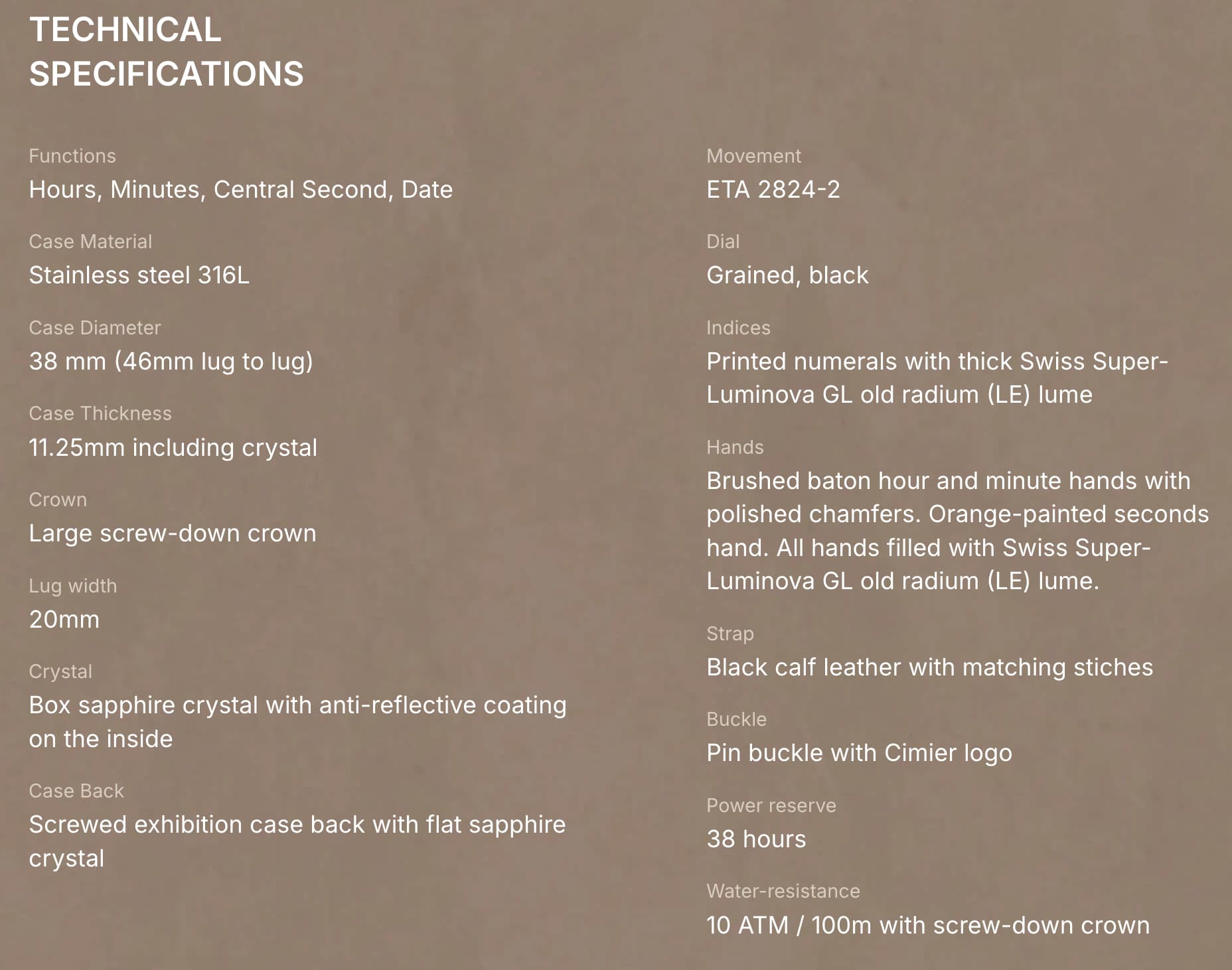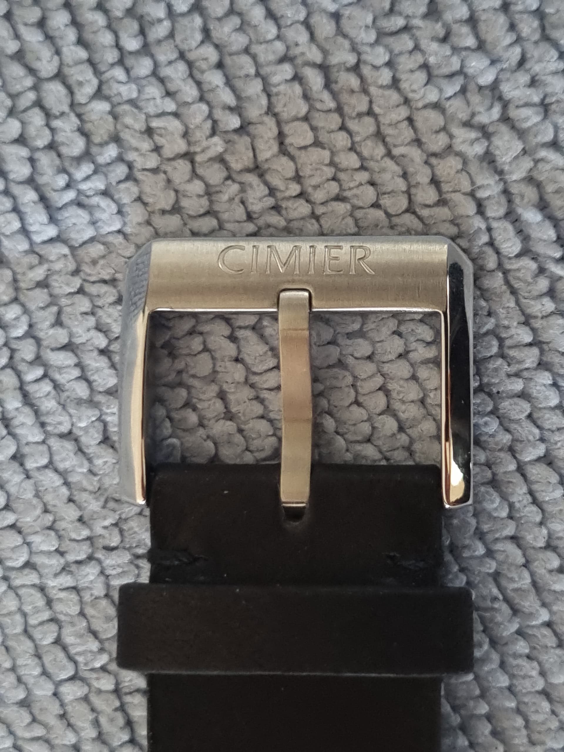 Deze mag zijn reis vervolgen binnen dit forum. Nieuwe field watch van CIMIER, een gerevitaliseerd Zwitsers merk, met mooie afmetingen, een matzwarte wijzerplaat met ZOAB look (?), donker datum veld en retro lume. Grote geschroefde en gesigneerde kroon, see through case back ongebruikte zwarte vintage-achtige band. Ik kwam hem tegen op Monochrome