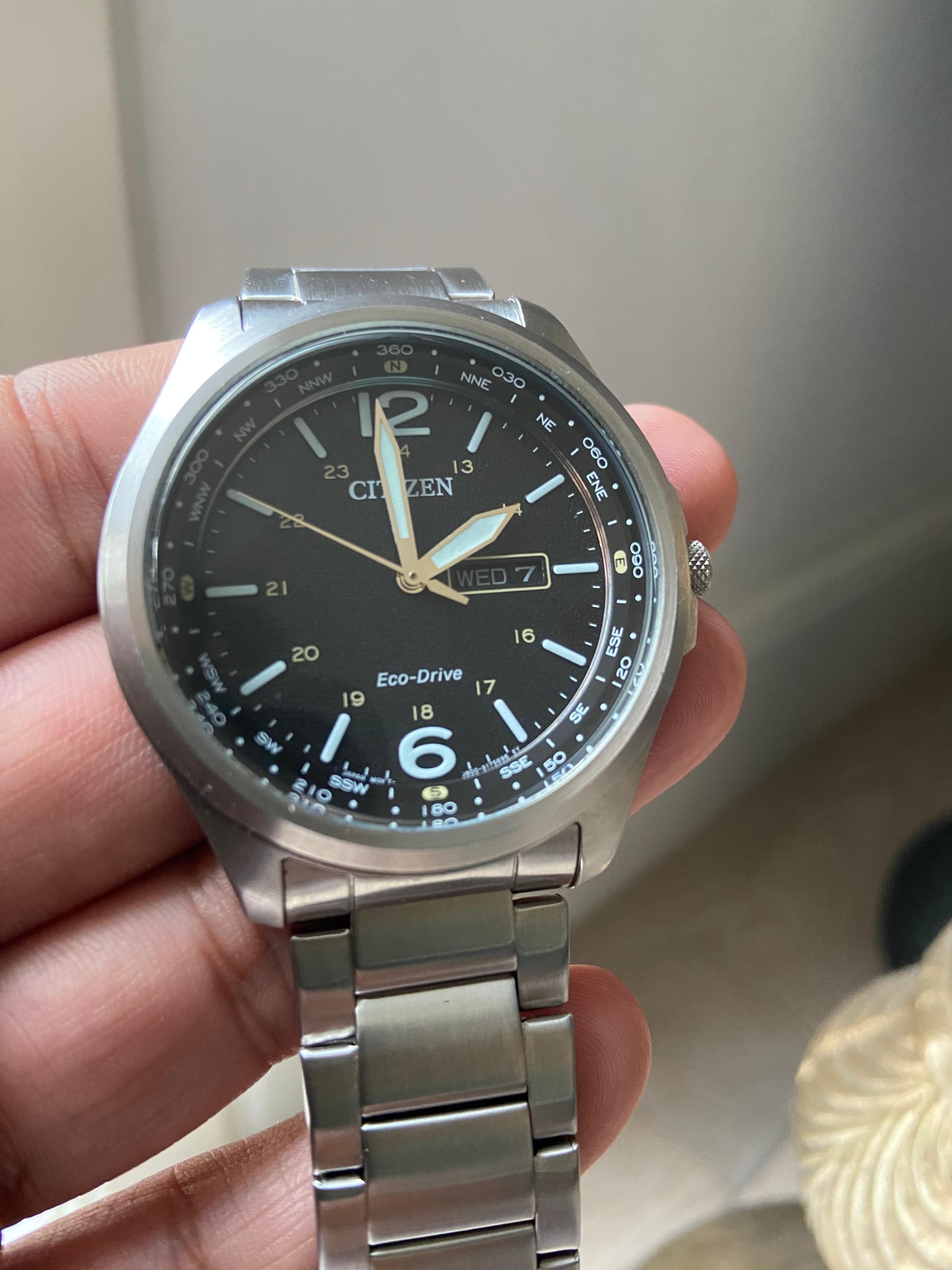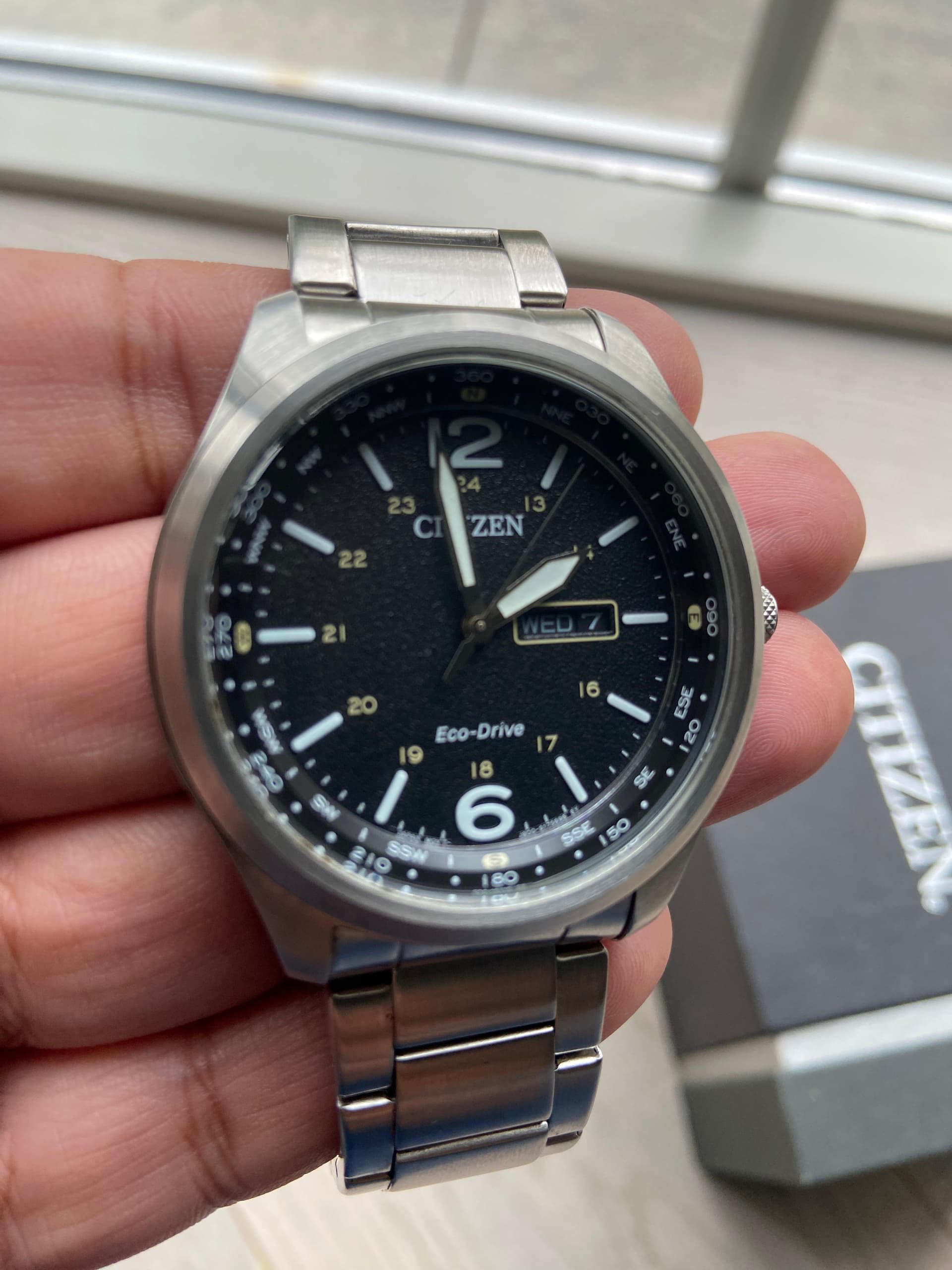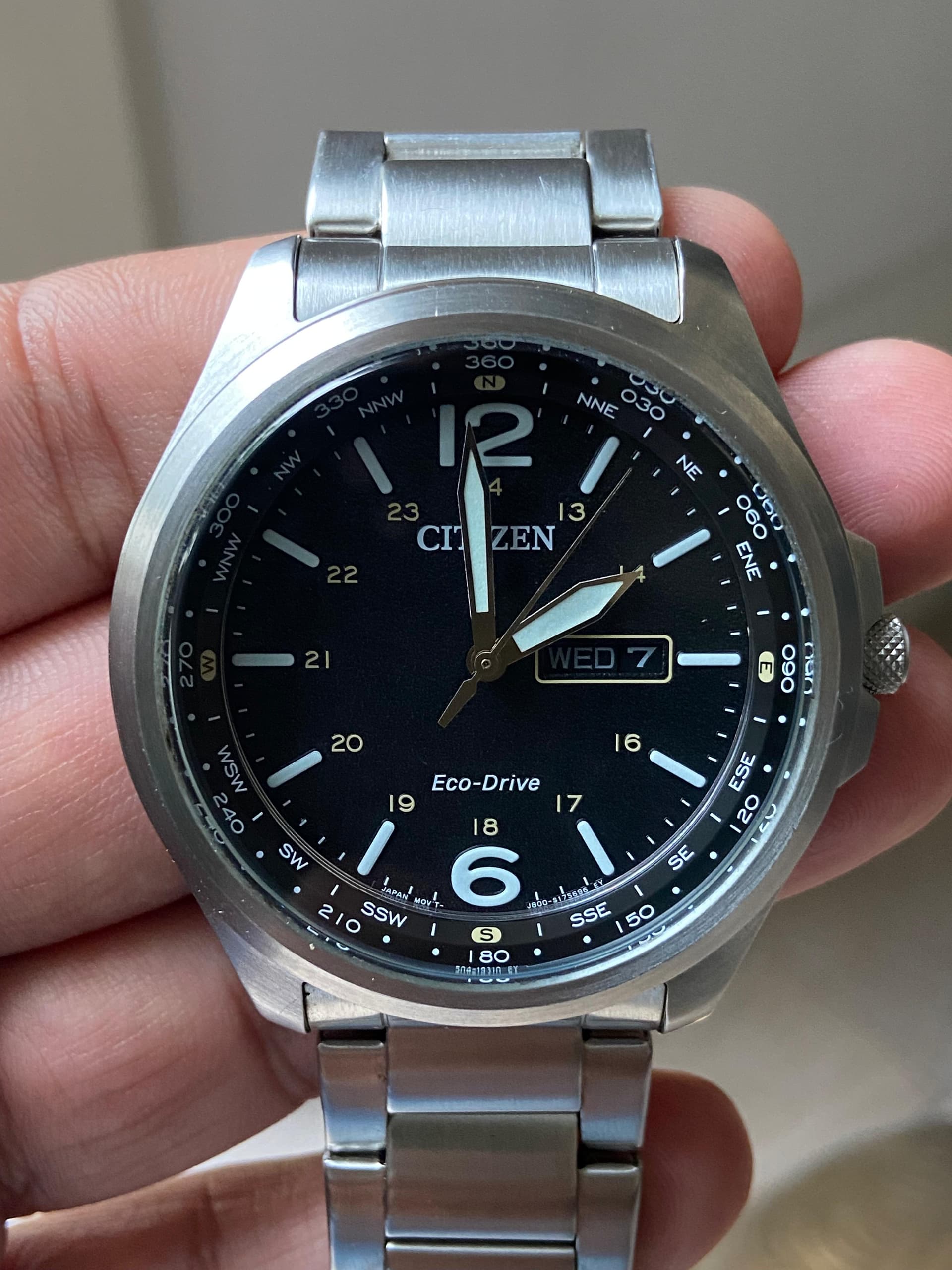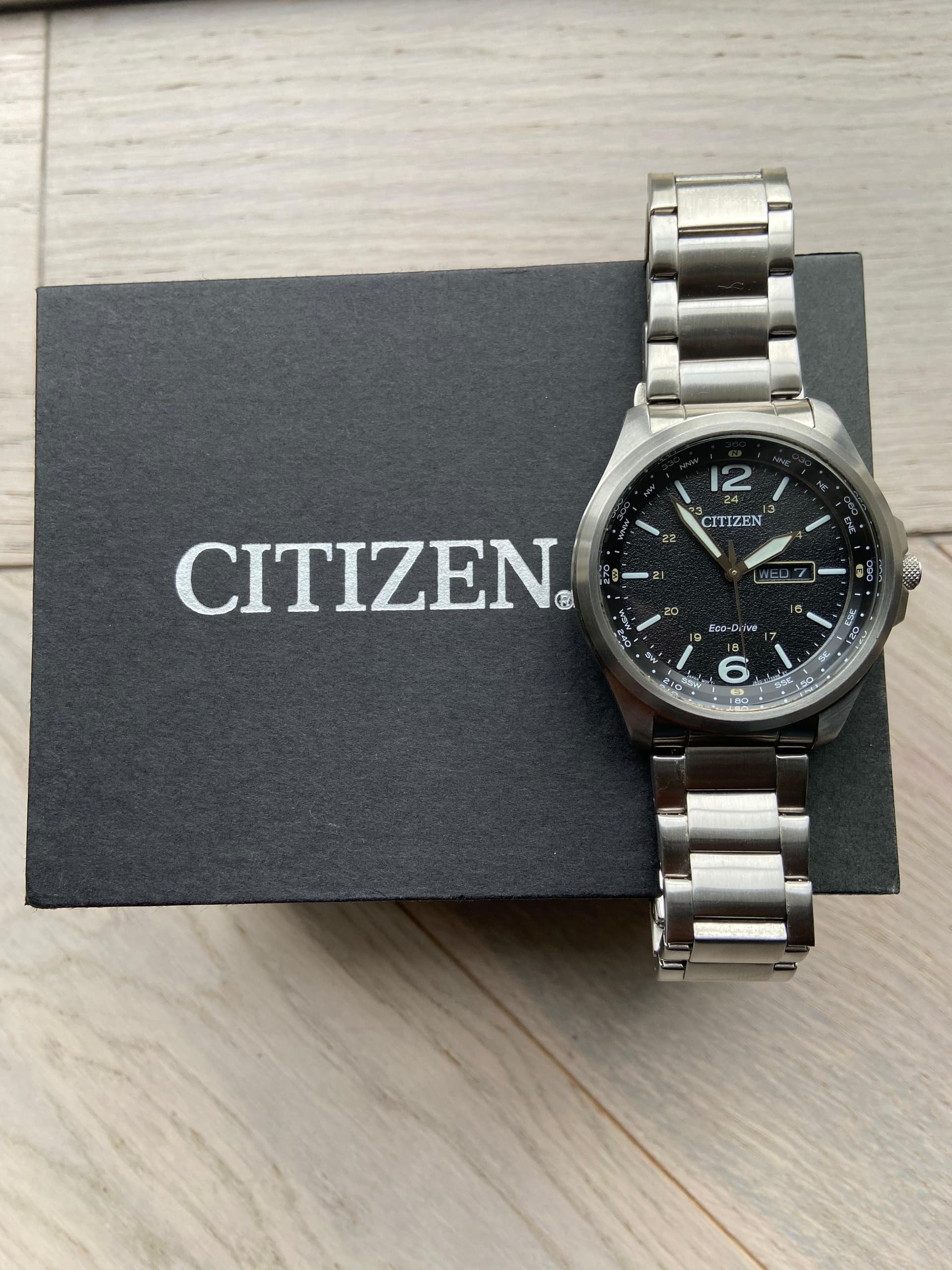 Te koop Citizen Eco-Drive herenhorloge met militaire tijdschaal. Dit horloge heeft een eco-drive technologie (opgeladen door elke lichtbron; geen batterij nodig) het horloge heeft een kalender functie: Day-date, Solar Powered, Compass, Luminous Hands, Luminous Numbers en een gangreserve van 240 dagen.