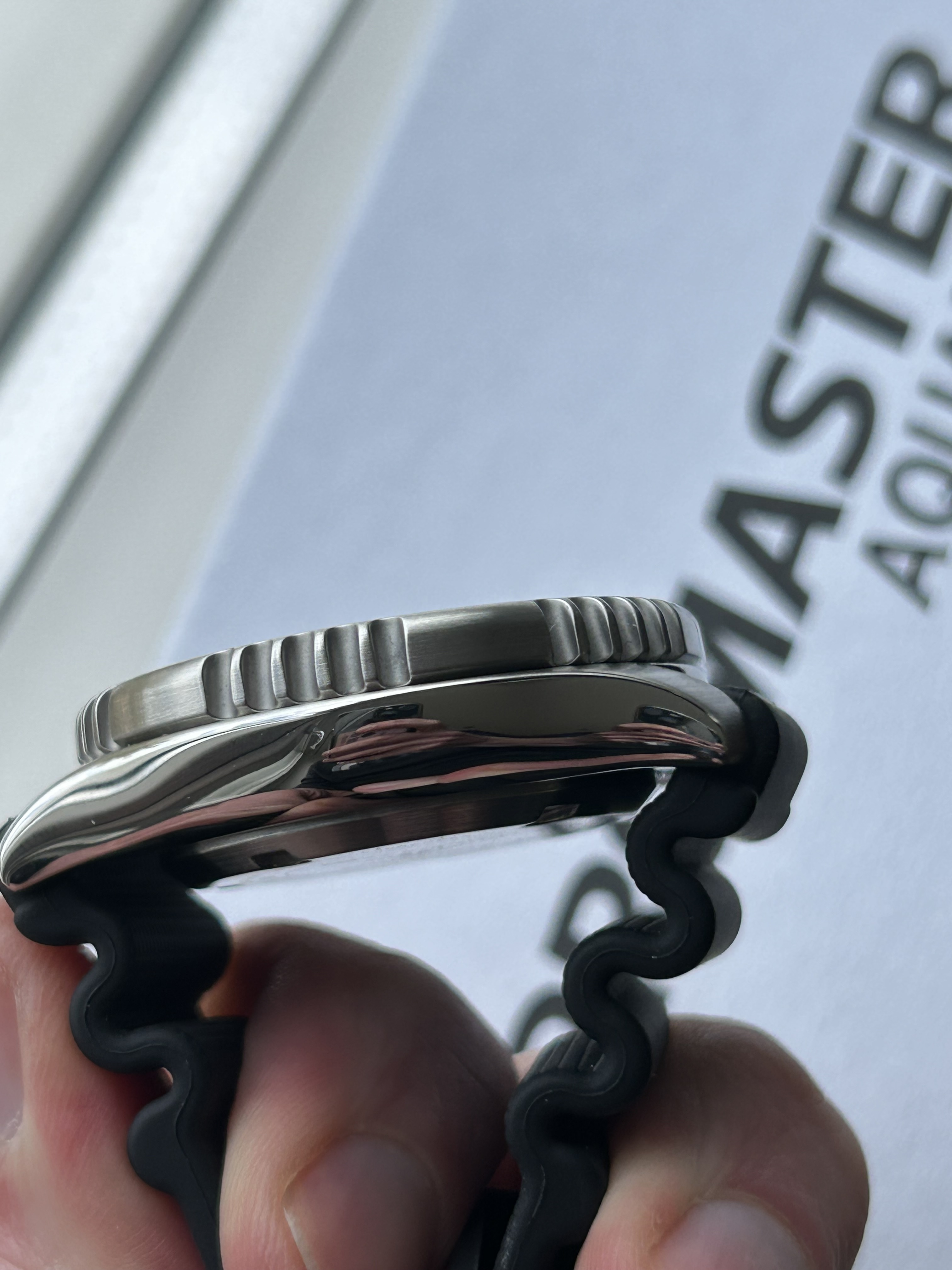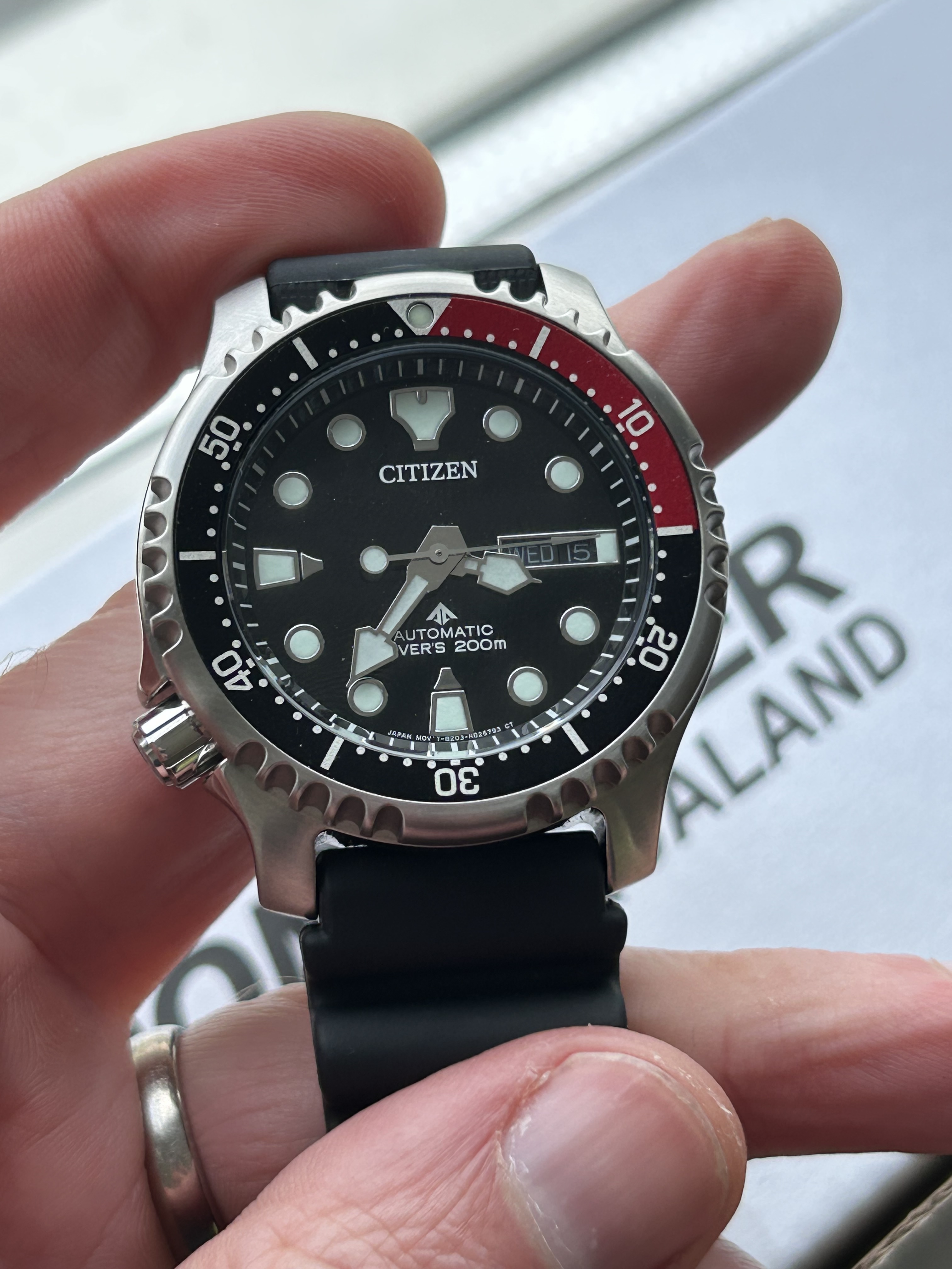 Recidive aankoop, ik vind deze rood/zwarte bezel het tofst van dit model, waarvan de afwerking echt top is voor de prijs: gepolijste en geborstelde delen, lume die de hele nacht meegaat, goede uitlijning. Maar ik wil toch echt terug naar één horloge: een Grand Seiko of een The Citizen. Daarom enkel te koop.