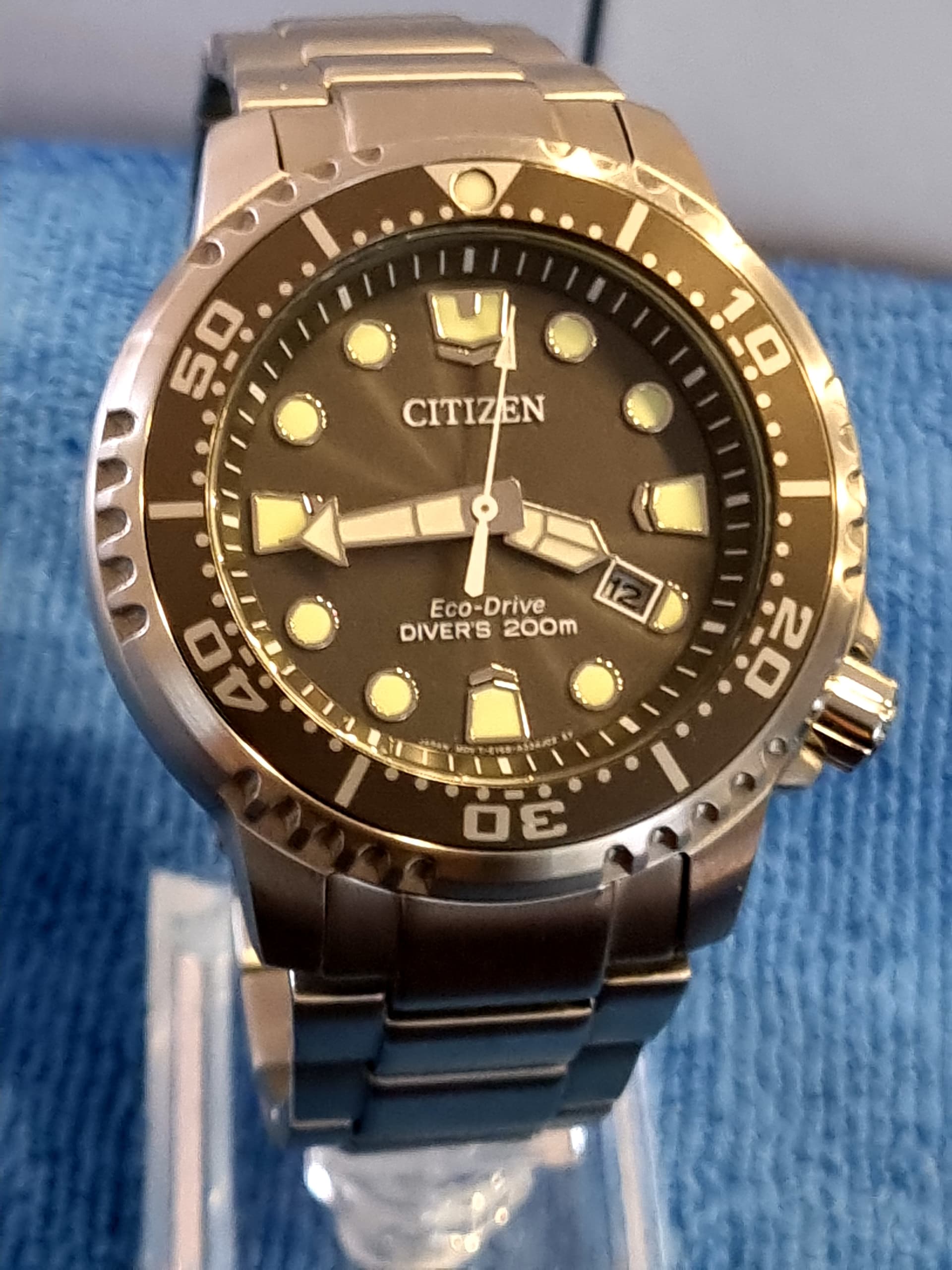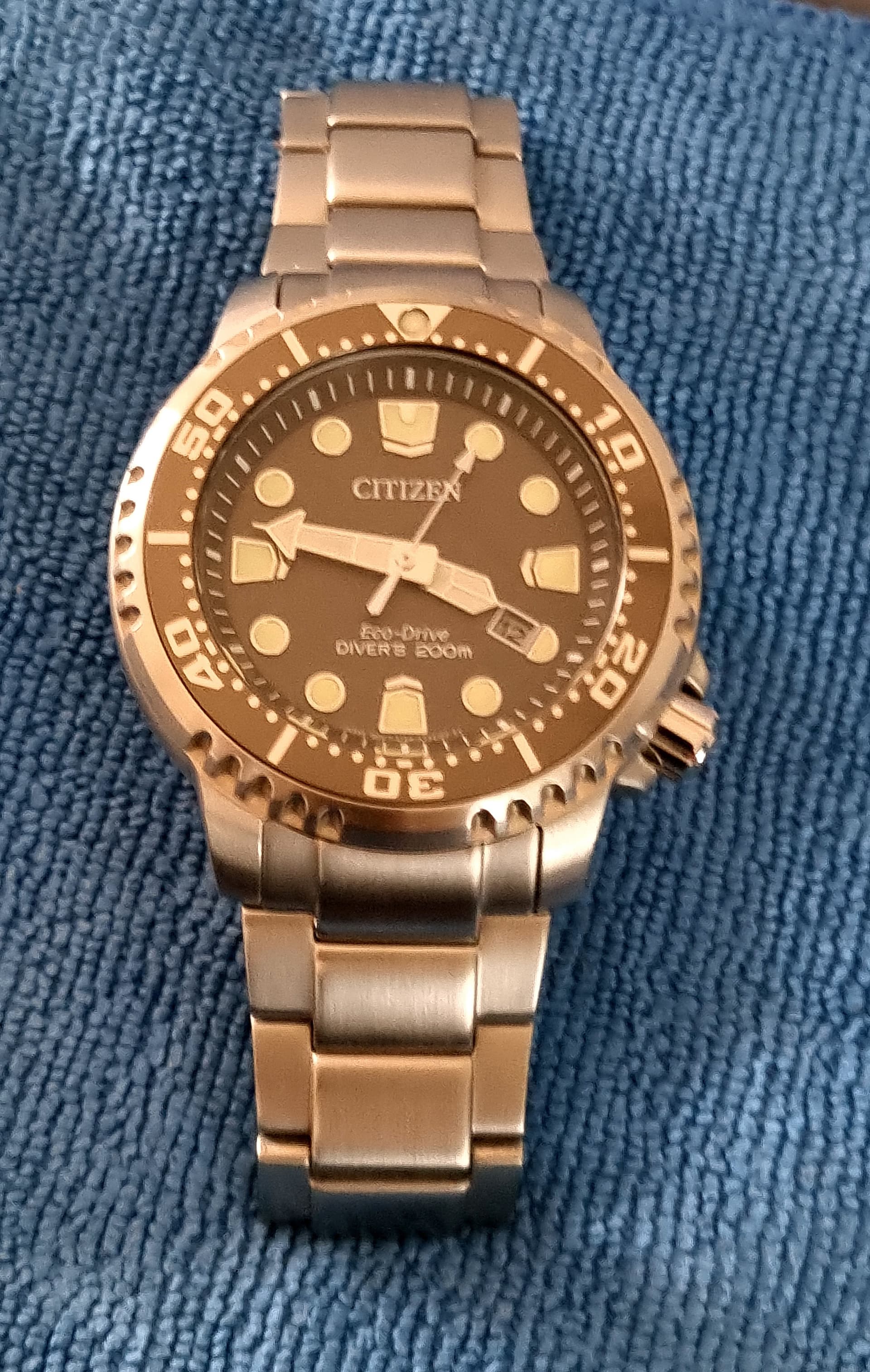 met de binnenkomst van een andere toolwatch mag deze door. JDM Promaster met de kwalitatieve bracelet en de rustige kleuren (meestal zitten er oranje accenten in/op/aan). Lichte sunburst grijze wijzerplaat en iets donkerder grijze bezel insert. Standaard dus op de bracelet met on the fly adjust (tot ruim 1 cm). Zelf geïmporteerd uit Singapore.