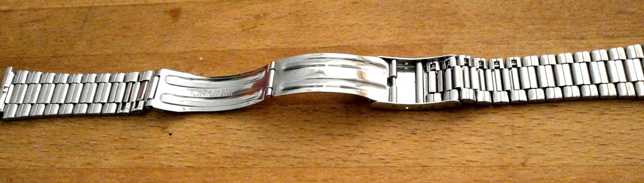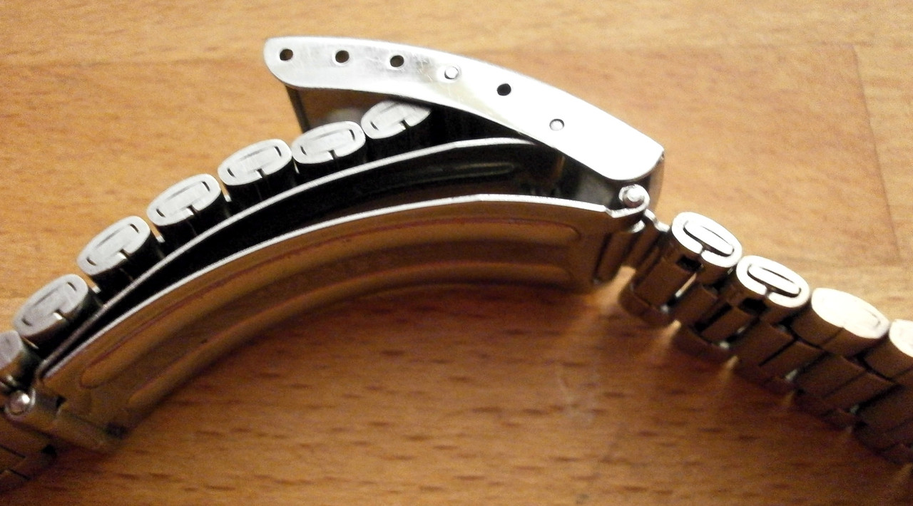 Verschrikkelijke ”antieke” ouderwetse staalband, 14 cm lang, merk BAMBI mogelijk meer dan 30 jaar oud. Met gevouwen links, kun je gratis ophalen in Apeldoorn, of eventueel meegestuurd met andere band/bandjes (geeft wel gewichtsvermeerdering dus duurder posttarief?)