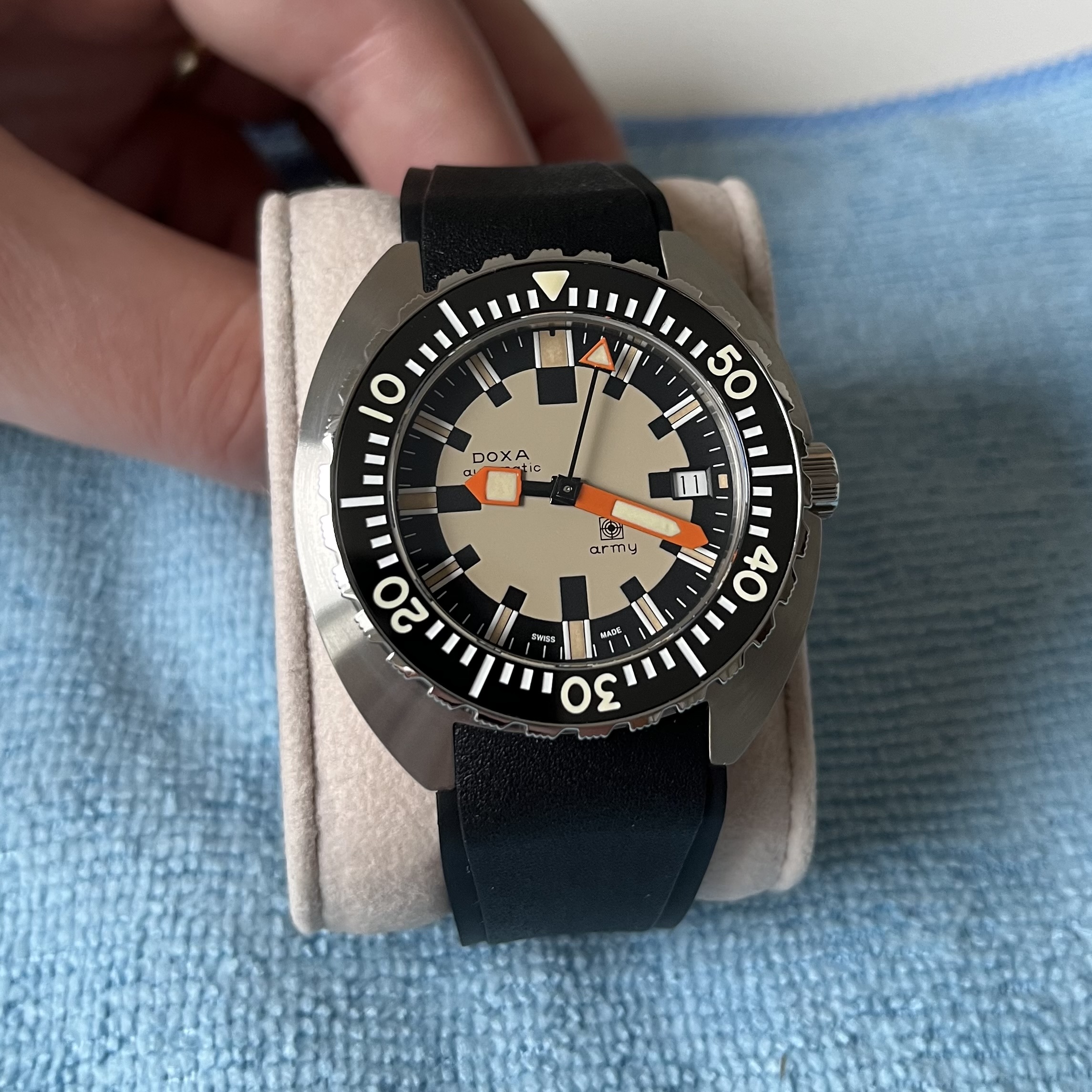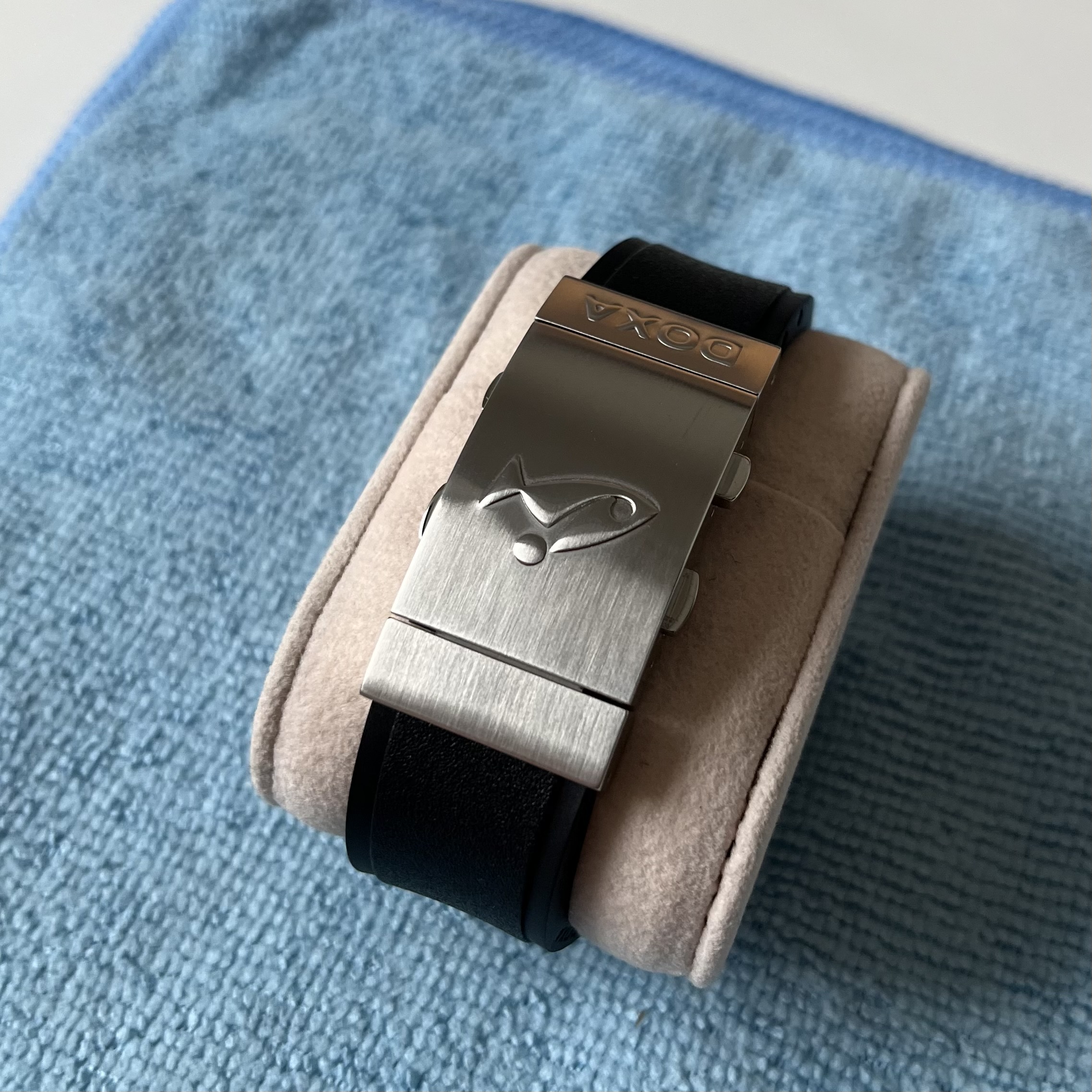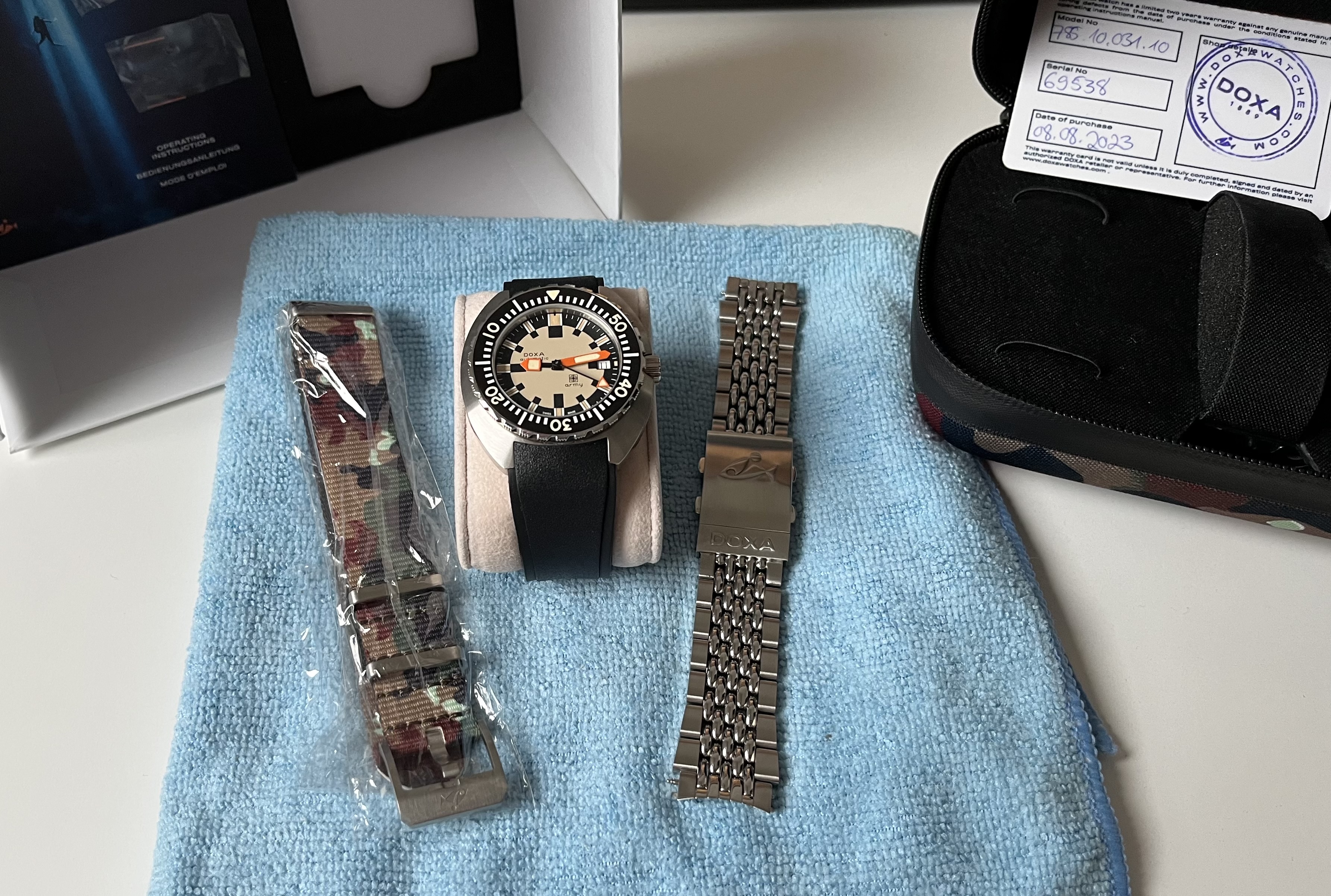 Originele doos en/of eventuele accessoires: full-set, NATO ongebruikt + OEM rubber met sluiting (t.w.v. een belachelijke €460) op maat voor een ruime 17.5cm.
