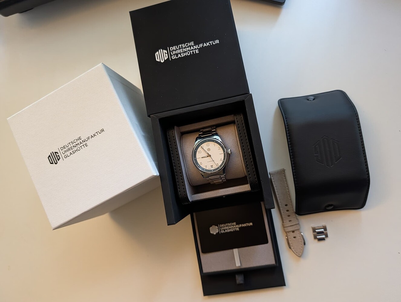 Originele doos en/of eventuele accessoires: compleet, inclusief Alcantara leren band (uitverkocht, t.w.v. €59)