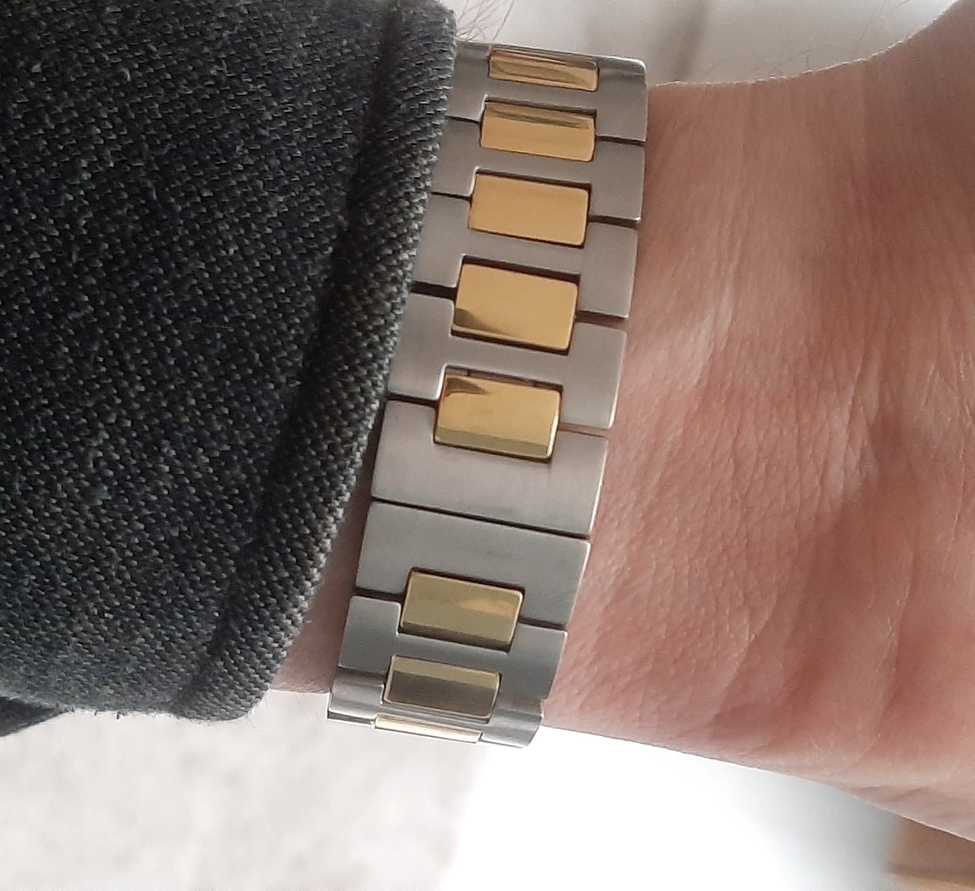 Twee weken geleden overgenomen van een sympathiek forumlid, maar ik heb toch niet echt een klik met het horloge dus deze mag door. Op maat voor een pols van 18cm, maar er zijn extra schakels inbegrepen. Er zit een nieuwe batterij in, dus kan weer jaren mee