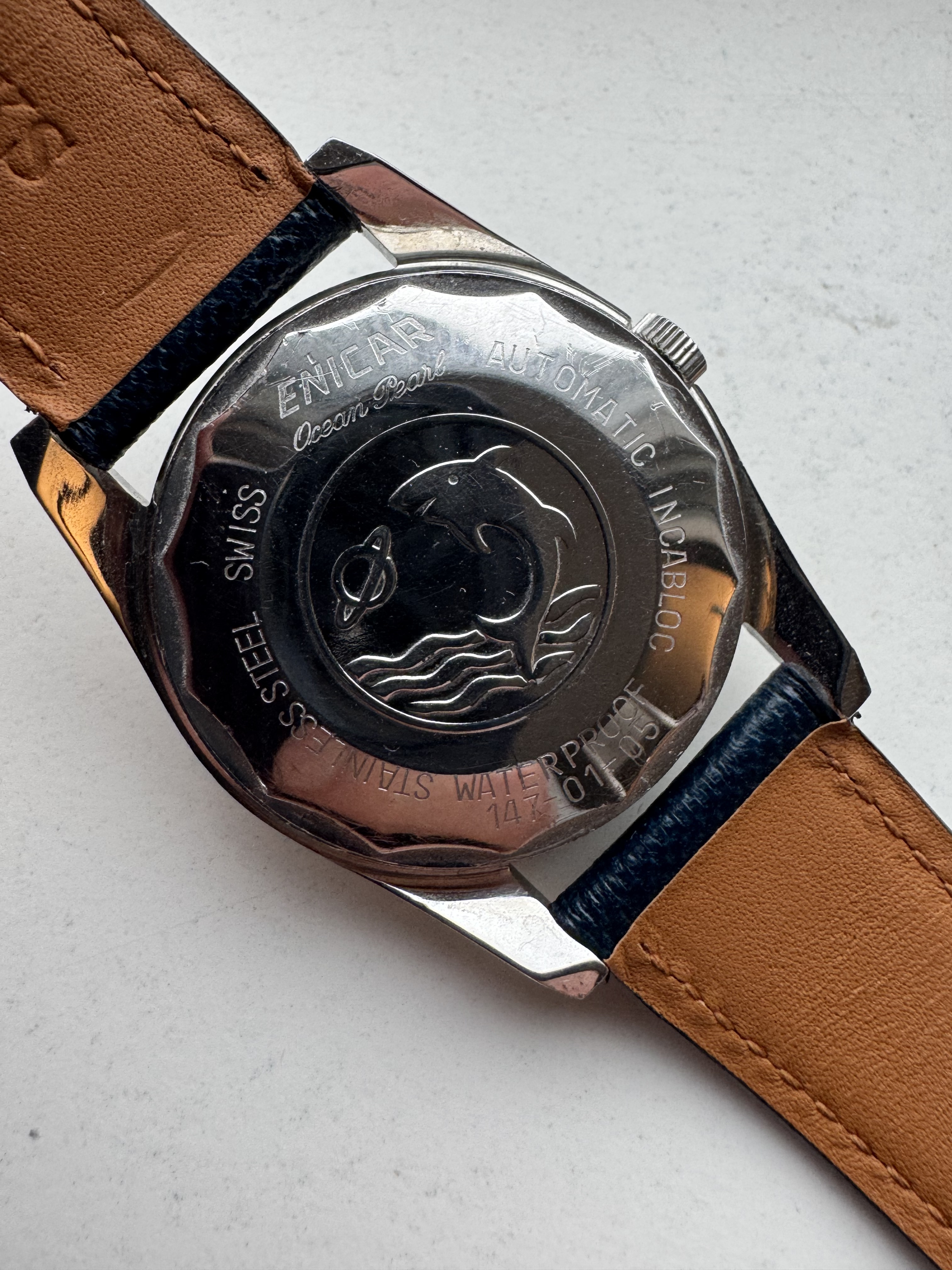 [Te koop aangeboden: een mooie vintage Enicar Ocean Pearl met een zeldzame configuratie. Voor de liefhebber van vintage Enicar is dit een kans om een exemplaar te bemachtigen dat technisch én optisch in topstaat verkeert.